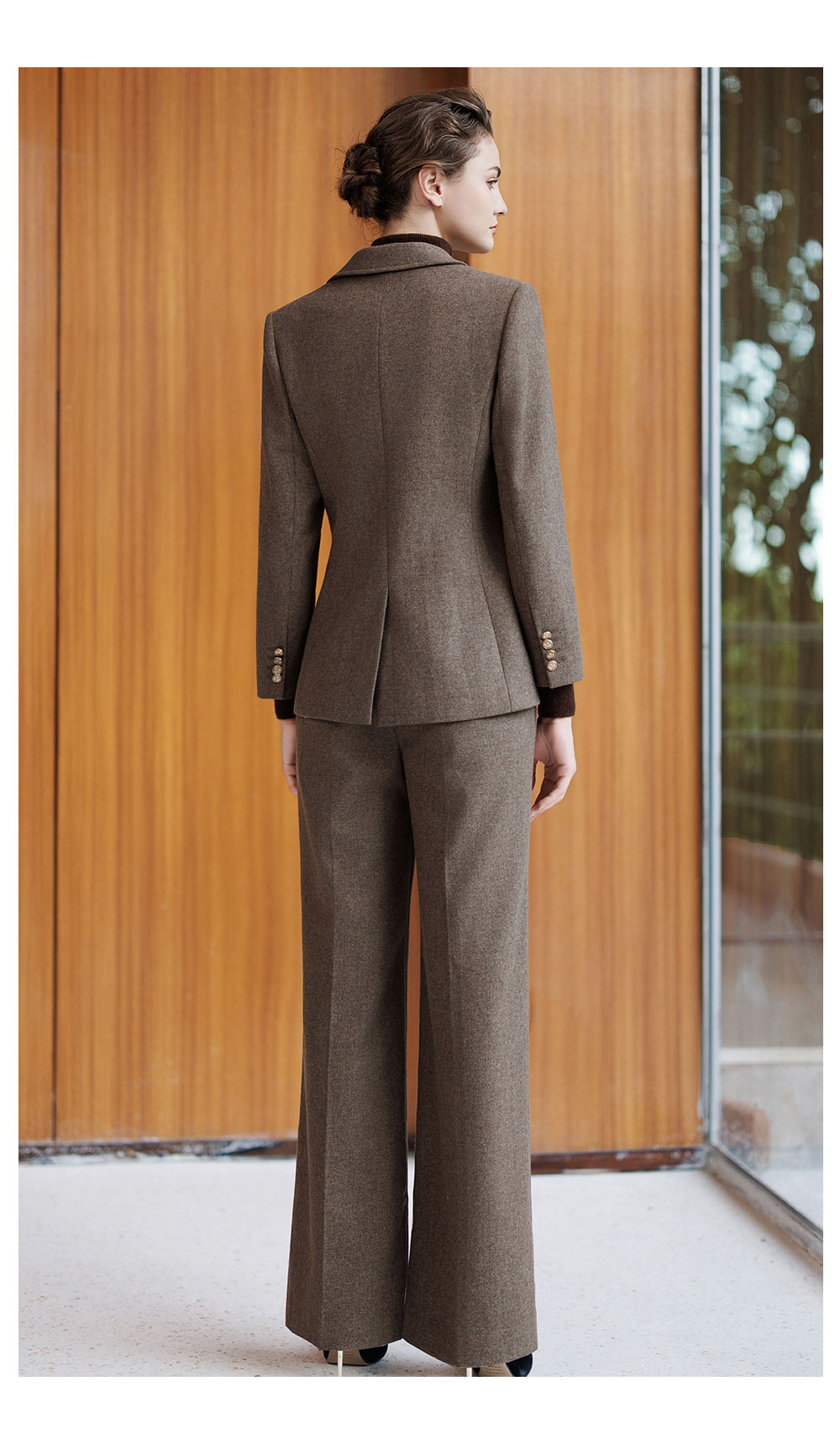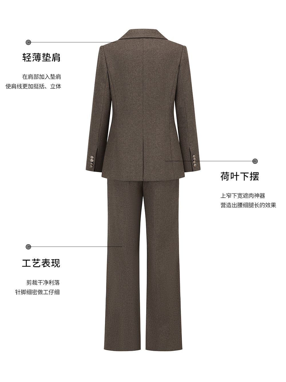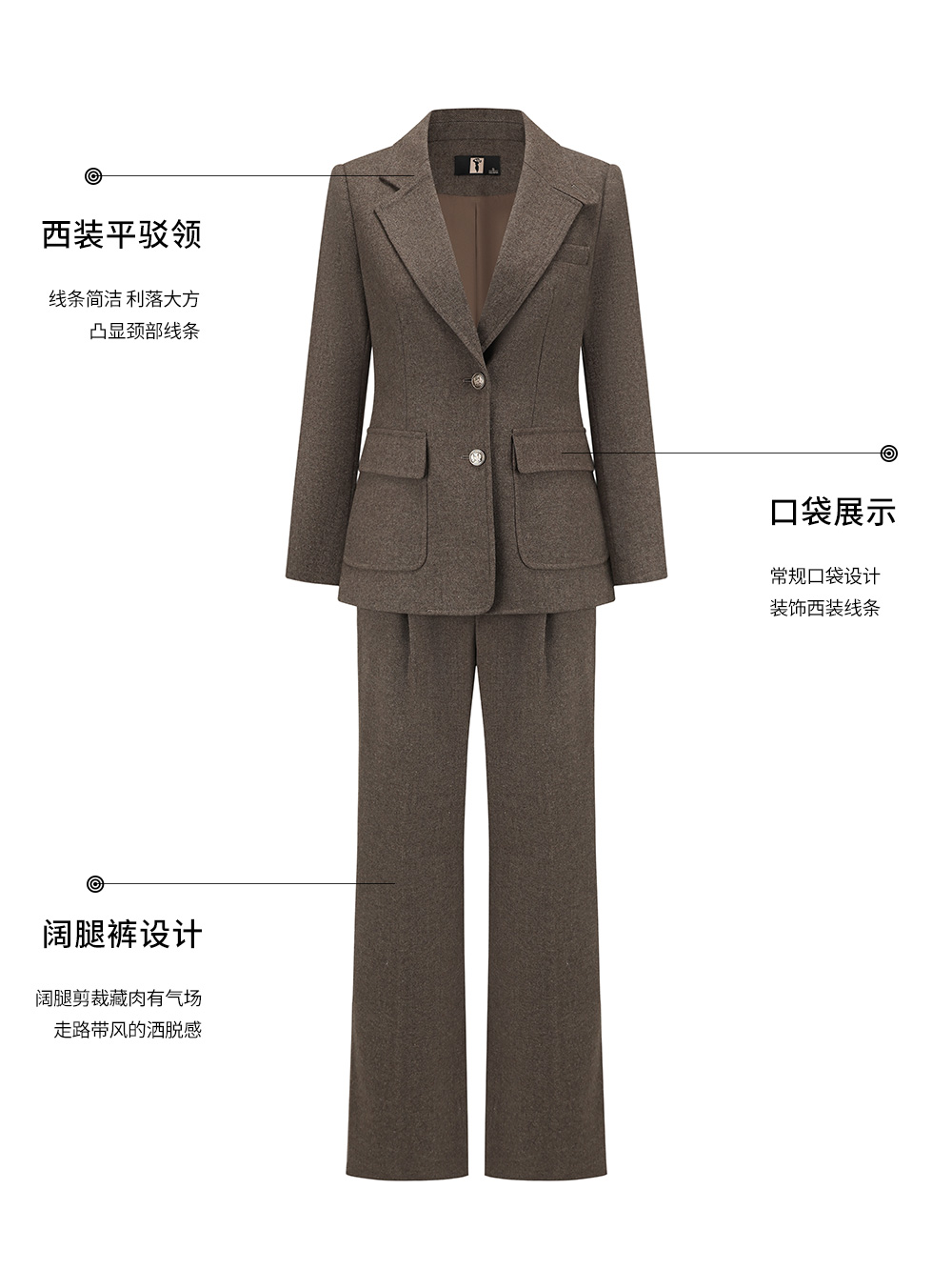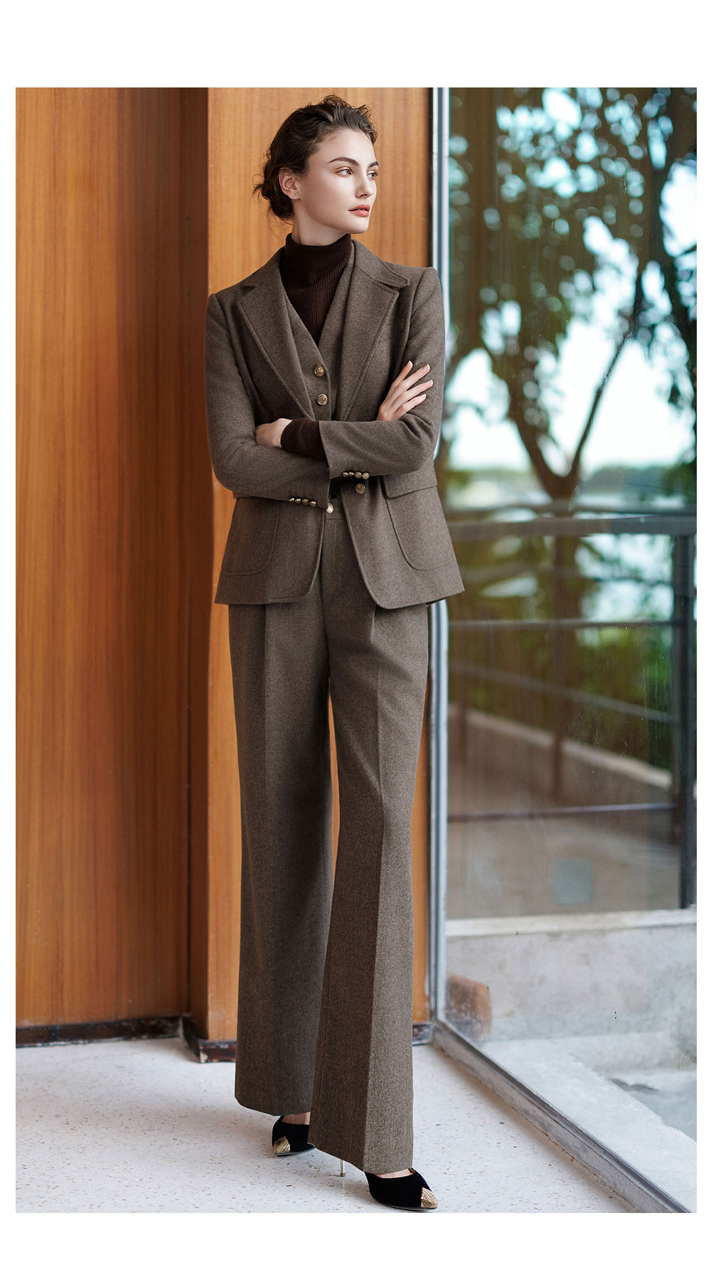 AD秋冬棕色羊毛西装套装女2025新款高级感毛呢外套时尚马甲三件套