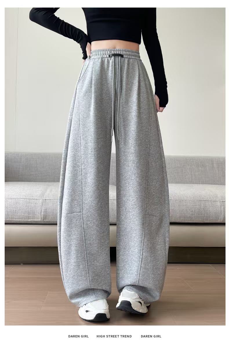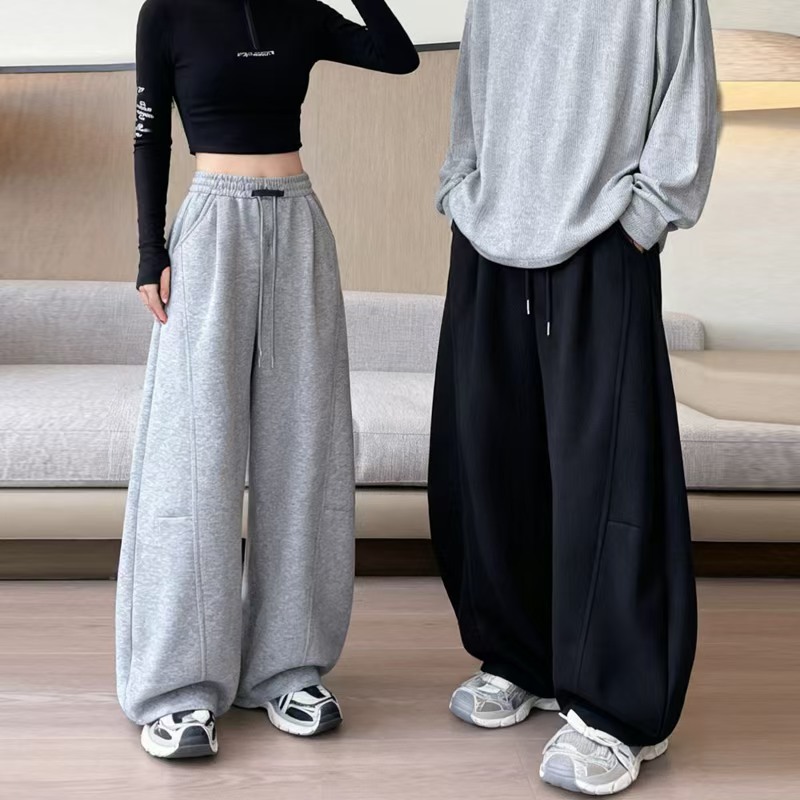 热卖款!!秋冬男女同款加绒弯刀阔腿裤 2种长度运动裤 自留款 穿上就不想脱!
