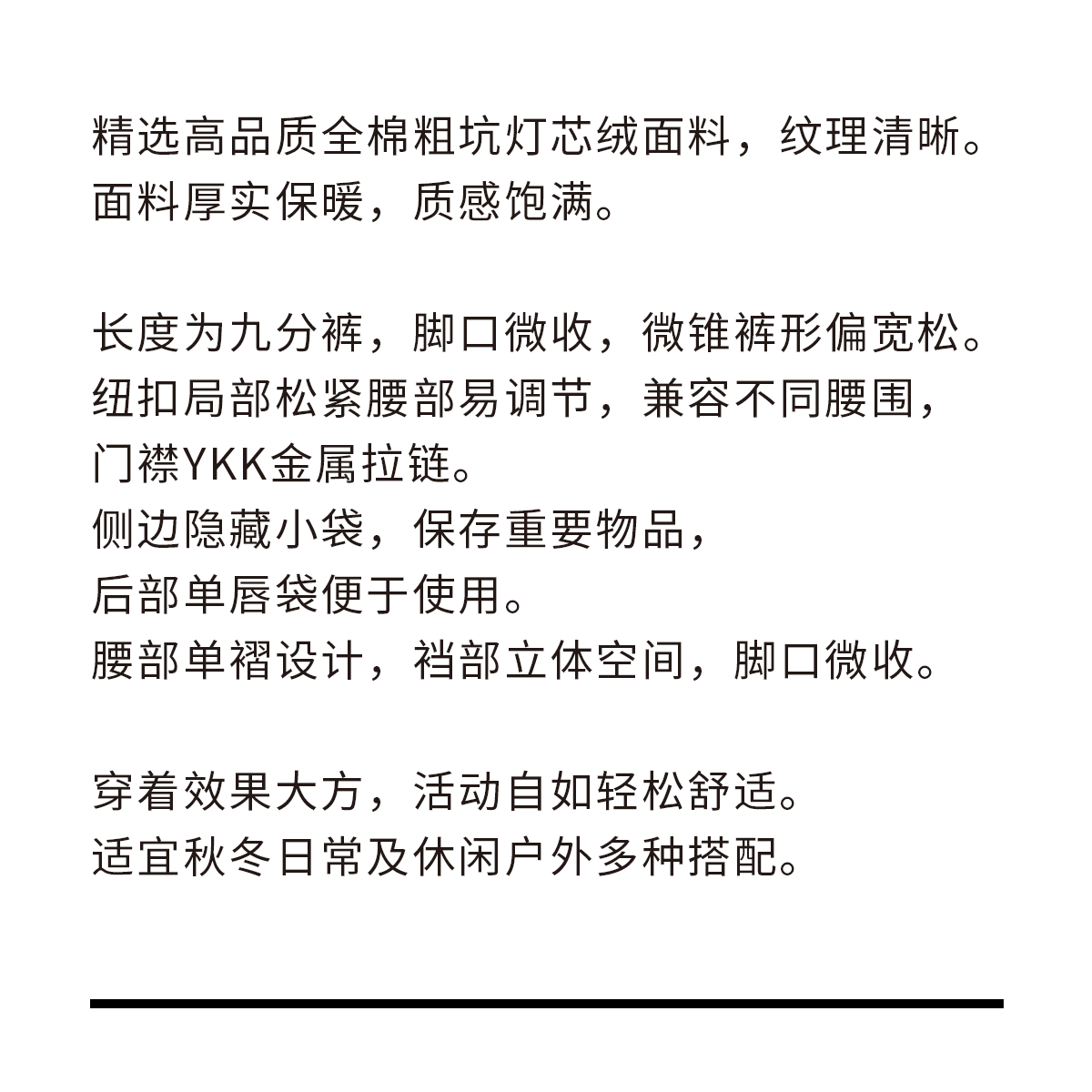 吃茶去chichaqu2024重磅灯芯绒锥形单褶九分裤复古宽松休闲百搭