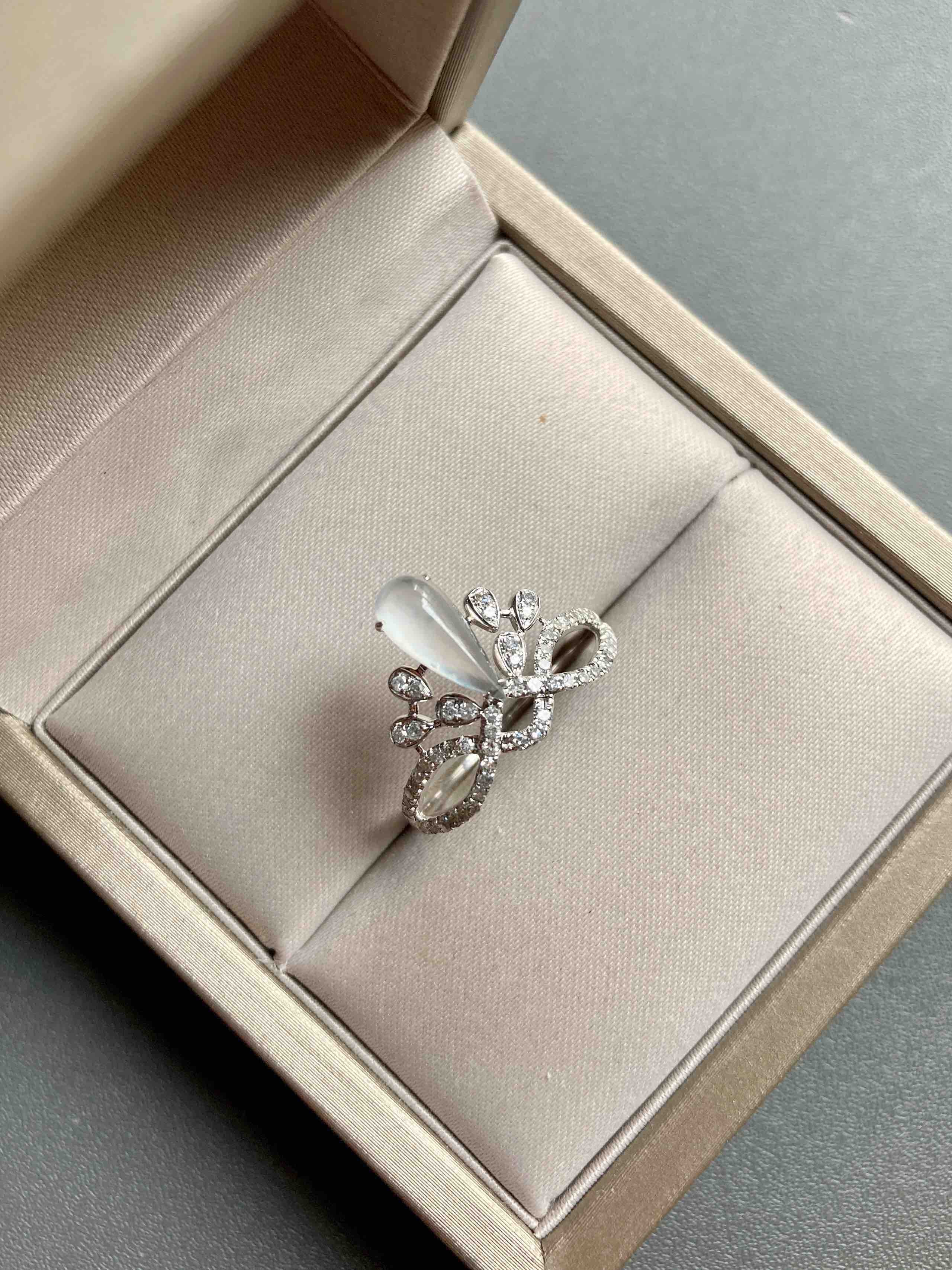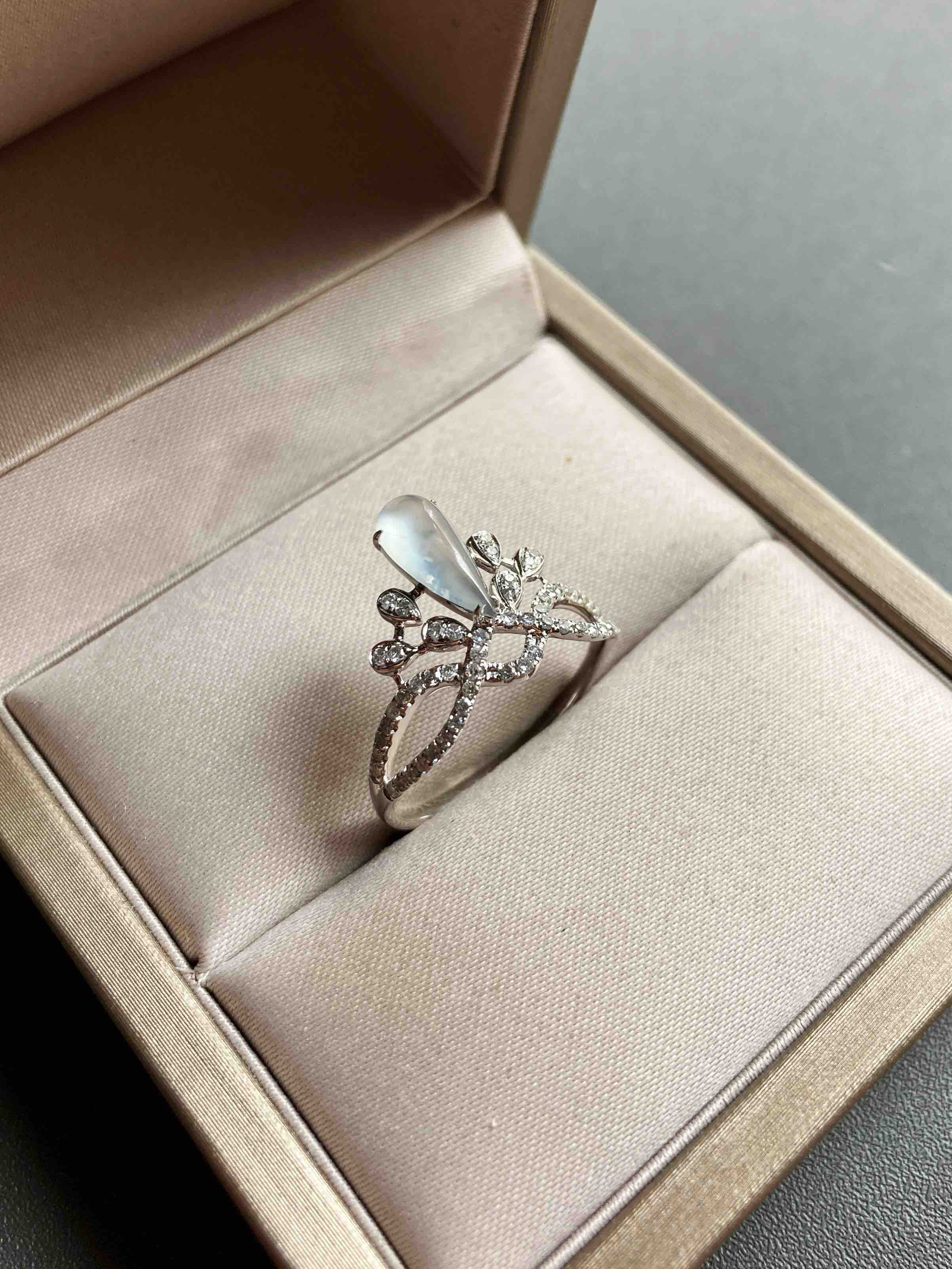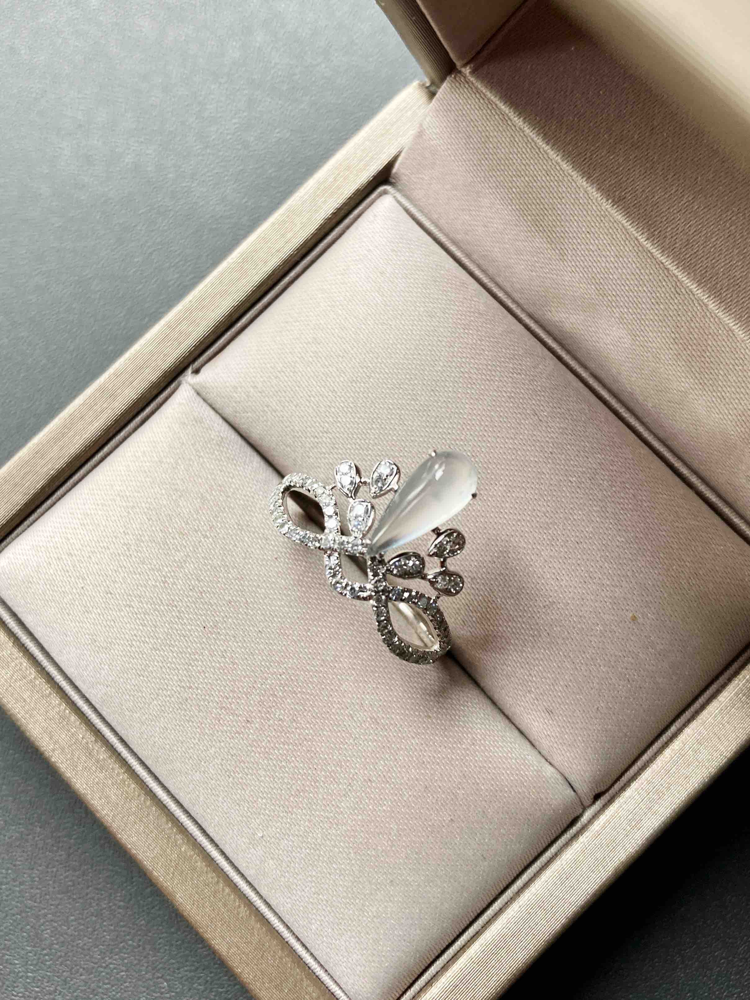 超级经典的皇冠款式戒指,这次用玻璃种翡翠打造,种气极老,荧光四射,强刚性表现,18k白金钻石镶嵌,价值不菲,上手特别洋气,好看,水滴10.2×4.7×2.3mm,圈号13,可改大小