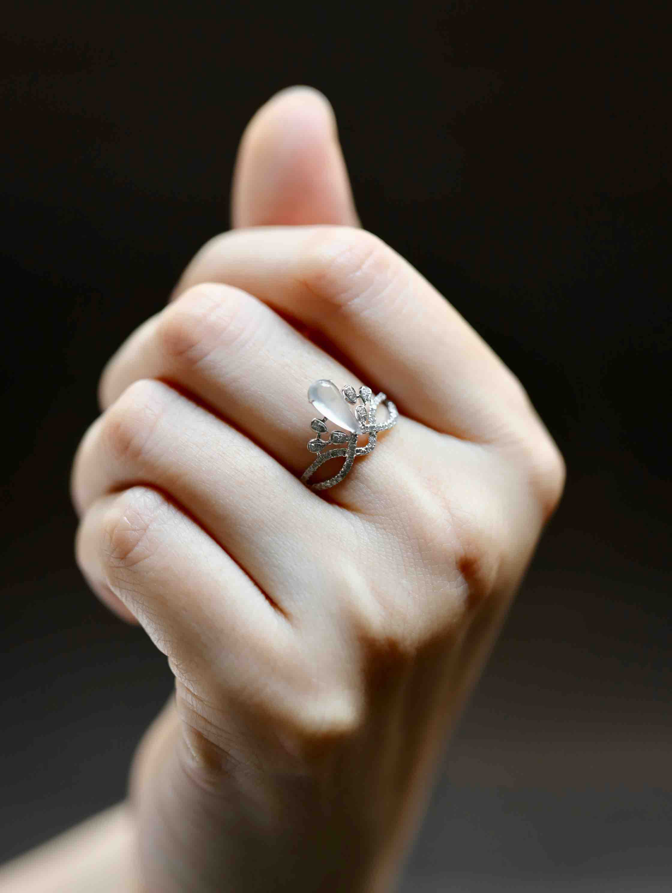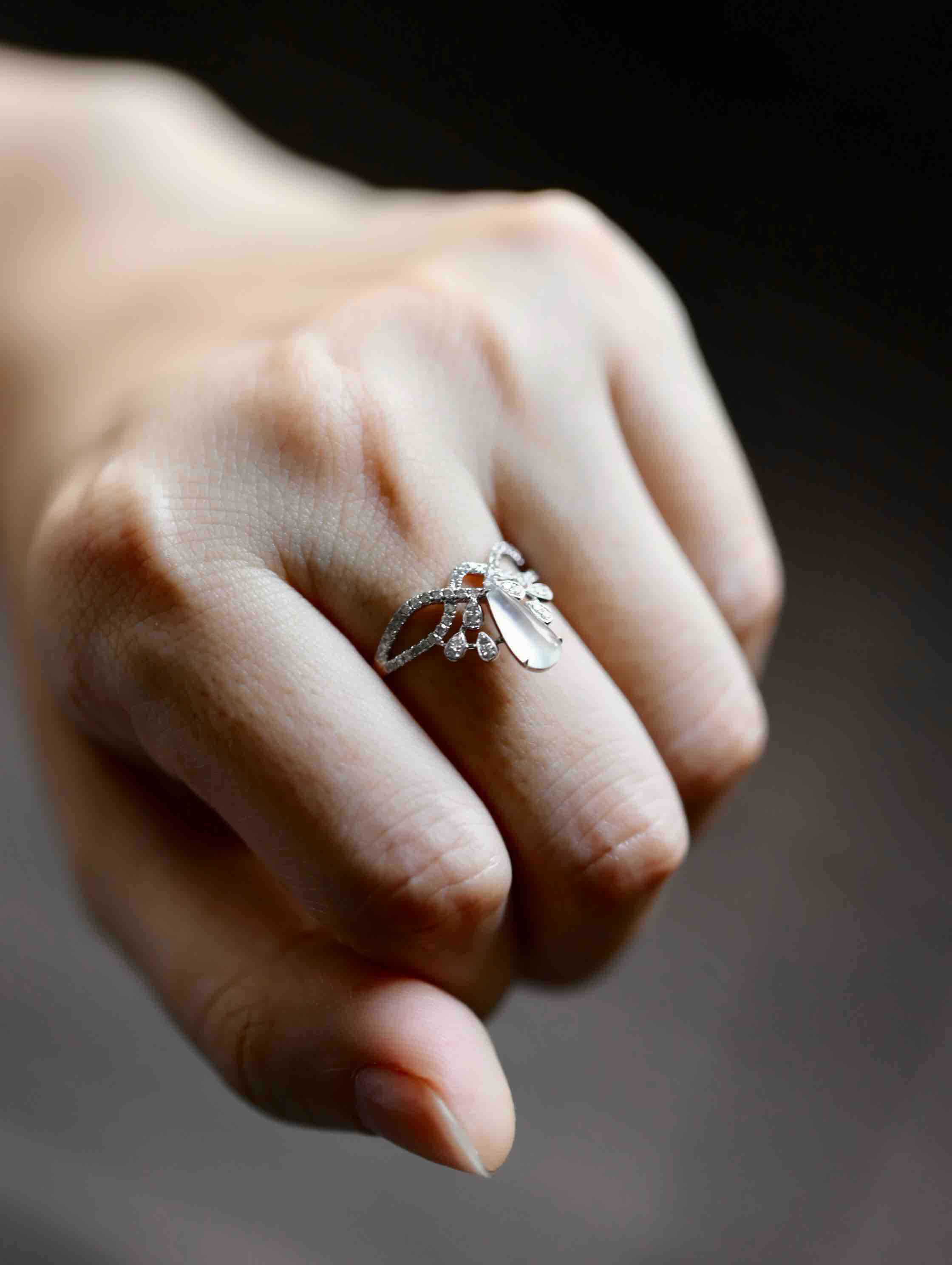 玻璃种翡翠皇冠戒指18k白金钻石镶嵌