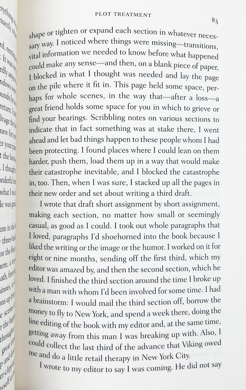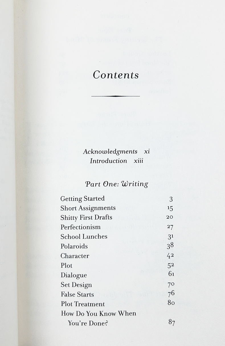 "Thirty years ago my older brother, who was ten years old at the time, was trying to get a report on birds written that he'd had three months to write. It was due the next day. We were out at our family cabin in Bolinas, and he was at the kitchen table close to tears, surrounded by binder paper and pencils and unopened books on birds, immobilized by the hugeness of the task ahead. Then my father sat down beside him, put his arm around my brother's shoulder, and said, 'Bird by bird, buddy. Just take it bird by bird.'"