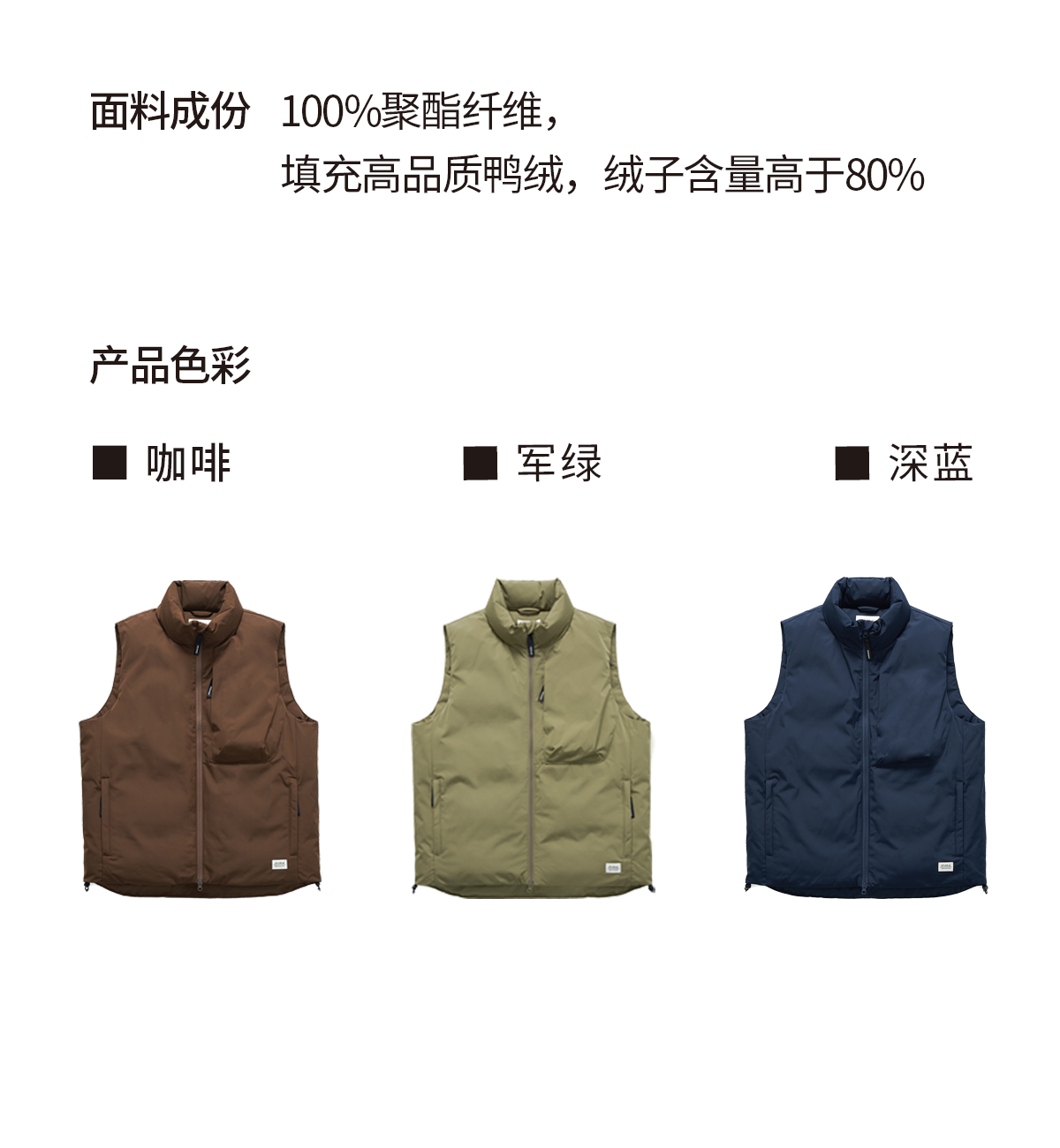 吃茶去chichaqu24秋冬新款重磅羽绒马甲户外保暖简约男女防风