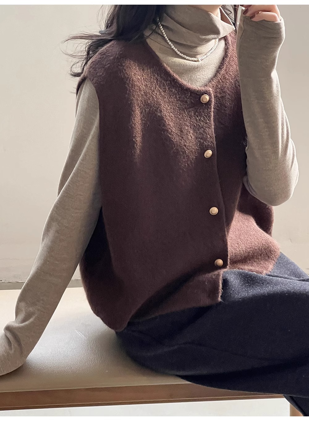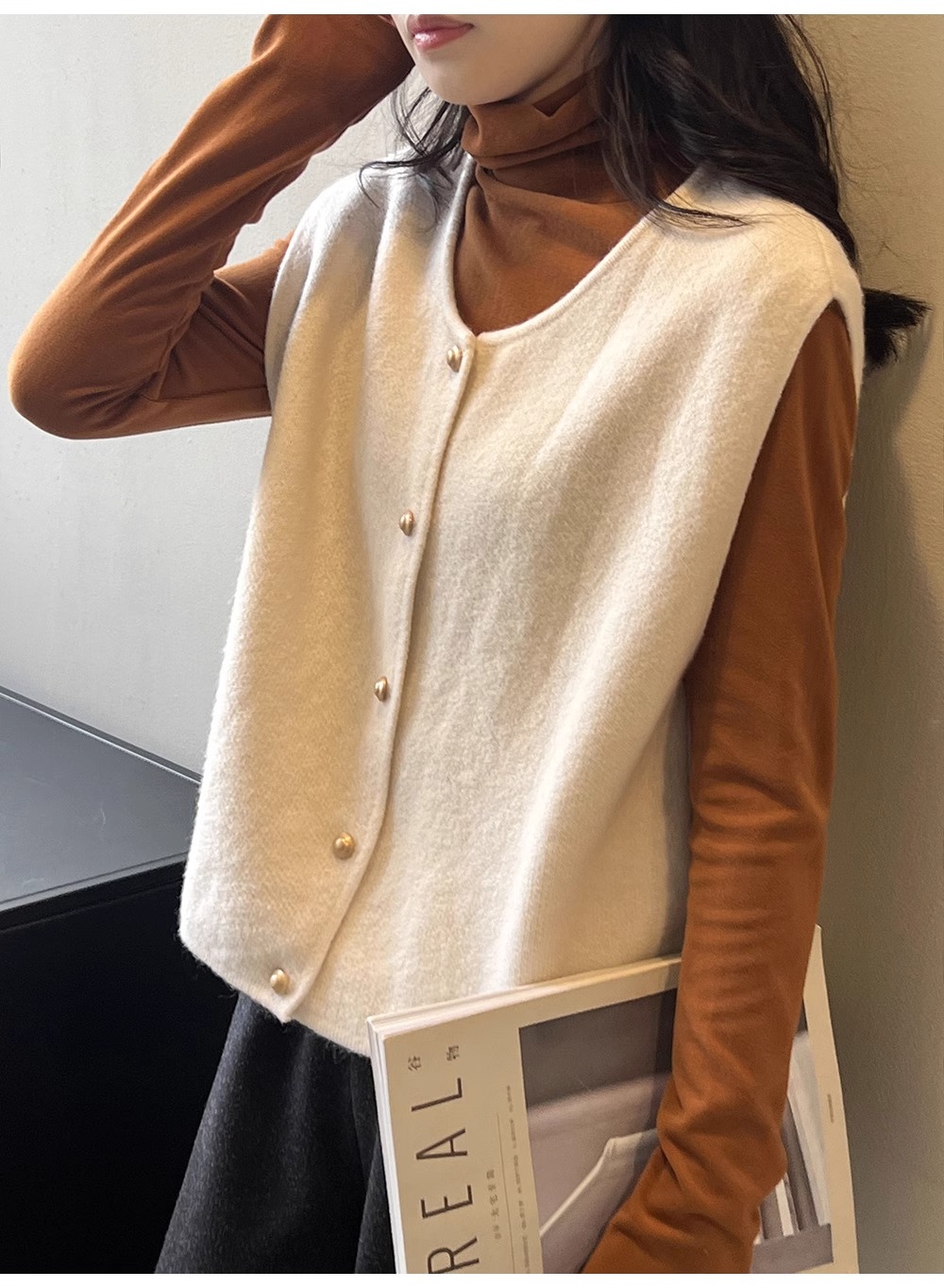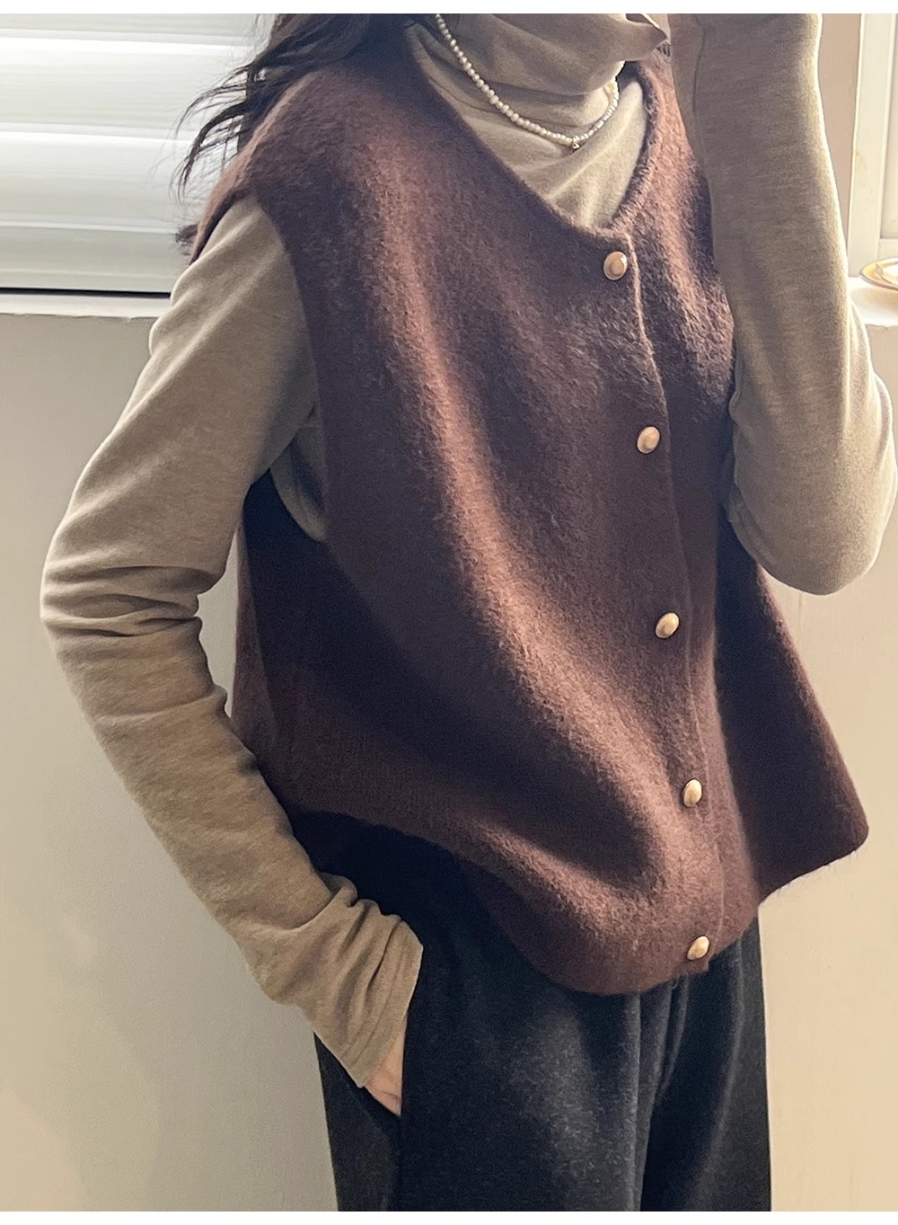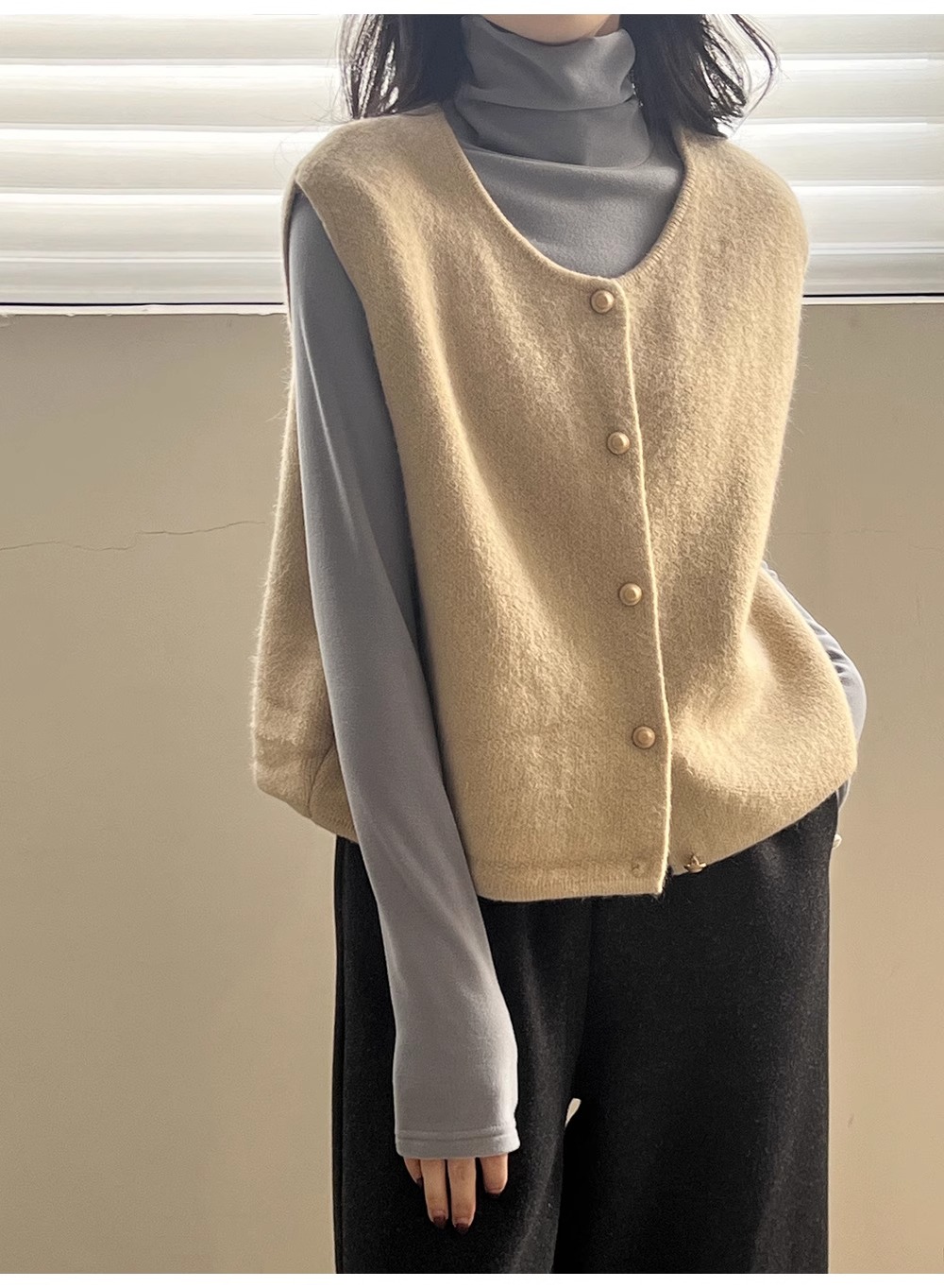 轻奢淑女风针织马甲| 圆领单排扣 宽松百搭 叠穿坎肩背心上衣【均码】
