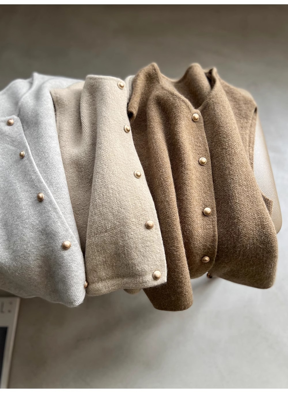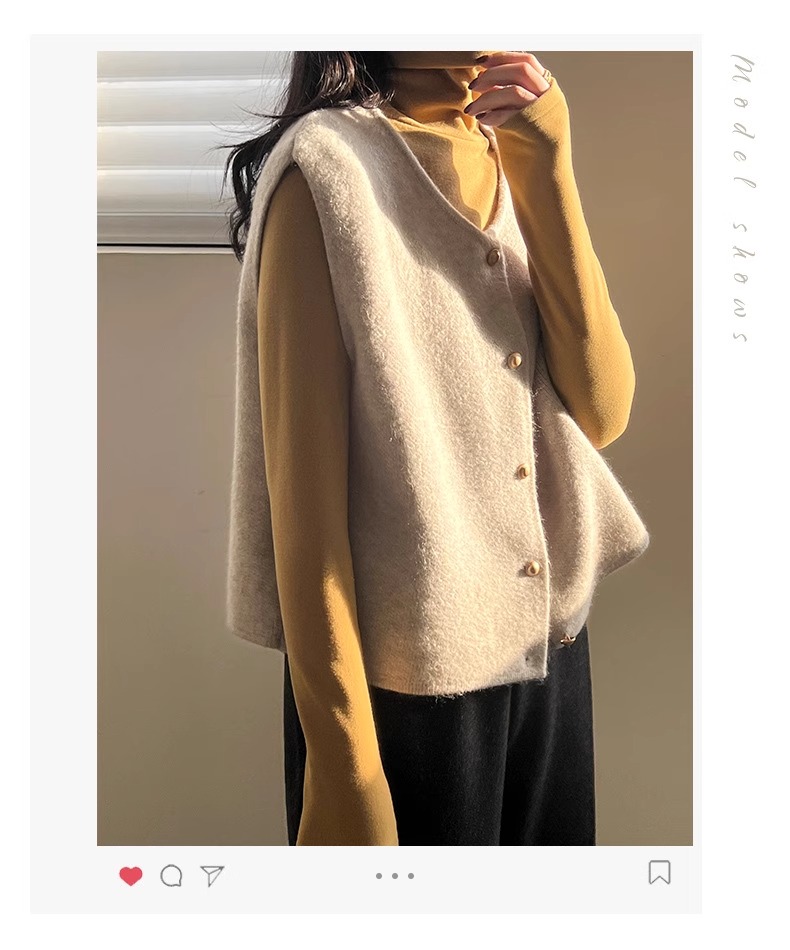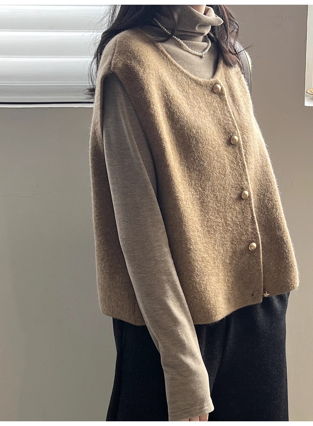 轻奢淑女风针织马甲| 圆领单排扣 宽松百搭 叠穿坎肩背心上衣【均码】