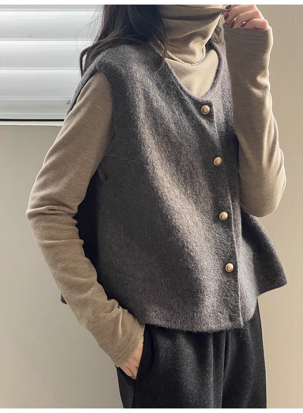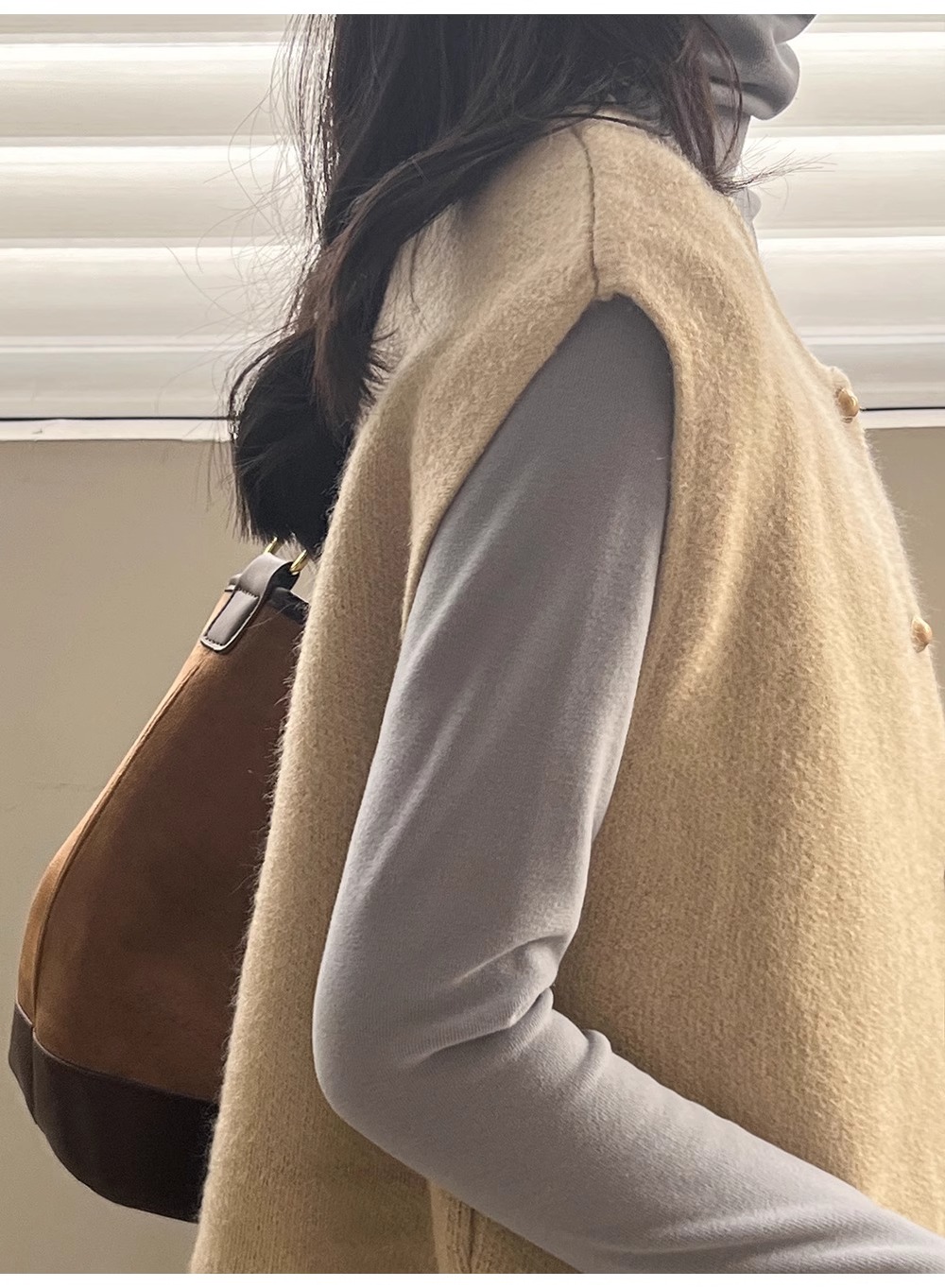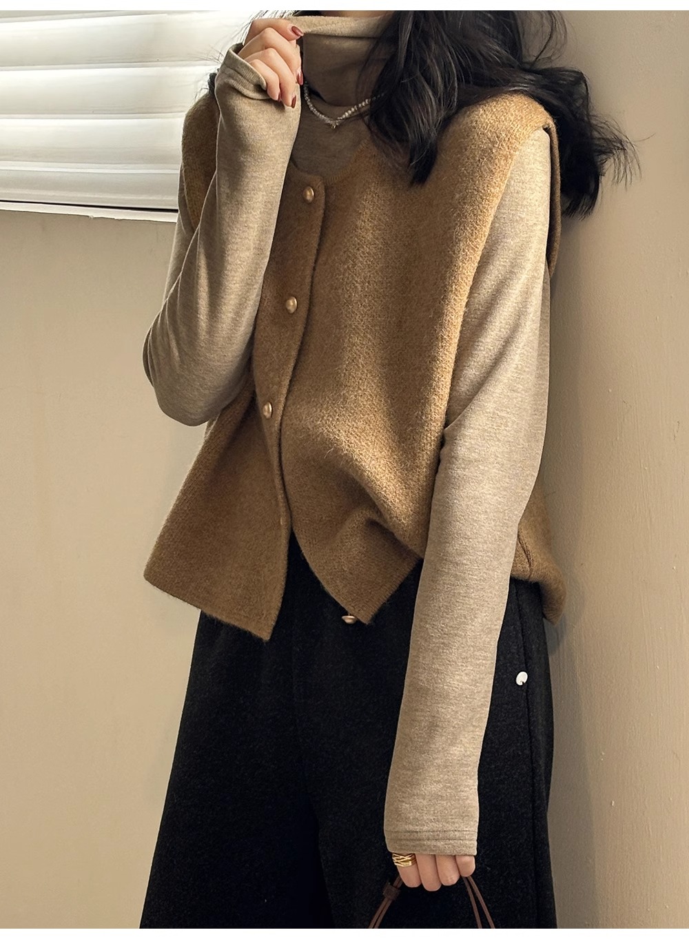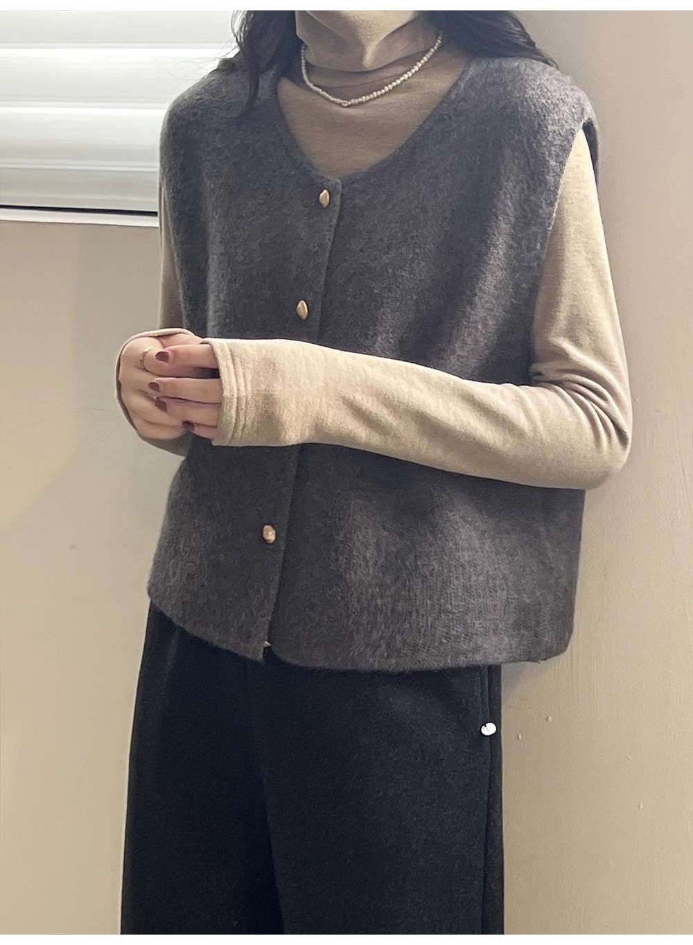 轻奢淑女风针织马甲| 圆领单排扣 宽松百搭 叠穿坎肩背心上衣【均码】