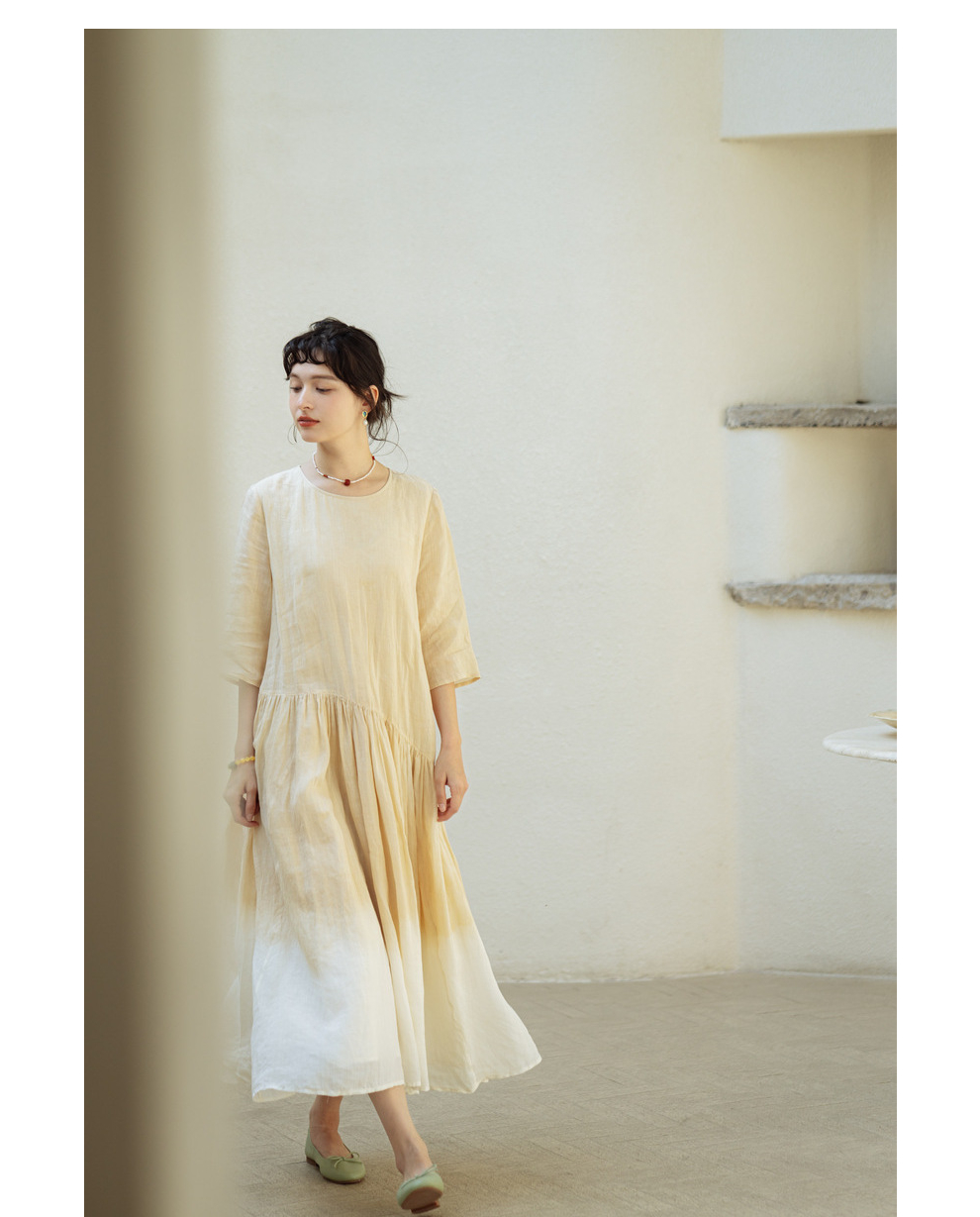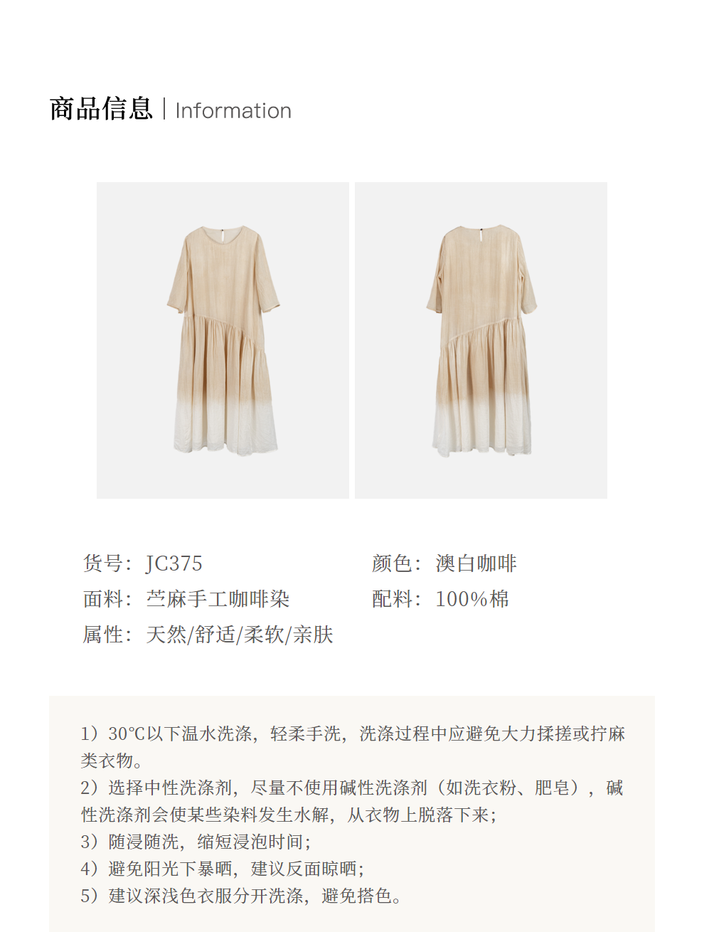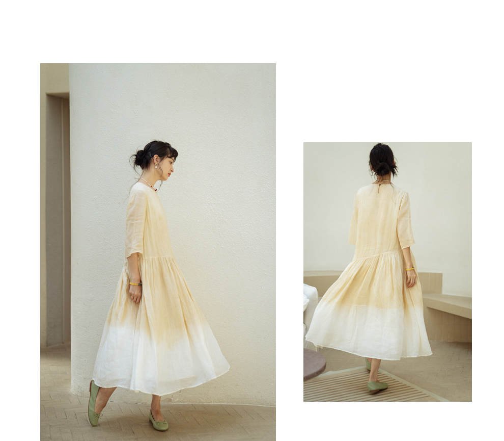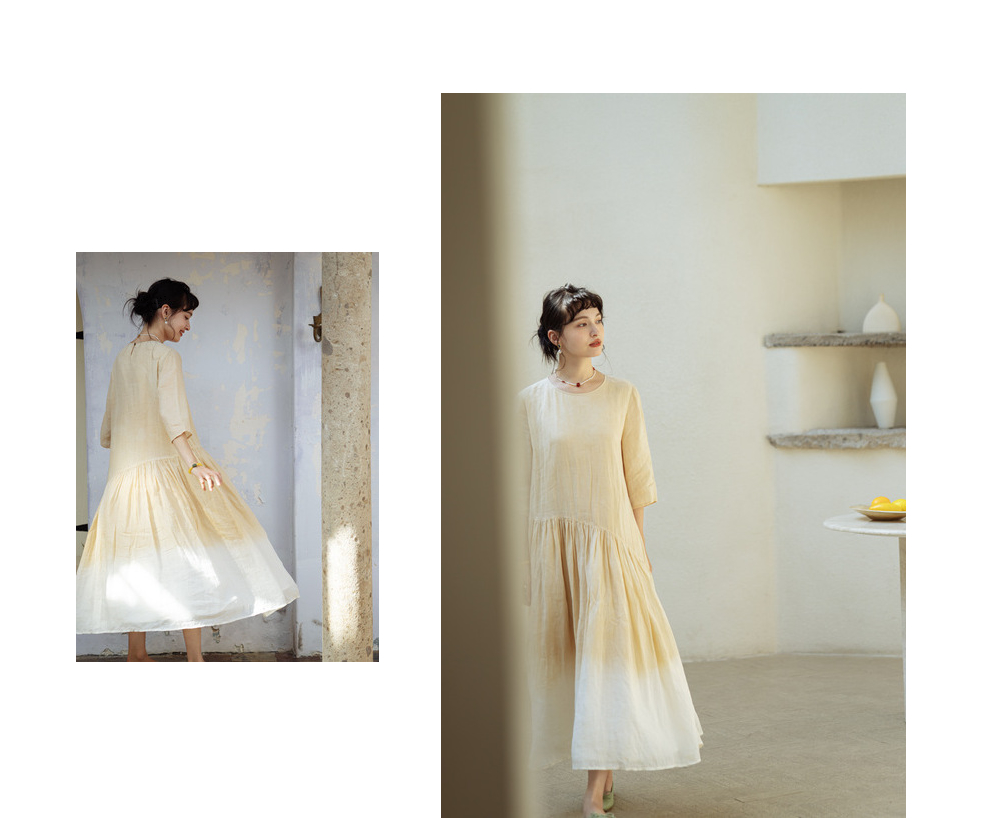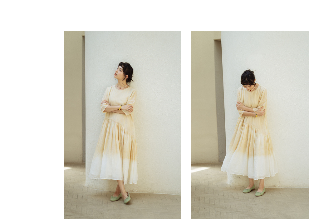 * 绽放375朵【甜茶系列·澳白咖啡】咖啡豆植物染双层渐变色连衣裙