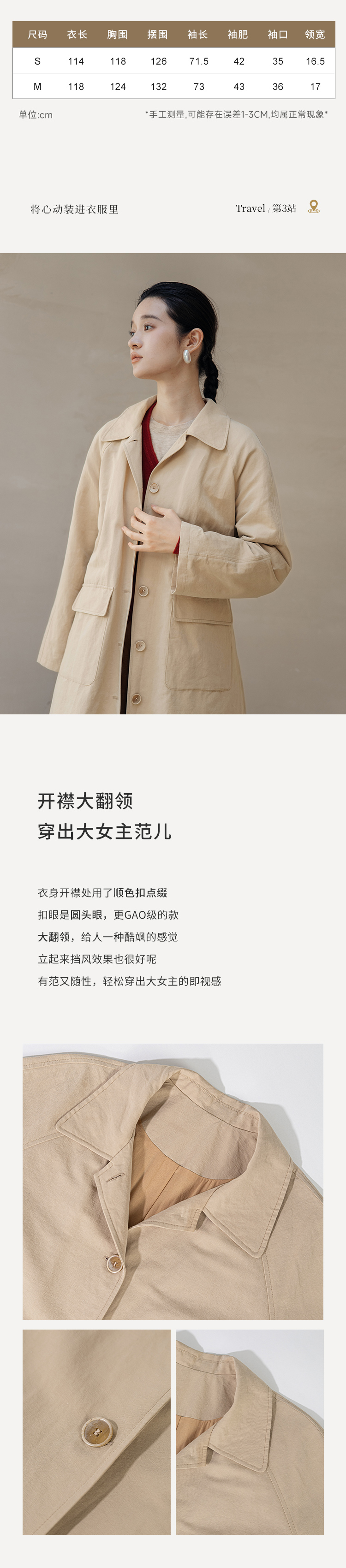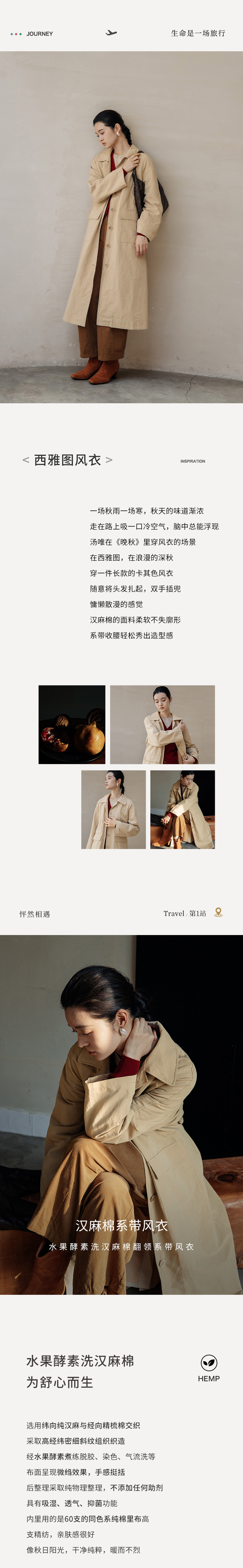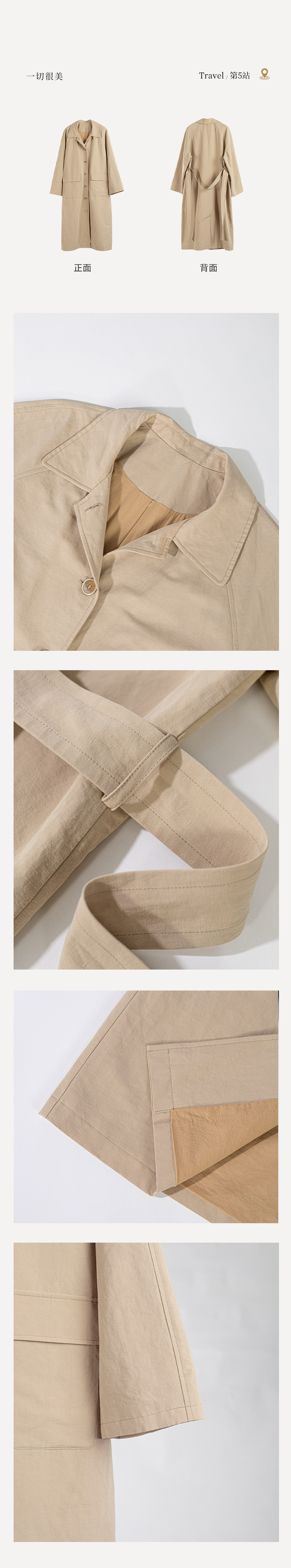 绽放743朵/西雅图风衣水果酵素洗汉麻棉翻领开襟系带复古长款外套