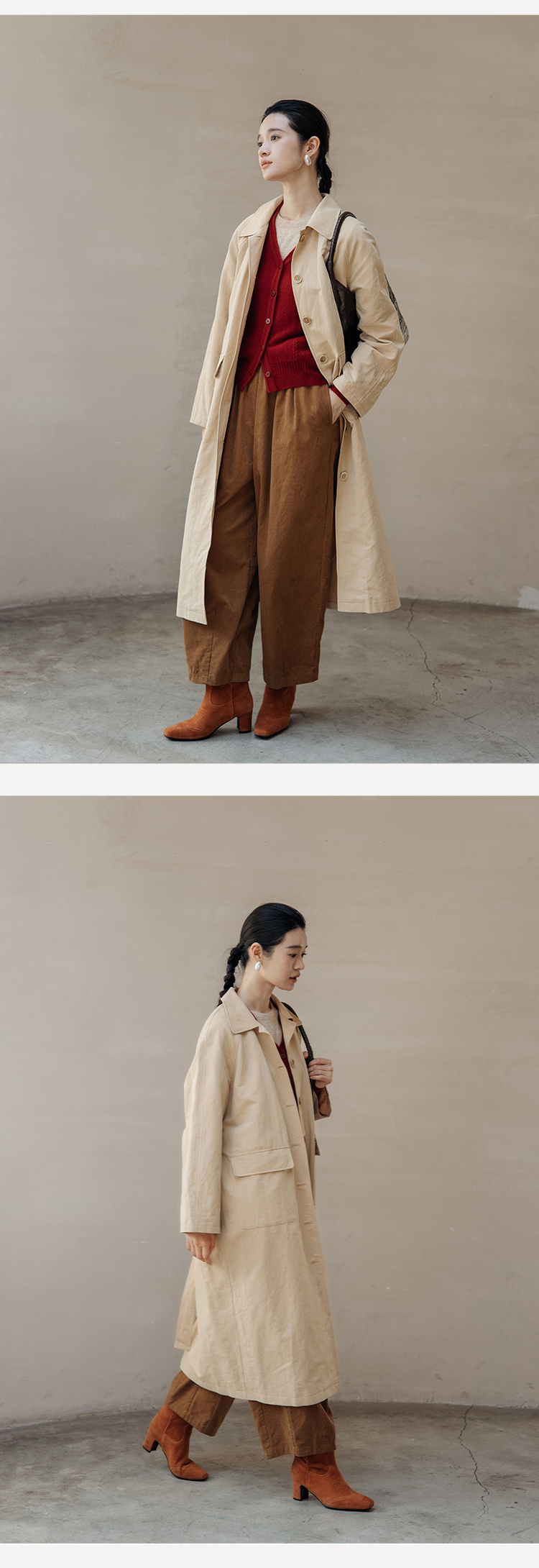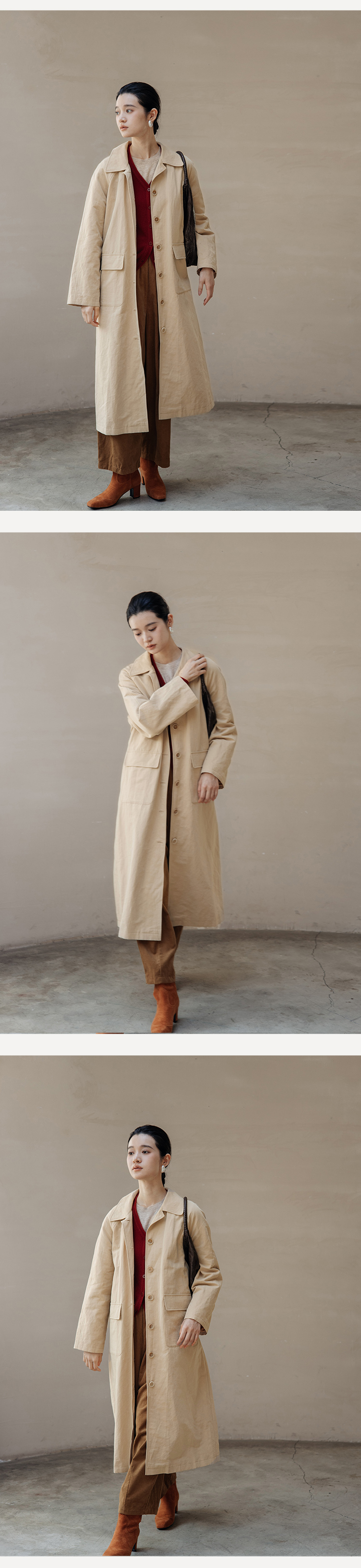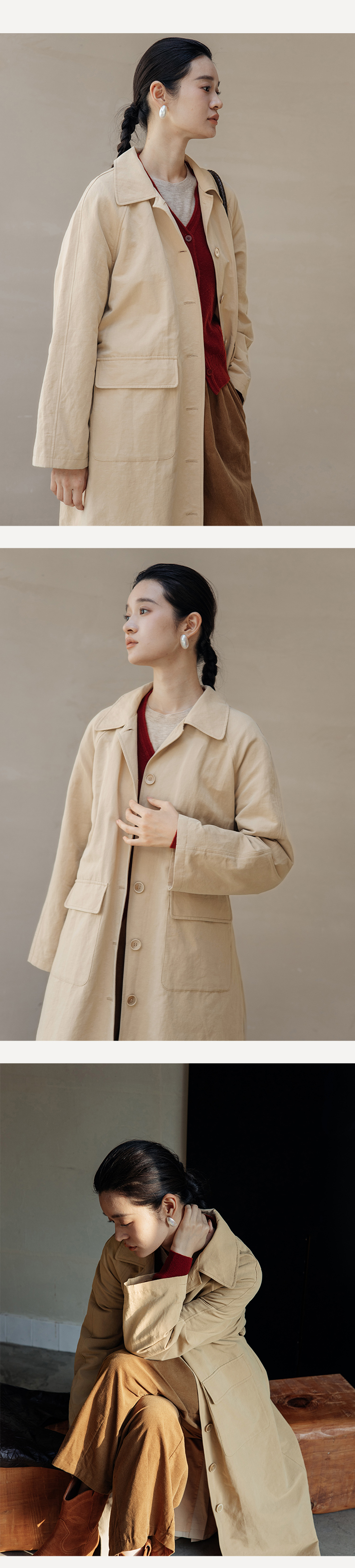 绽放743朵/西雅图风衣水果酵素洗汉麻棉翻领开襟系带复古长款外套