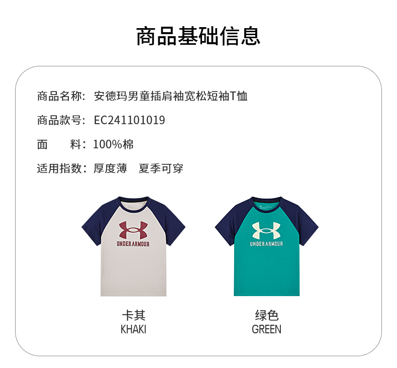 【特惠福利】Under Armour安德玛儿童圆领短袖T恤241101019超低折扣
