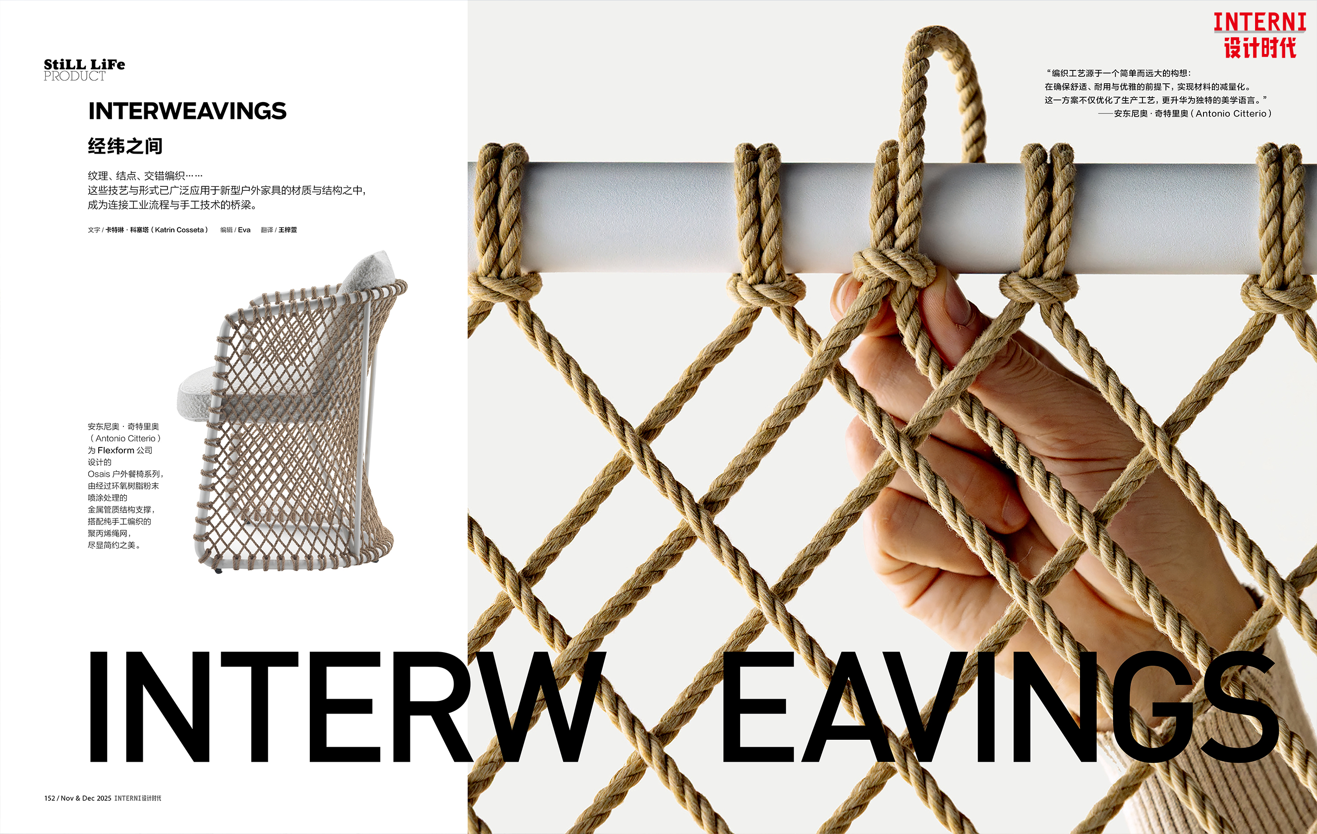 纹理、结点、交错编织……这些技艺与形式已广泛应用于新型户外家具的材质与结构之中,成为连接工业流程与手工技术的桥梁。