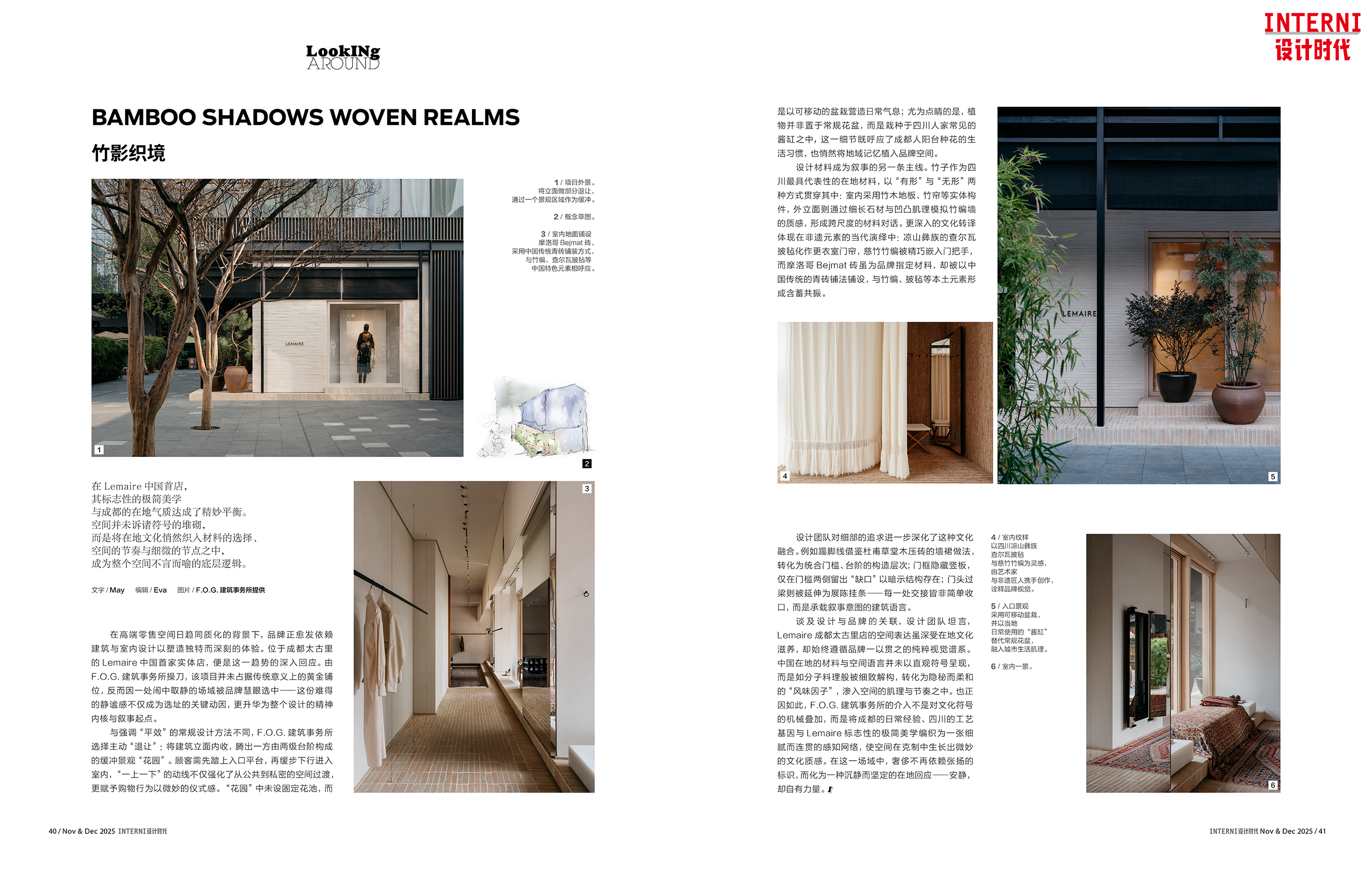 在Lemaire 中国首店,其标志性的极简美学与成都的在地气质达成了精妙平衡。空间并未诉诸符号的堆砌,而是将在地文化悄然织入材料的选择、空间的节奏与细微的节点之中,成为整个空间不言而喻的底层逻辑。