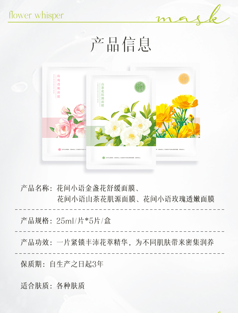 🔥(新品上架)花间小语花语面膜酵母复活草补水保湿去黄熬夜暗沉