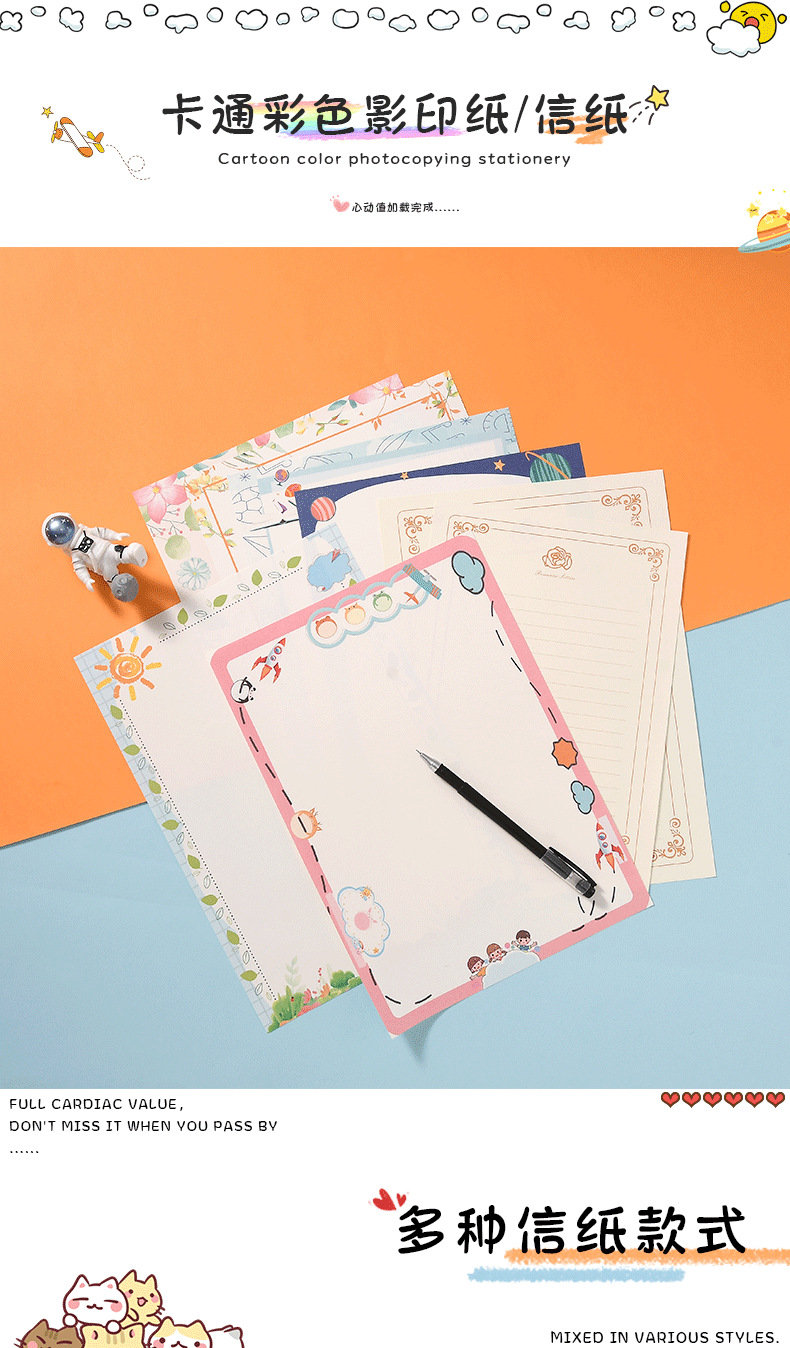 好看的漂亮信笺彩纸创意带图案A4纸彩色打印纸可书
