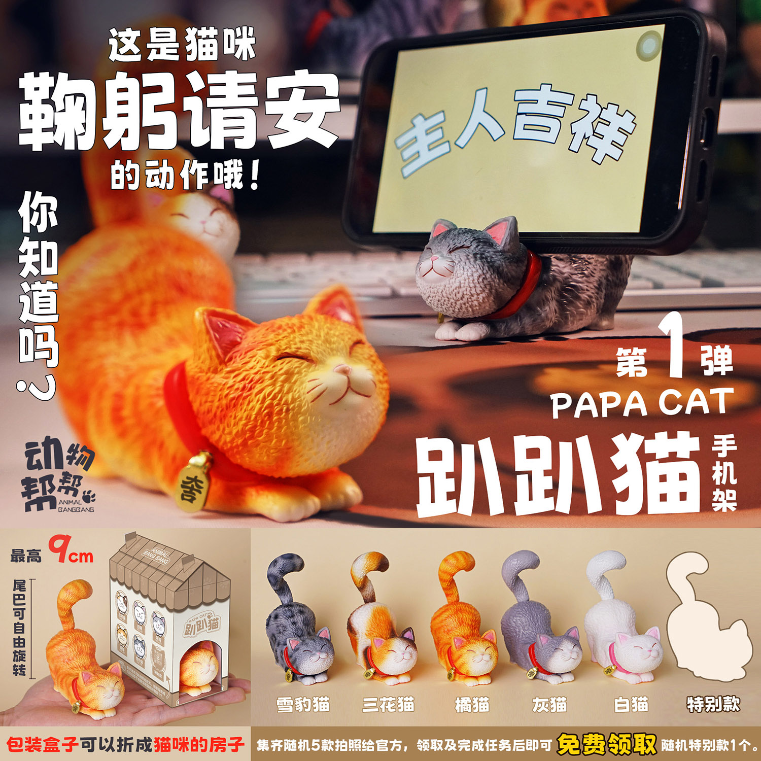 趴趴猫 手机支架模型手办潮玩 ★动物帮帮 官方正品【48小时发货】