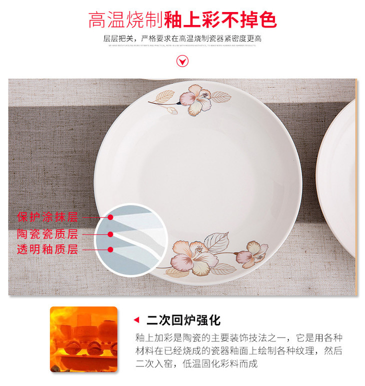 晋宝源7英寸餐盘盘子(情意浓)17-17.9cm白色单个