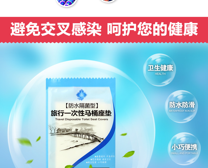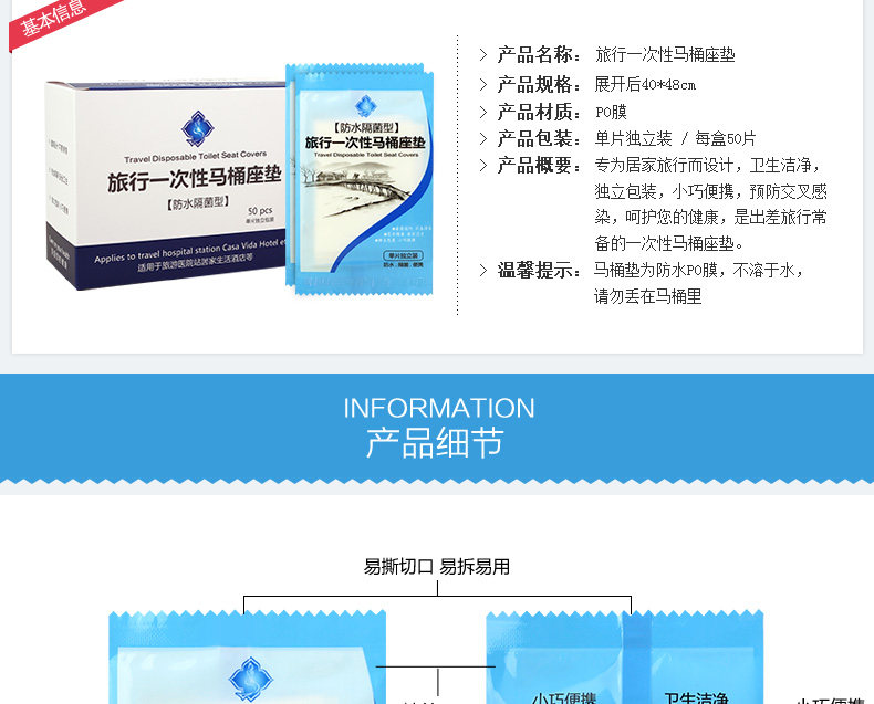 通用规格,适用于99%的马桶,优质环保材料,无毒无味,防水设计,隔菌更放心,套袋设计操作简单,不易滑落。是出差旅行,居家生活,常备的一款马桶垫片。