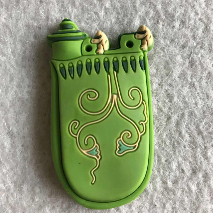 此件产品以辽代文物“绿油龙首鸡冠壶”为素材衍生设计而成,原品于1965年赤峰市翁牛特旗广德公乡出土,其腹部有两条仿品囊缝合线,环形提梁,凹底。提梁装饰一条昂首曲颈弓背的行龙,是辽代鸡冠壶中的精品。