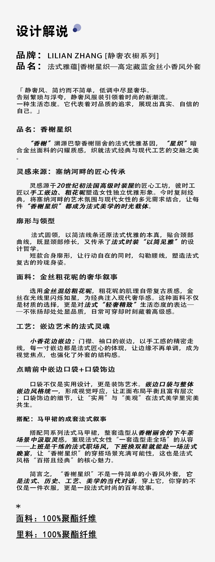 定制—静奢风—法式雅蕴—香榭星织—高定藏蓝金丝小香风外套 2505013