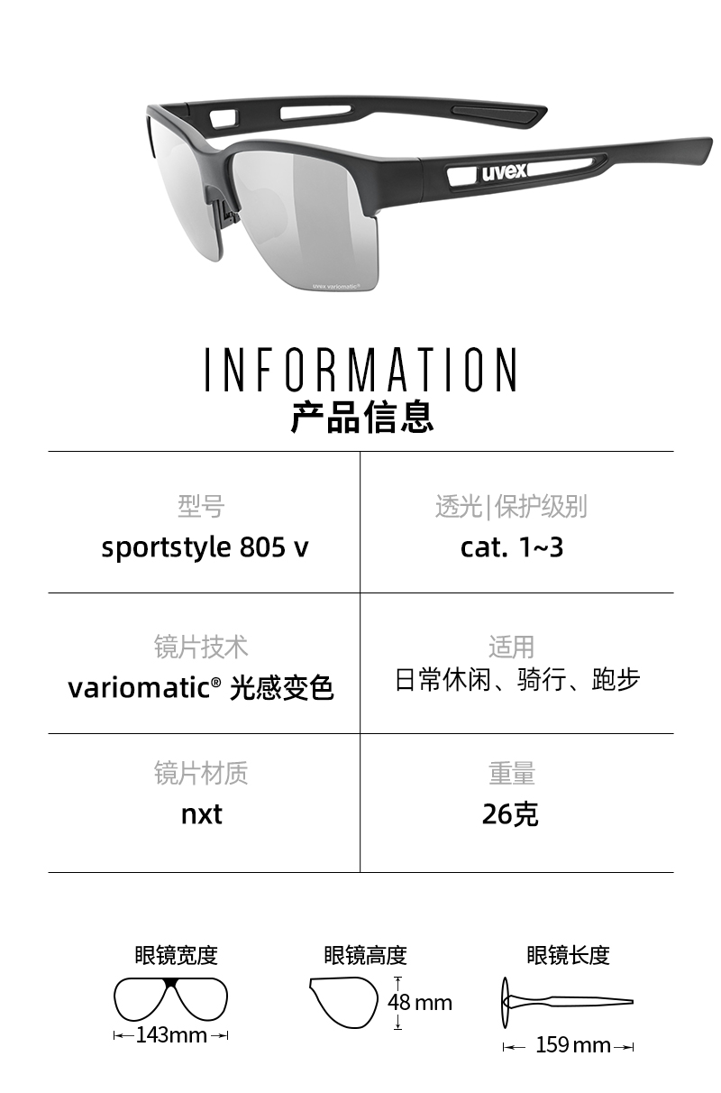 uvex sportstyle 805V优维斯光感变色太阳镜跑步骑行休闲运动眼镜