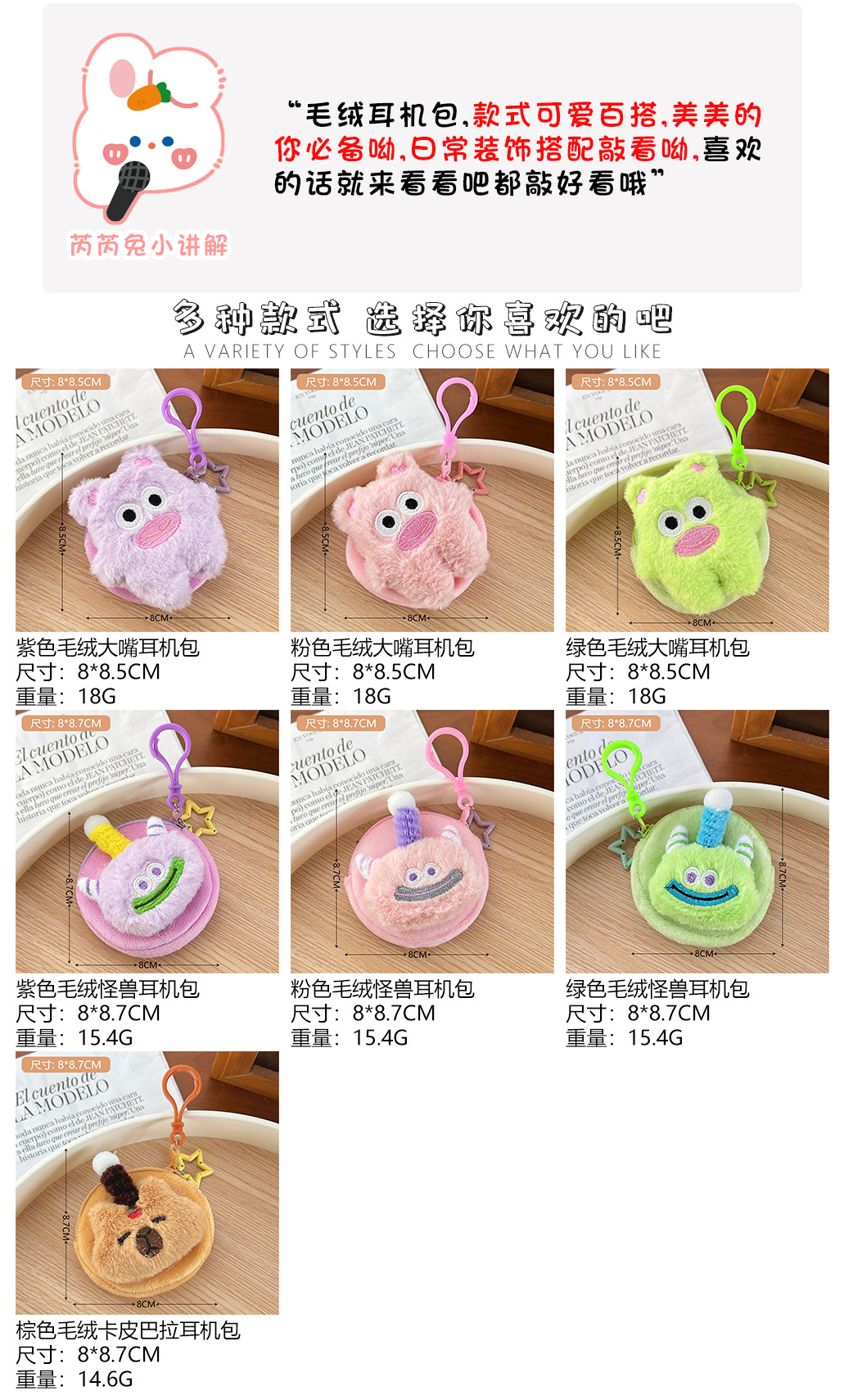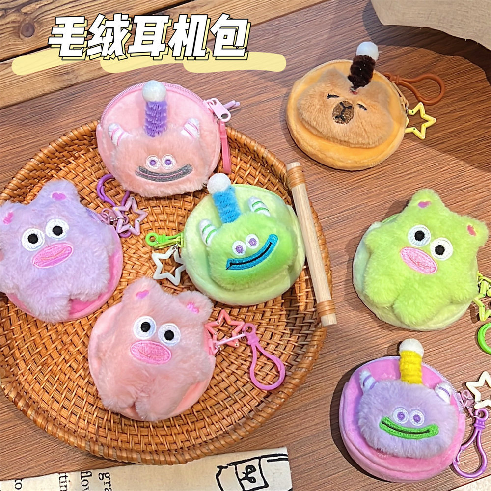 可爱多巴胺耳机包 卡通迷你零钱包书包挂件