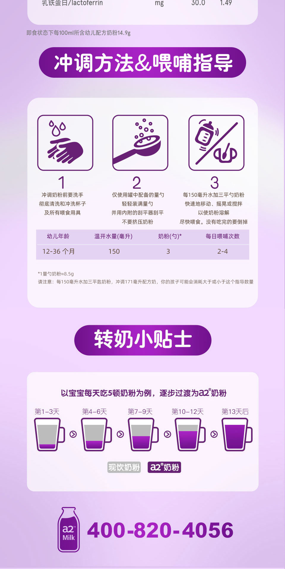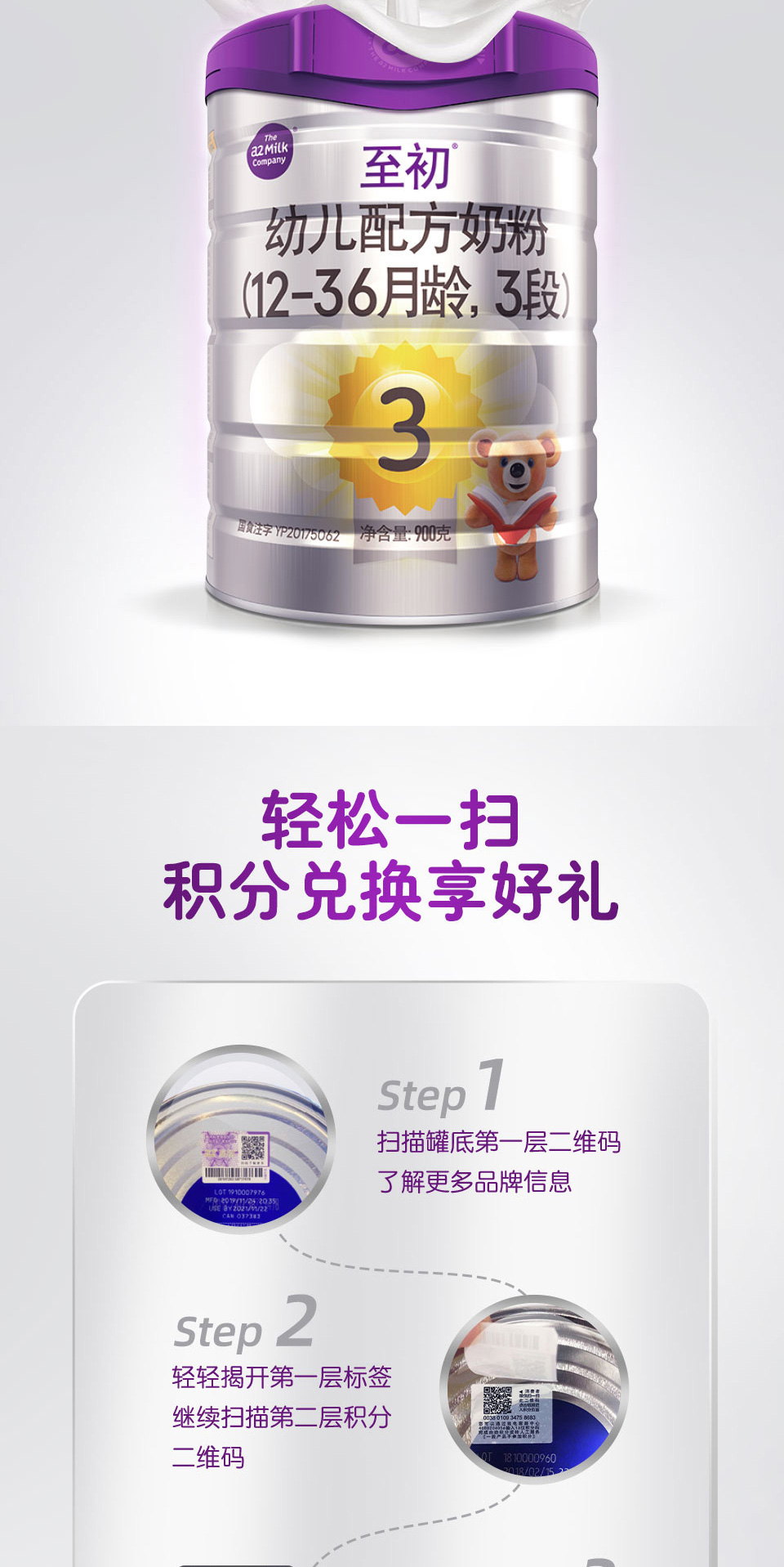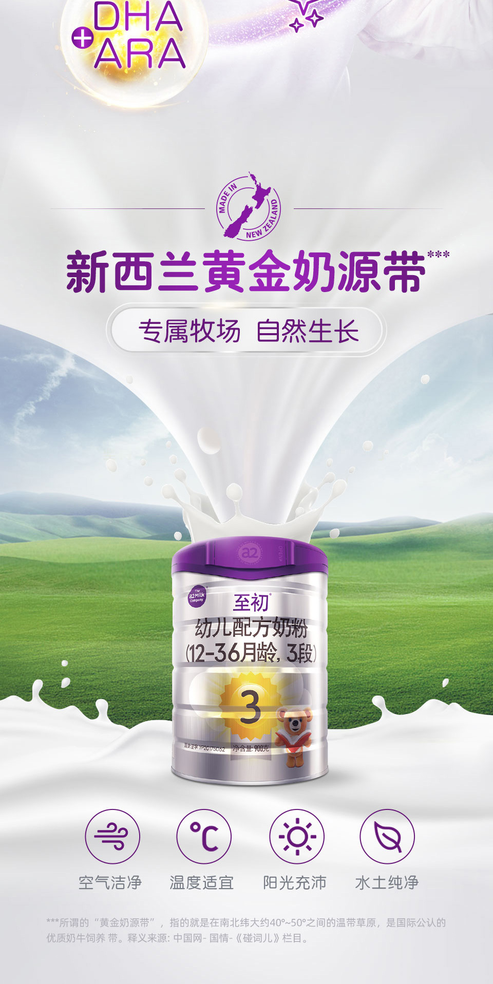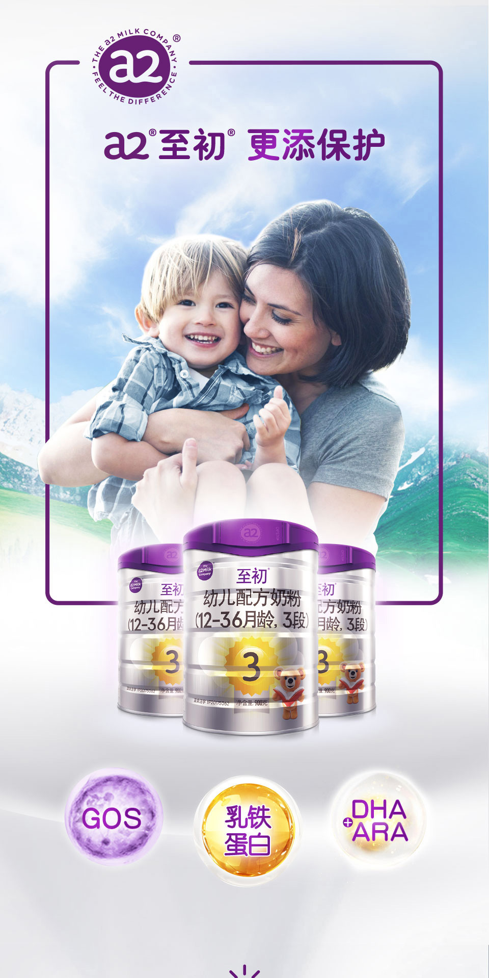 A2至初新西兰原装进口配方奶粉3段12-36月 900g/罐
