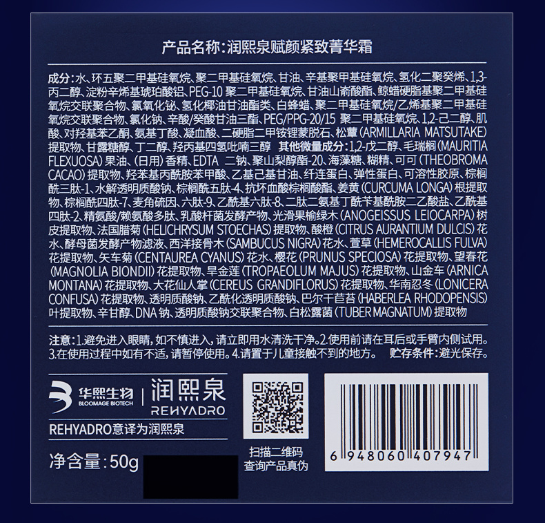 【效期至27年4月-11月】华熙生物润熙泉赋颜紧致菁华霜 2周紧致抗皱 淡化三大顽固纹路