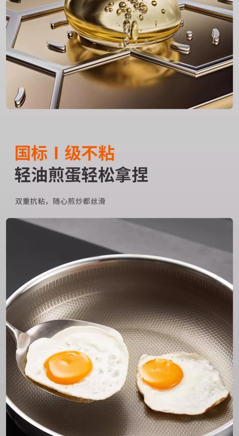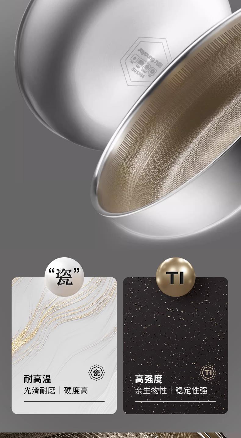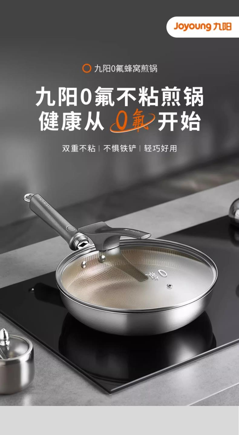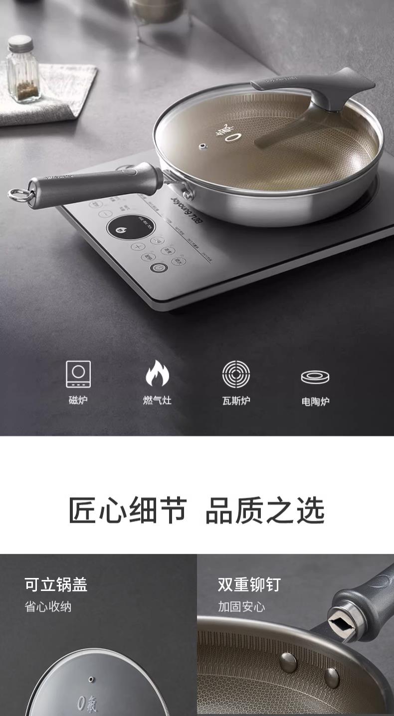 九阳钛晶蜂窝深煎锅火红环感温不粘平底锅304复合钢燃磁通用炒锅