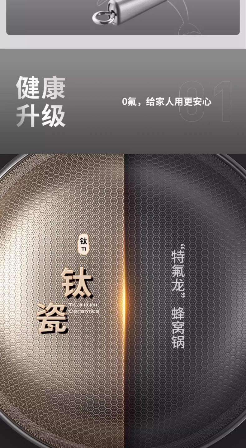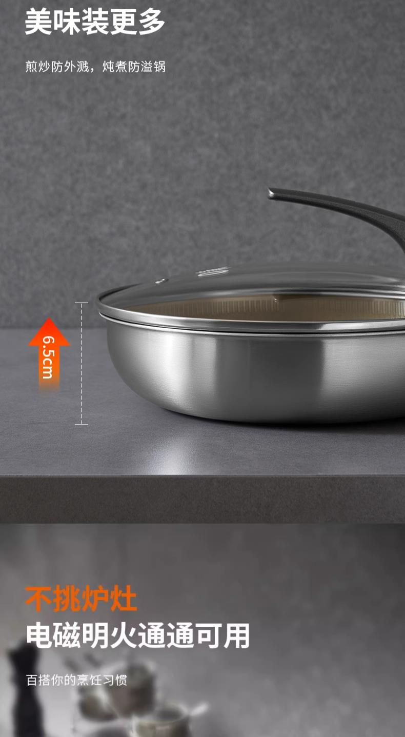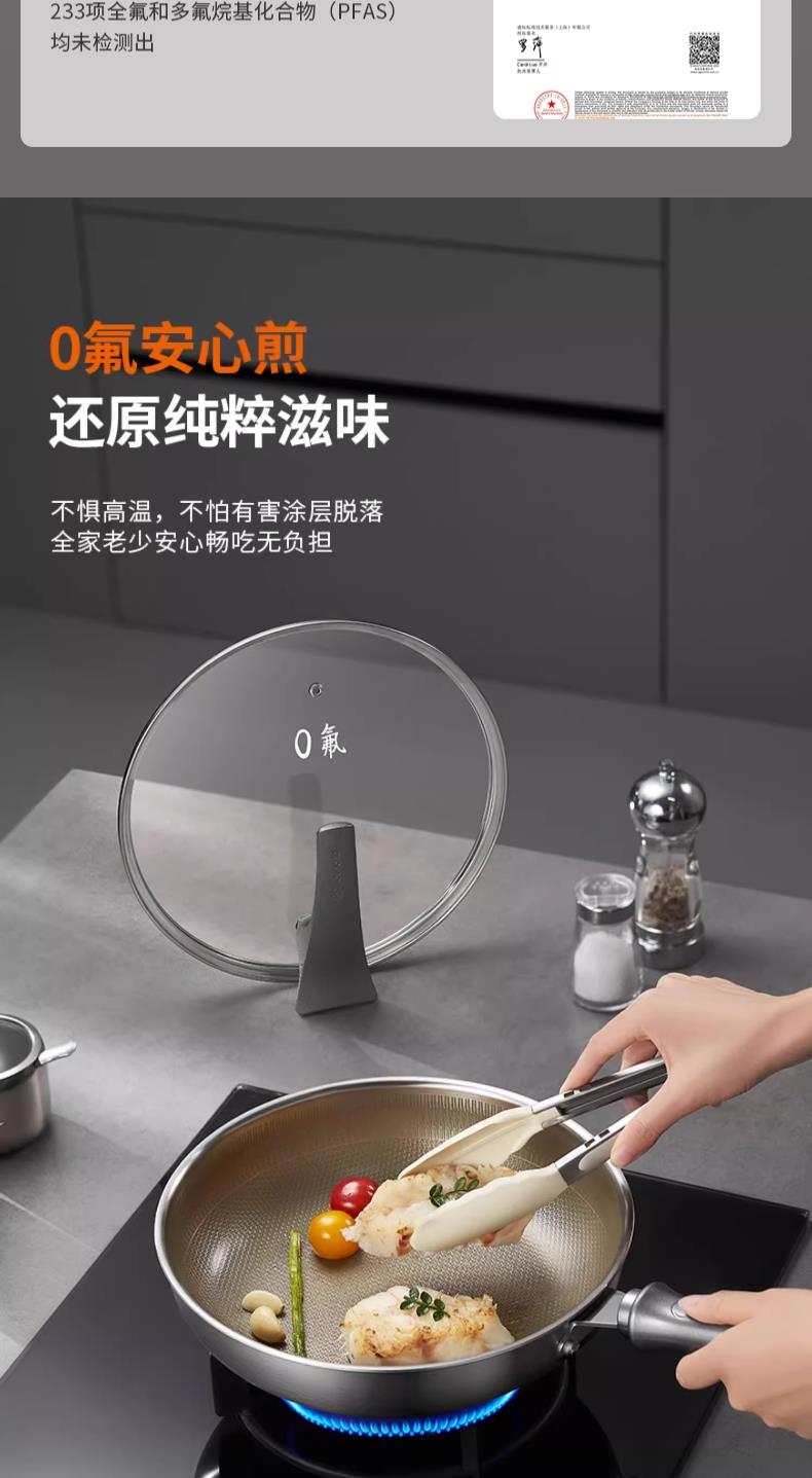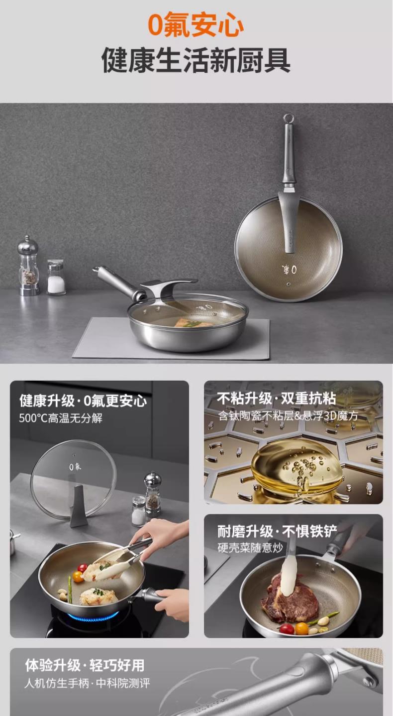 九阳钛晶蜂窝深煎锅火红环感温不粘平底锅304复合钢燃磁通用炒锅