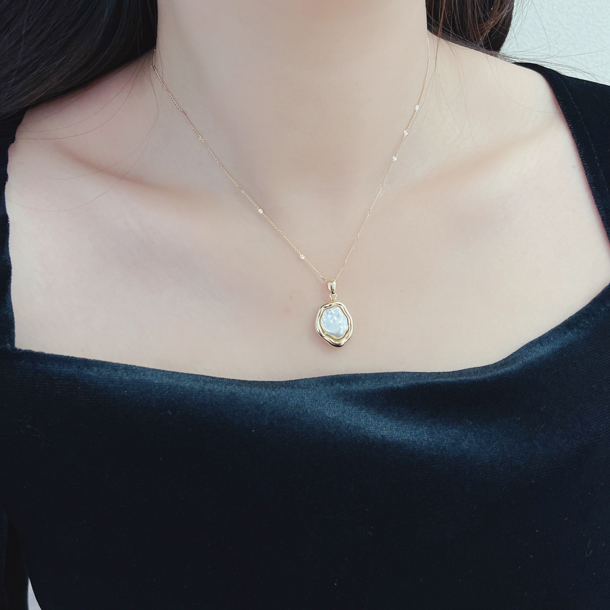 Oflye潮流饰品 法式优雅轻奢珍珠巴洛克仿珍珠气质锁骨链项链
