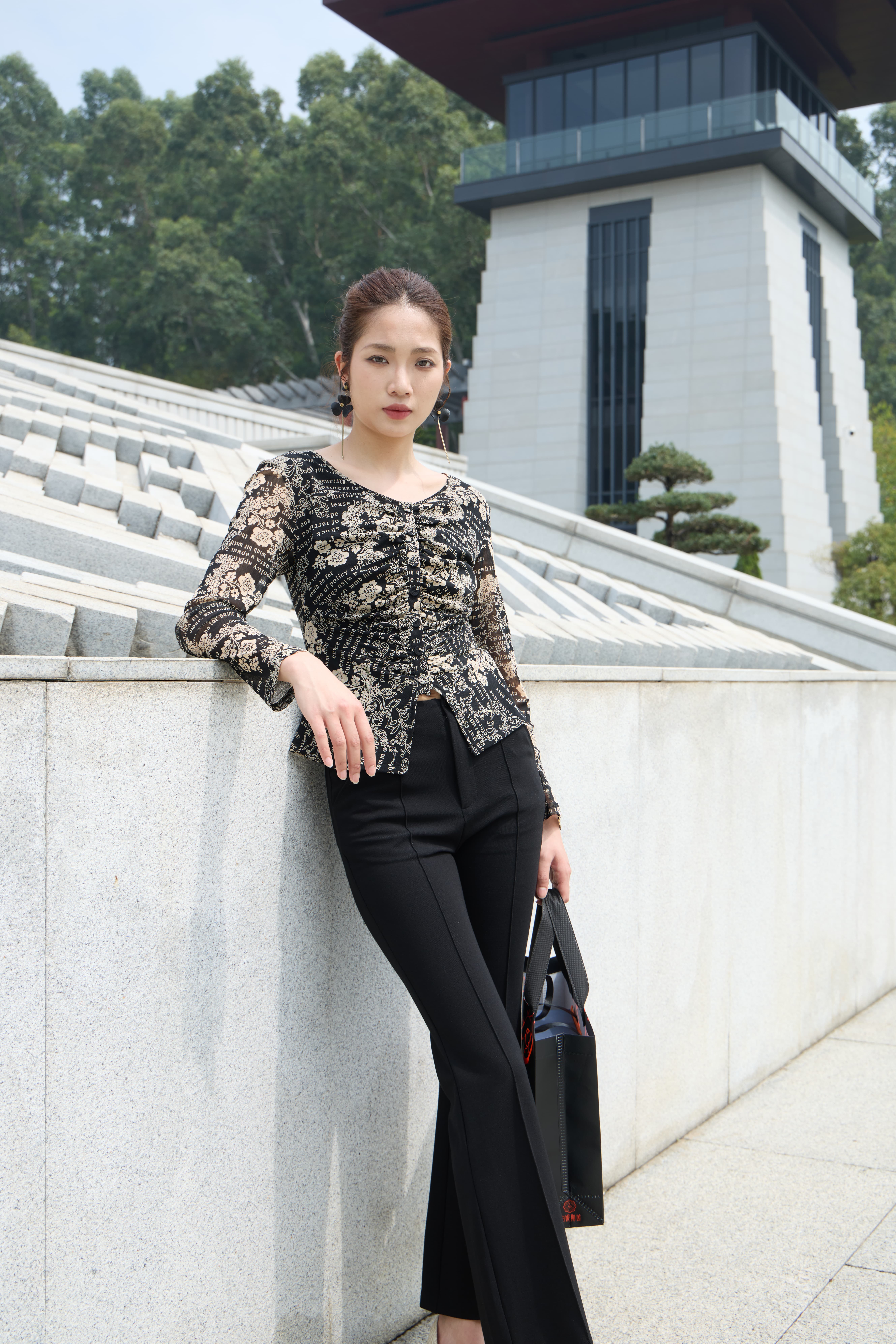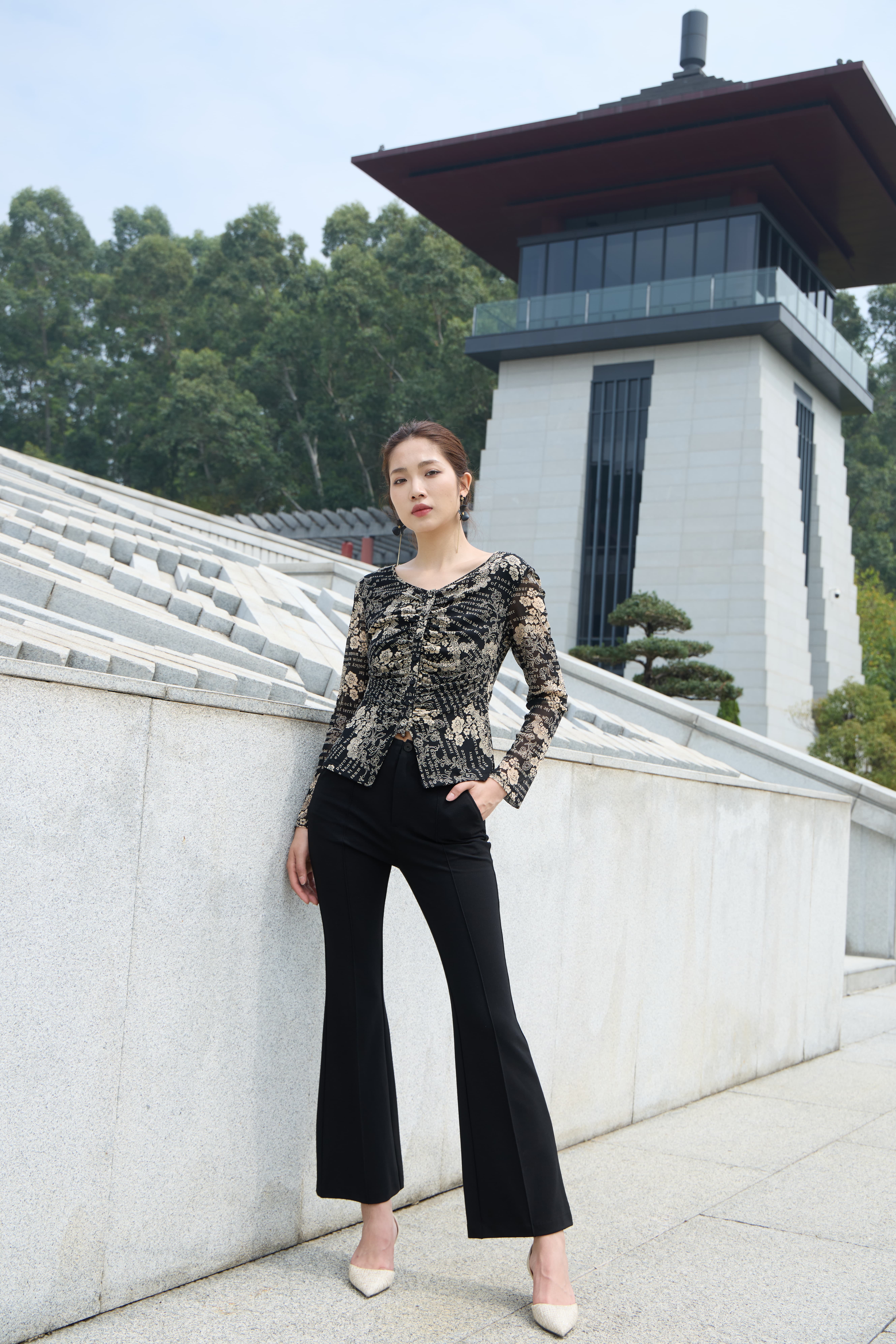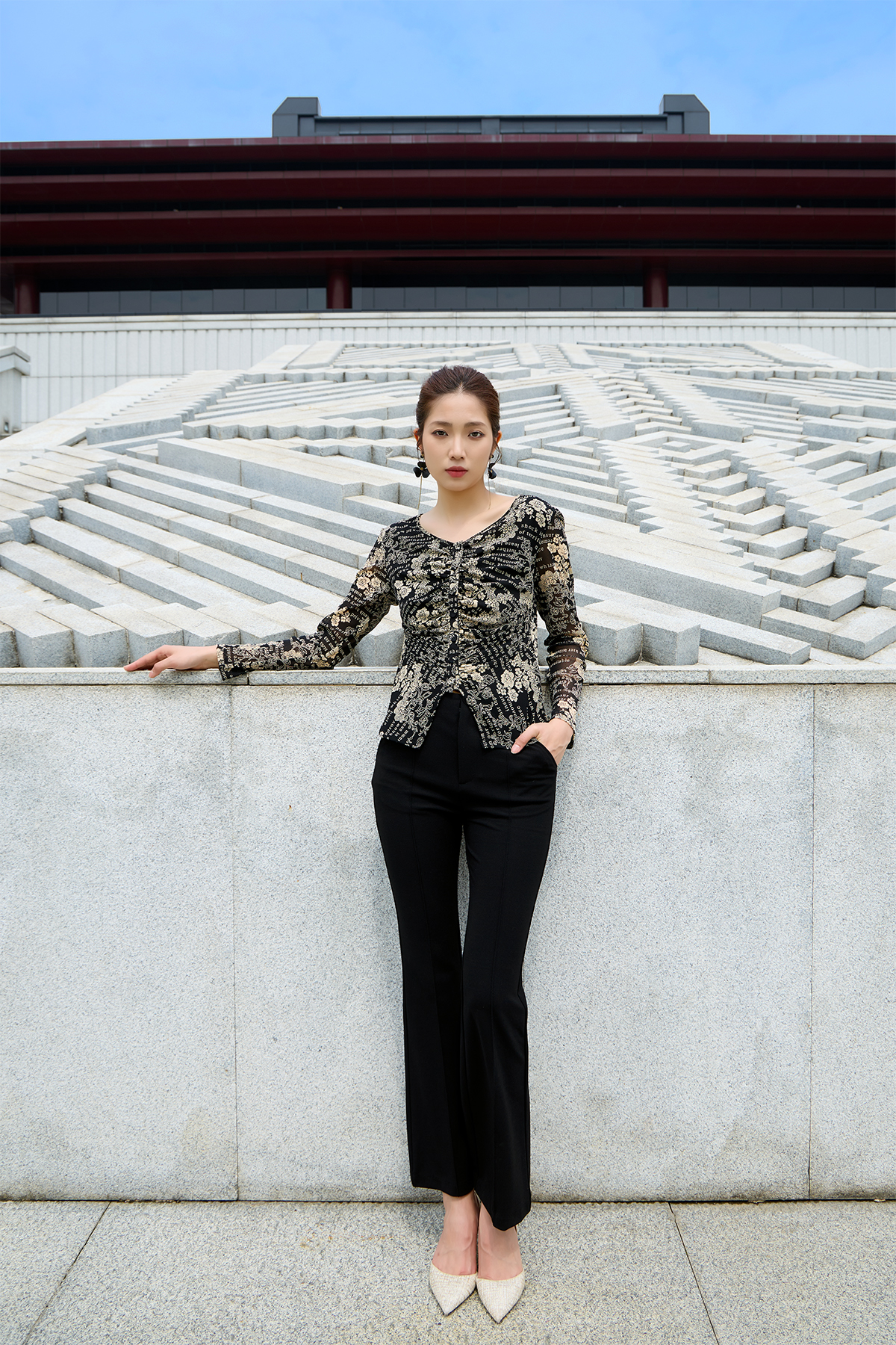 搭配显瘦喇叭神裤,流畅剪裁拉长腿部线条,行走间如展馆雕塑般优雅。博物馆光影长廊里,你就是流动的艺术品✨