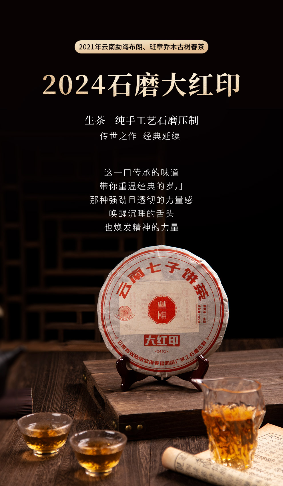 2024年石磨大红印普洱生茶云南布朗班章核心产区古树春茶-400克/片