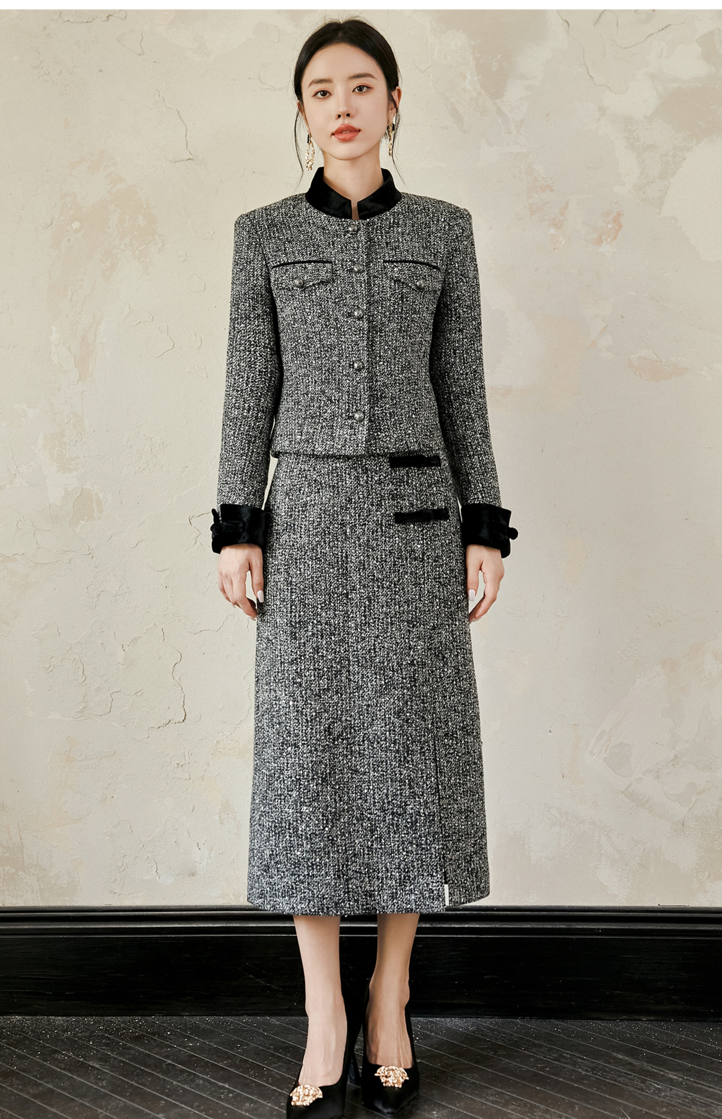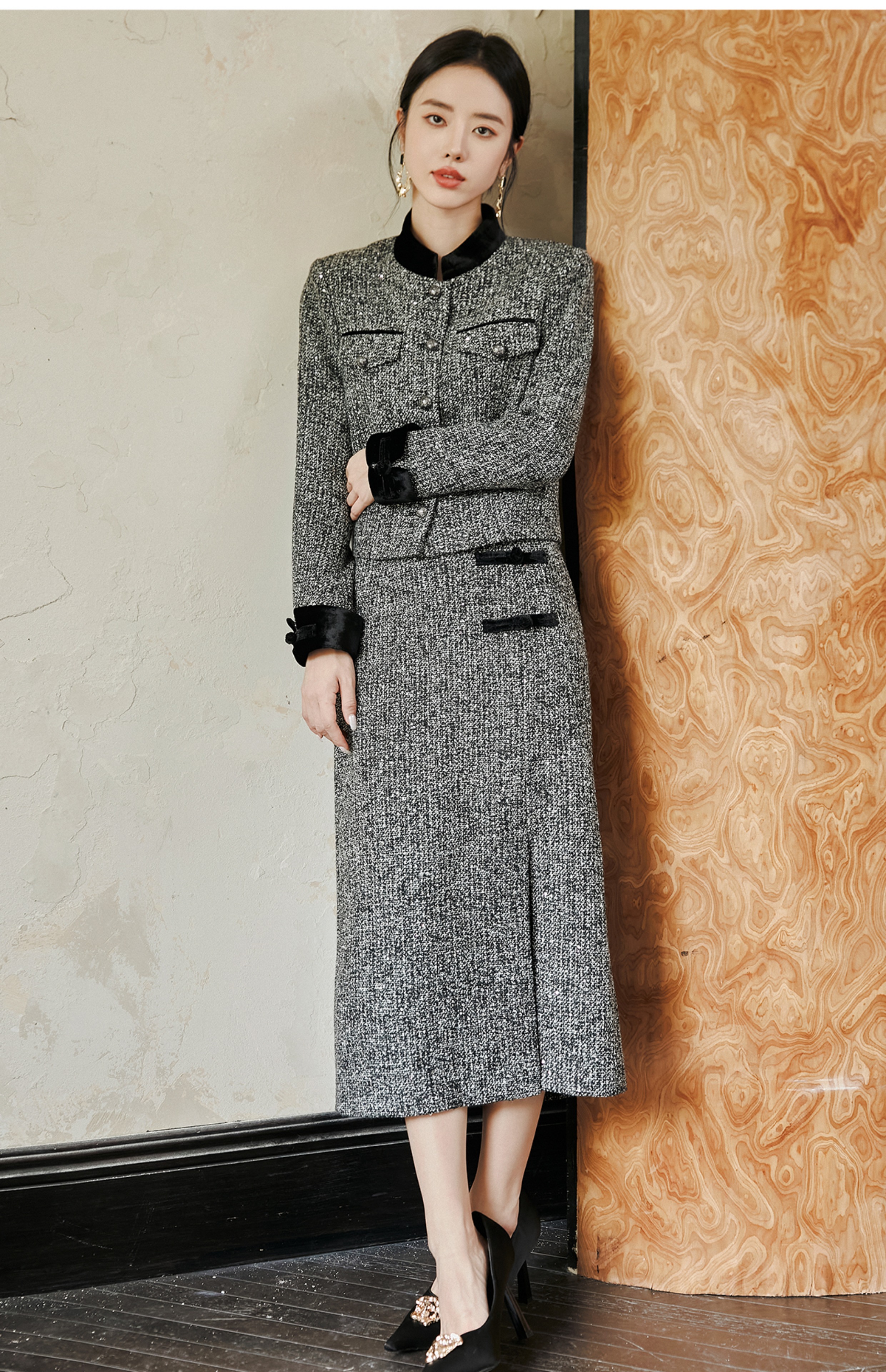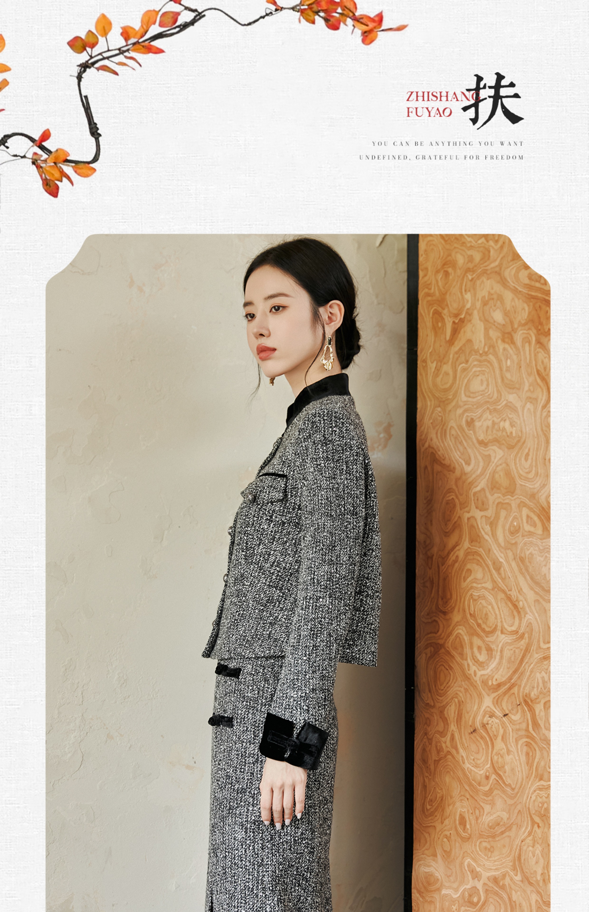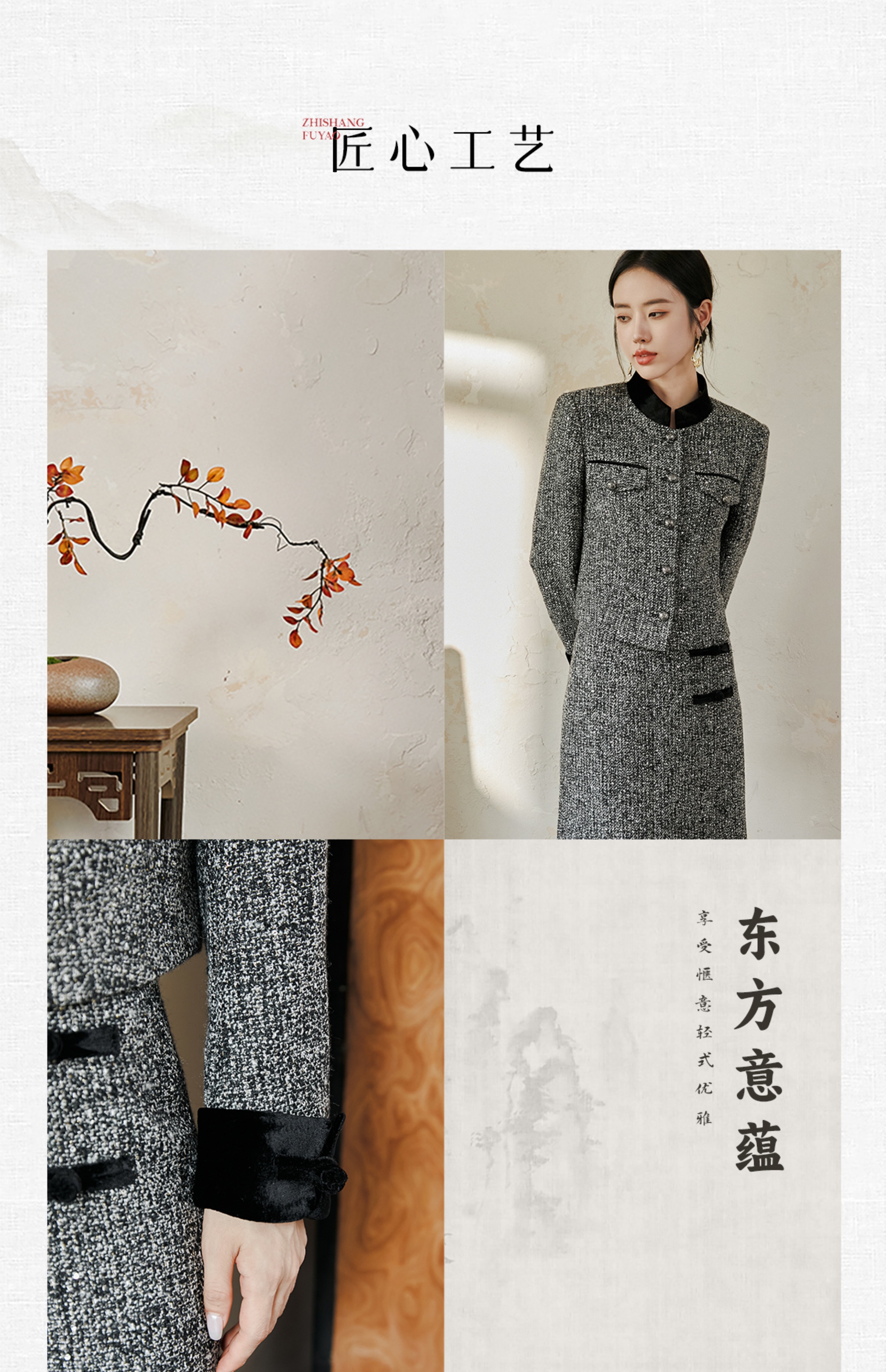 FUYAO扶摇 奢贵羊毛短外套早春新款粗花呢收腰上衣半裙小香风套装