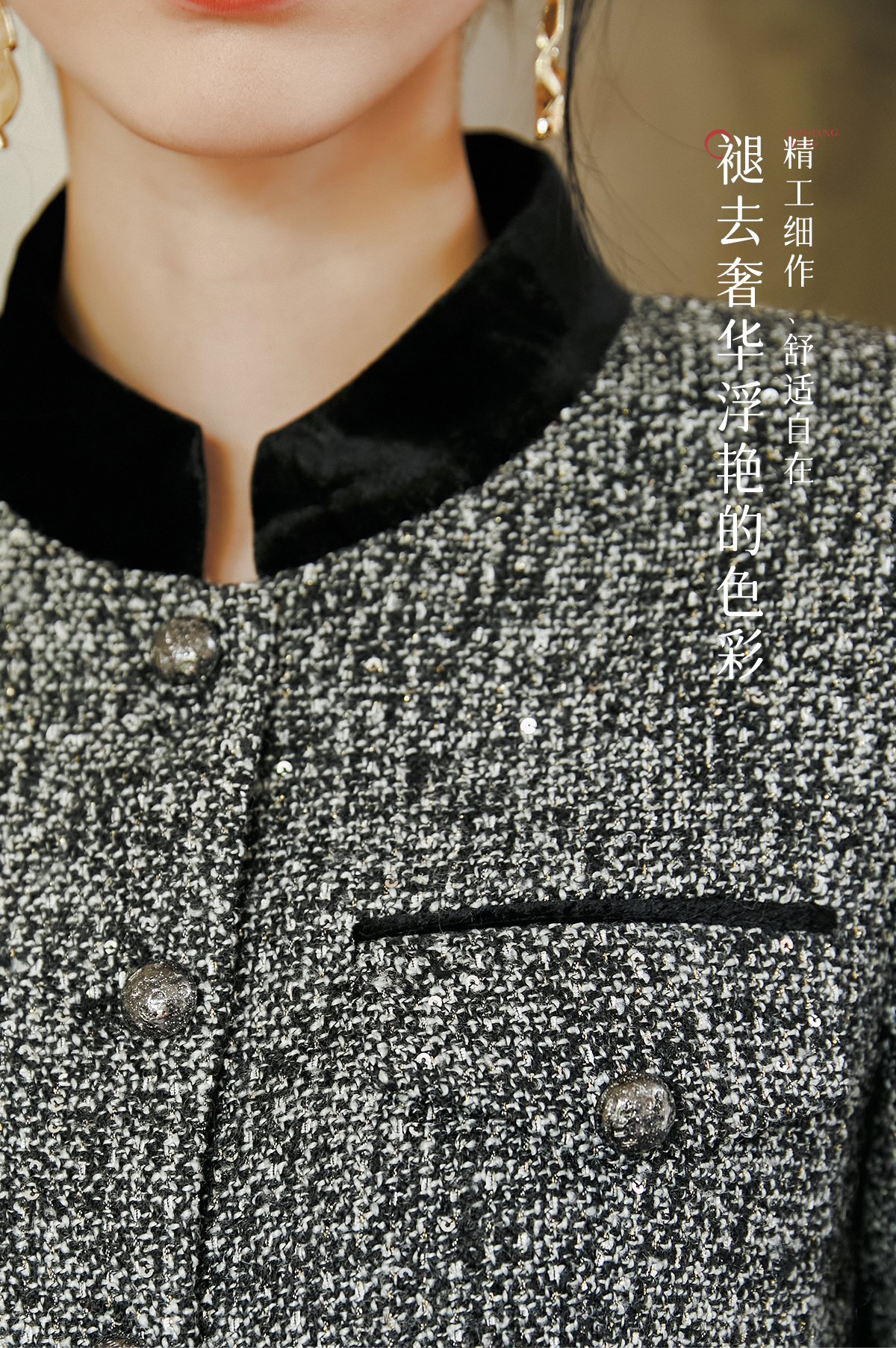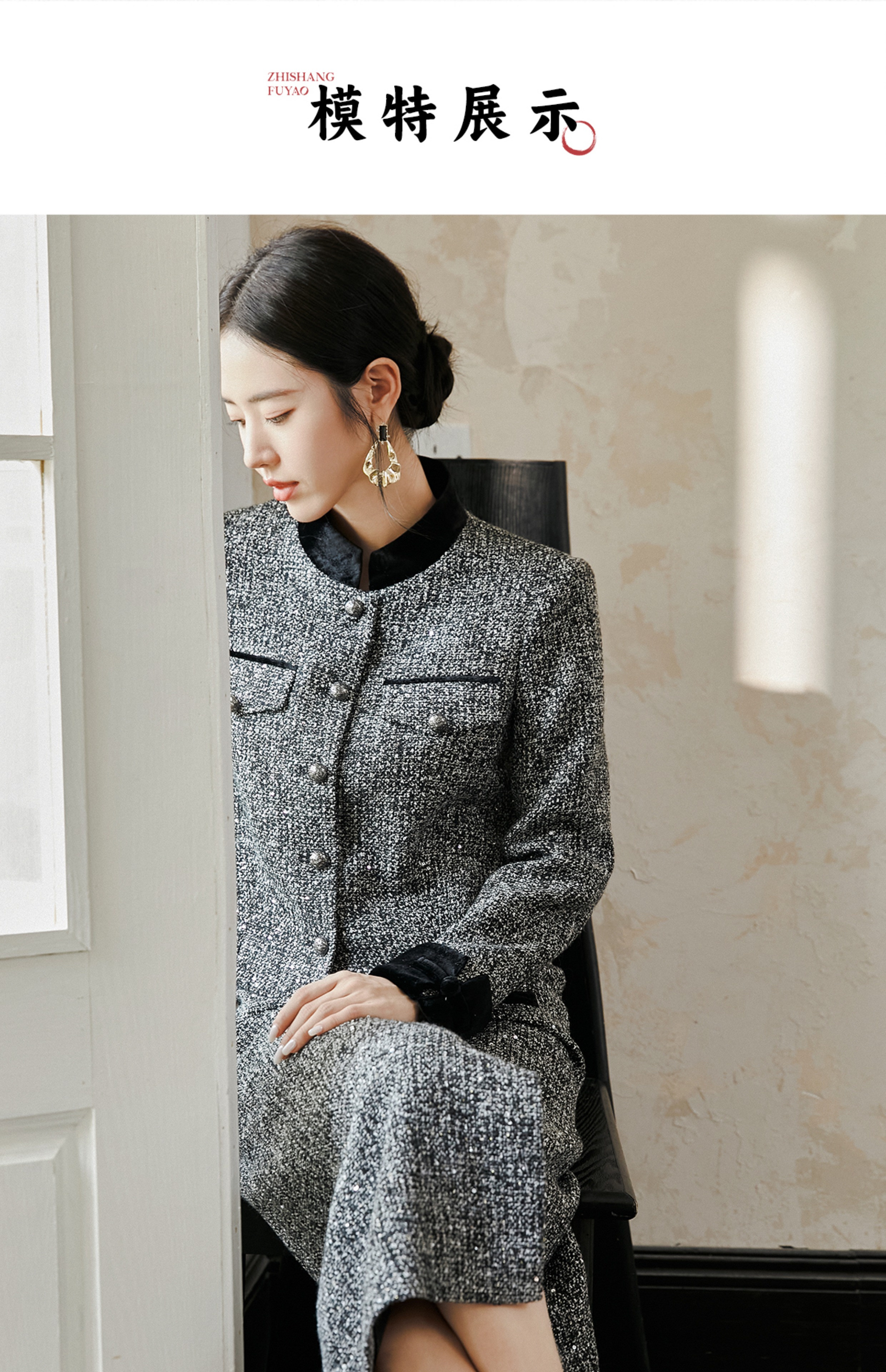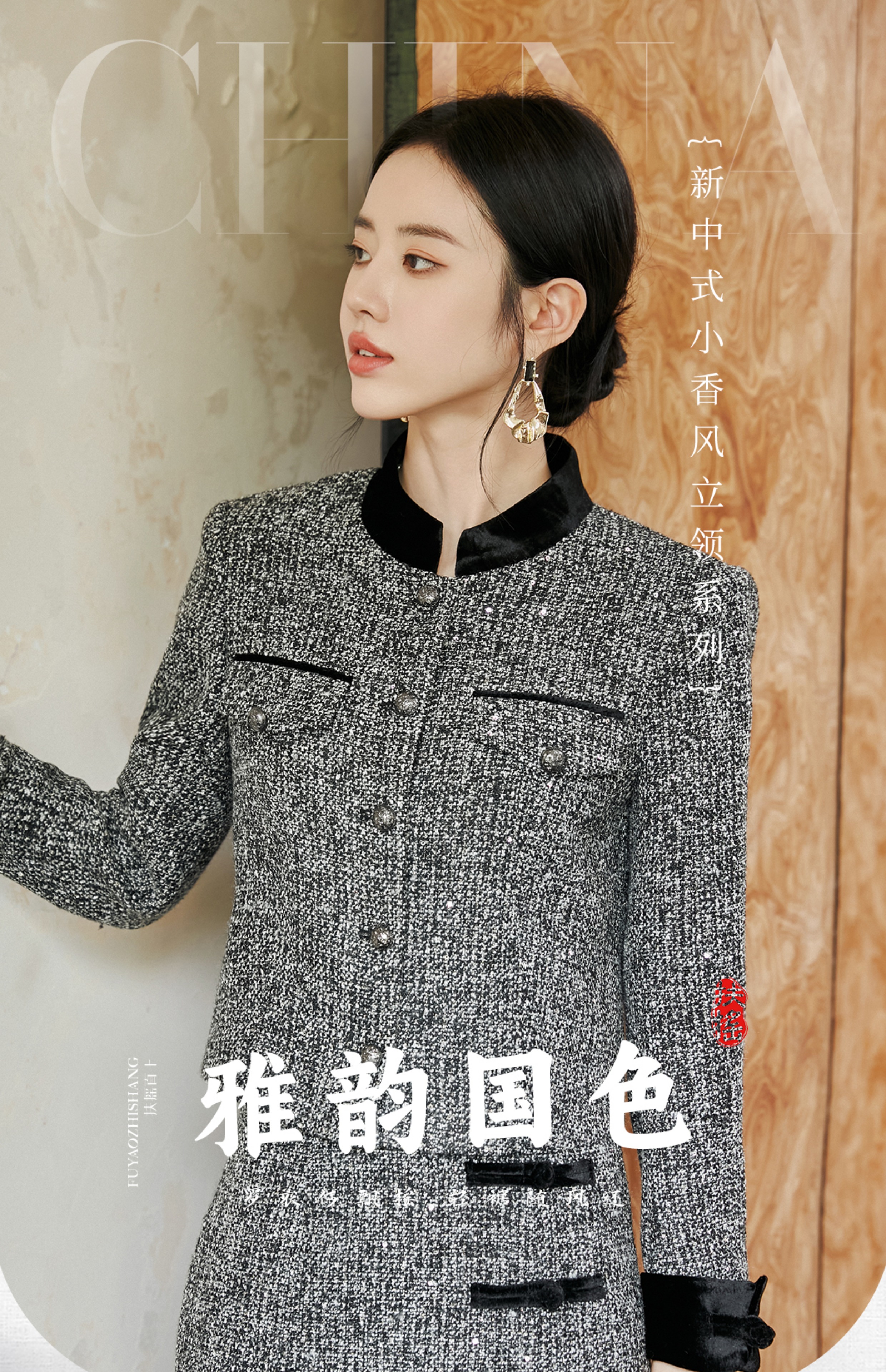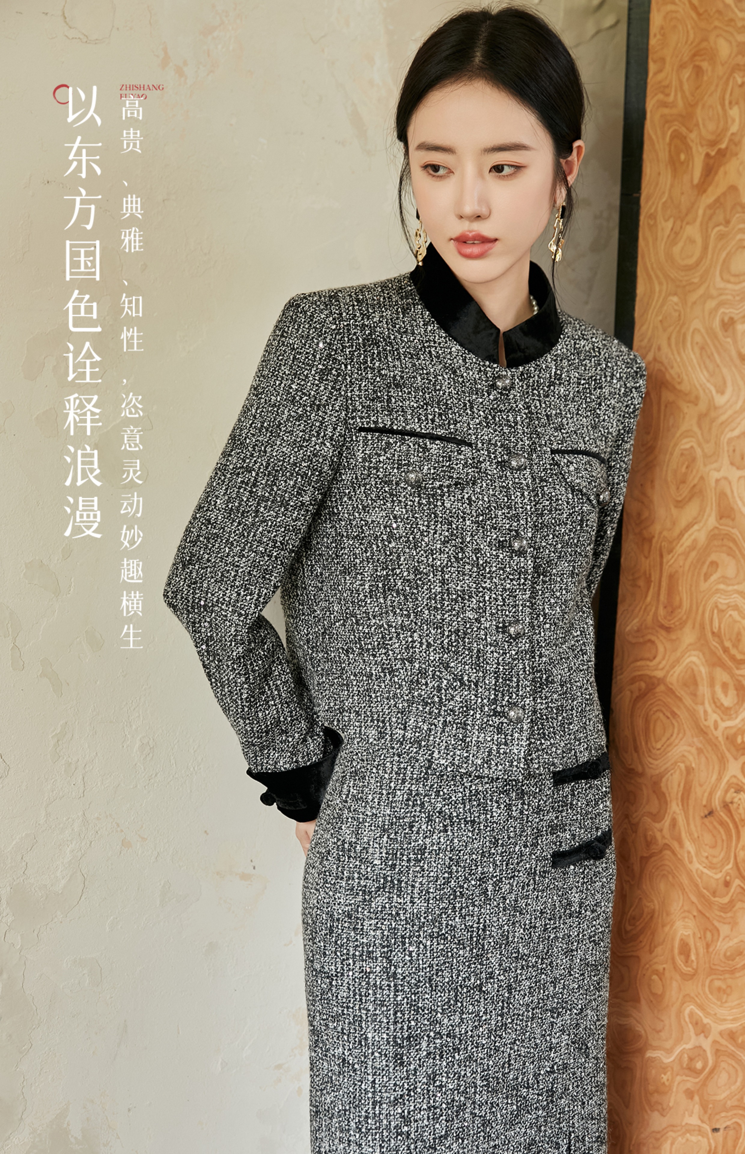 FUYAO扶摇 奢贵羊毛短外套早春新款粗花呢收腰上衣半裙小香风套装