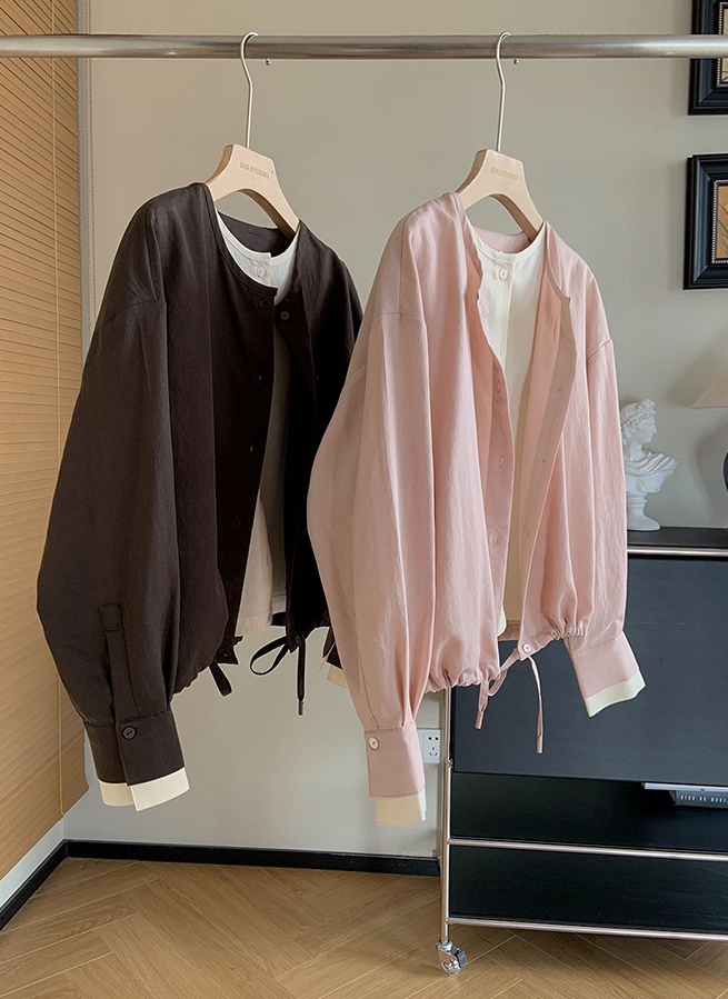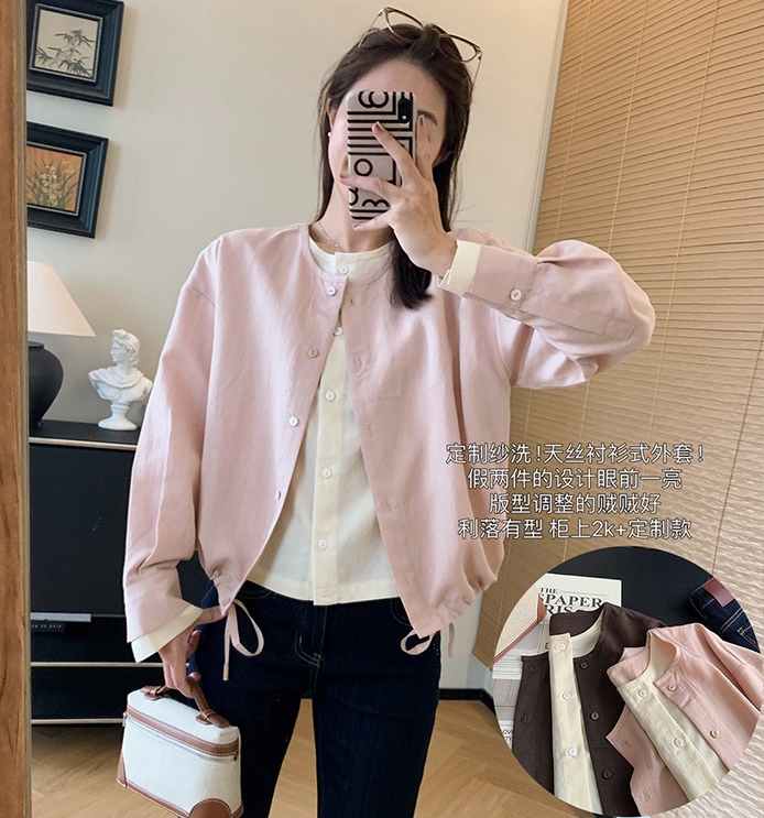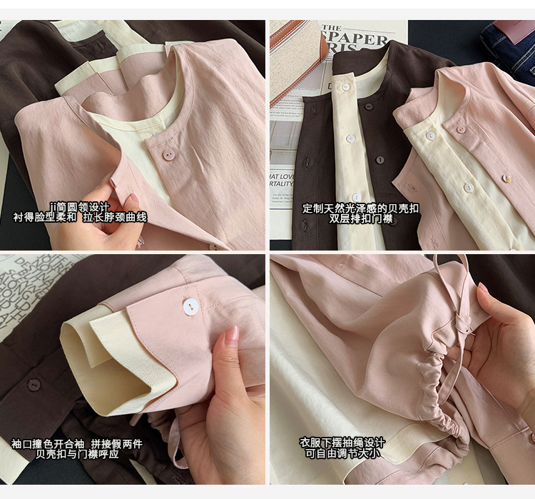 砂洗高比例天丝混纺撞色假两件设计~紧密纺技术纺纱再配以篙密工艺织造而成的面料,质地亲肤透气、柔滑顺垂,带有筋骨整件微宽松的版型,包容性佳,不挑人。