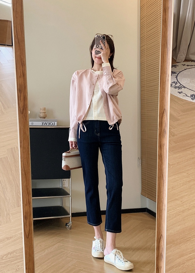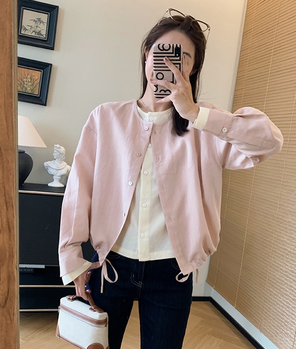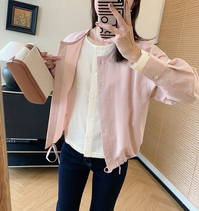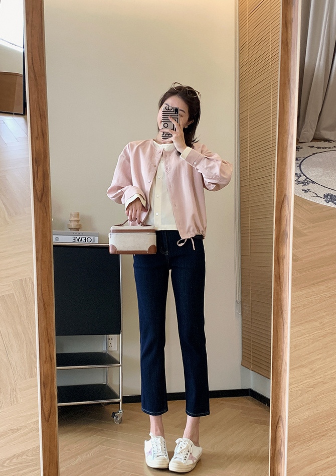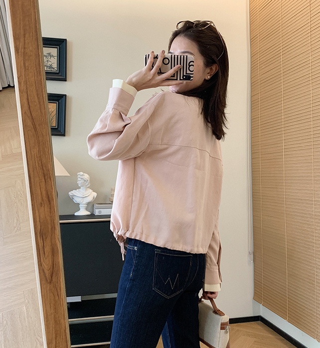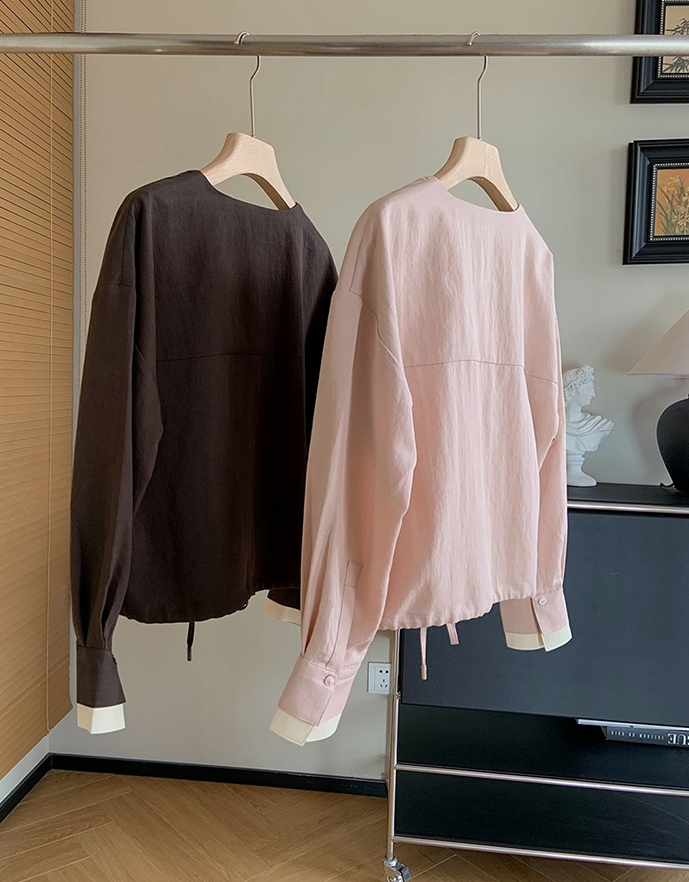 剪裁平整有型,衬托脸型,修饰脖颈。内里撞米白色,轻松摆脱单调,袖口撞色开合袖,衣服下摆做了别出心裁的抽绳设计,增添造型层次感也年龄。