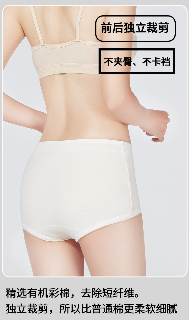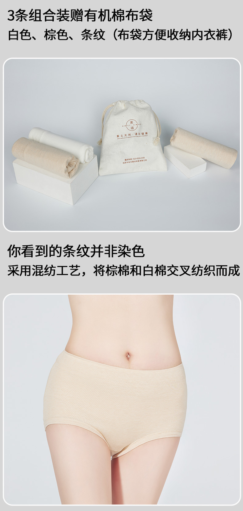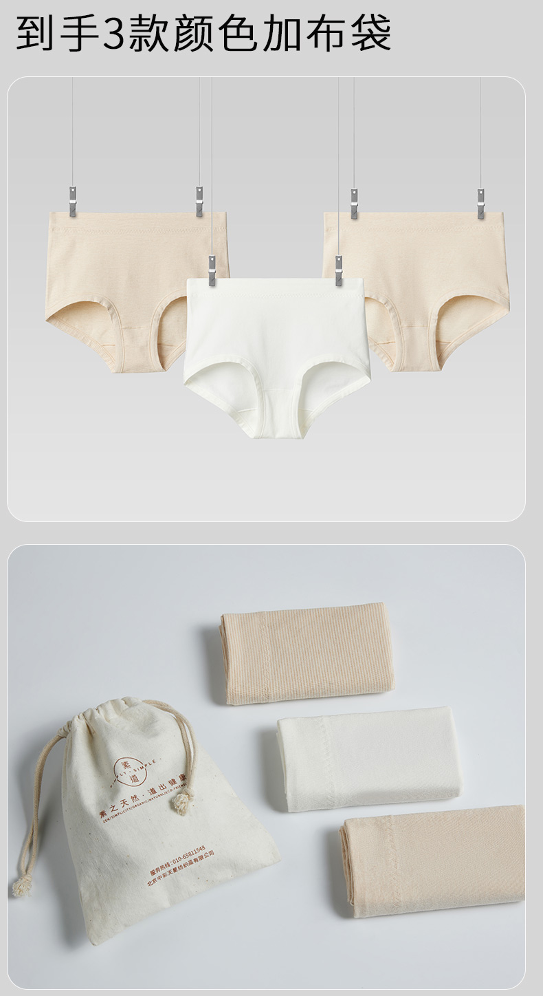 素道有机彩棉 女士中腰三角内裤 3条组合装无痕内裤