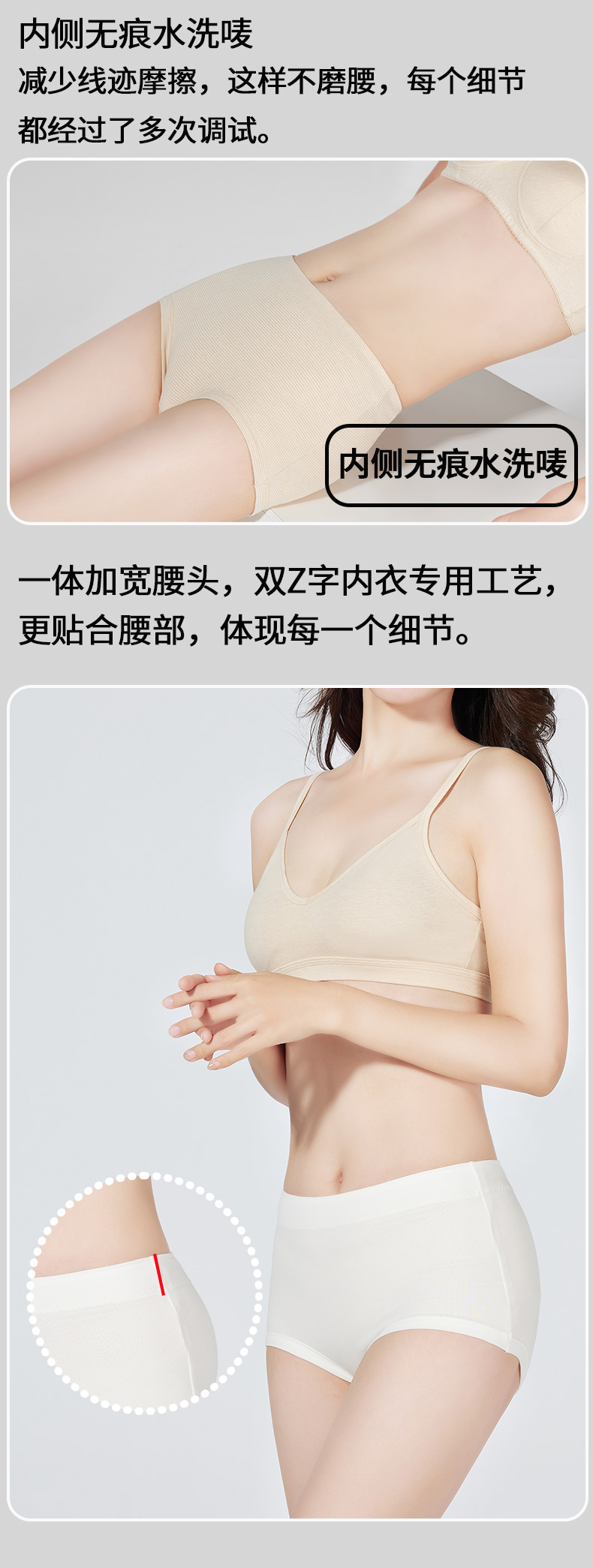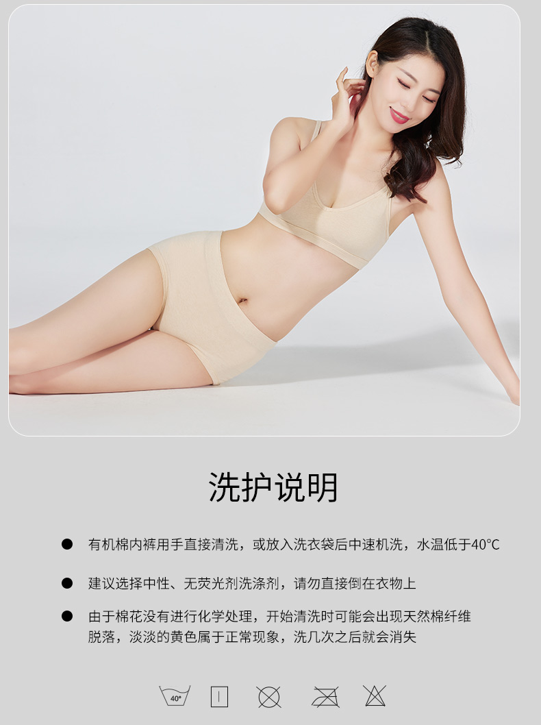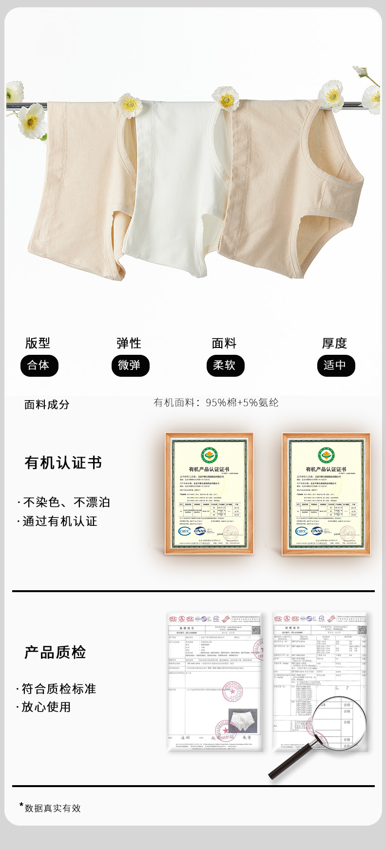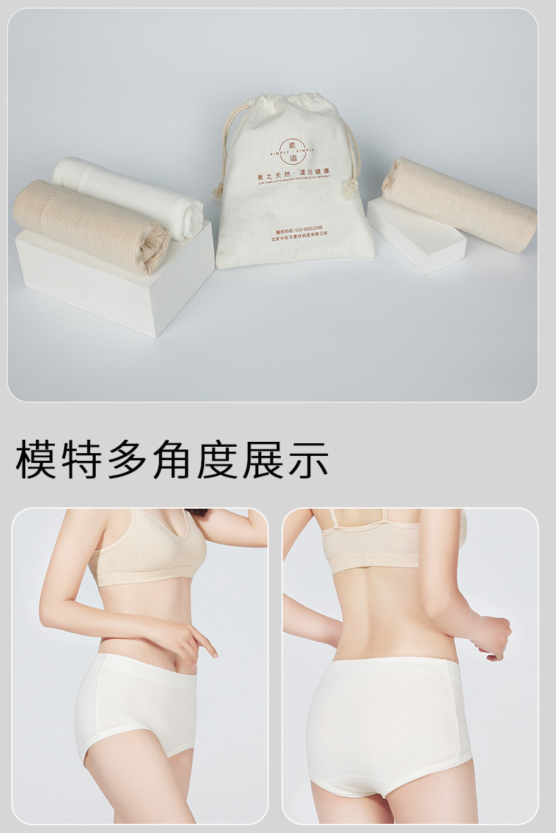 素道有机彩棉 女士中腰三角内裤 3条组合装无痕内裤