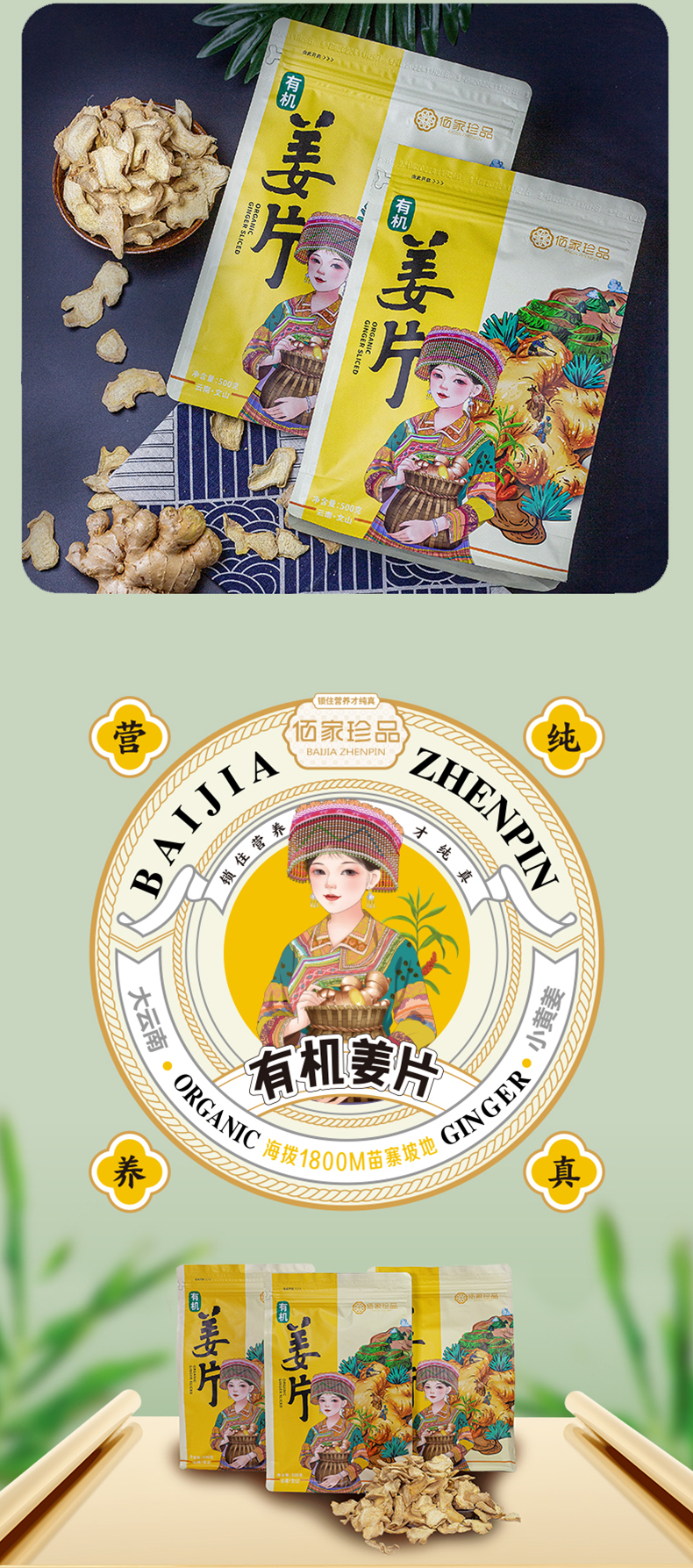 云南文山有机姜片干品干货 无添加不含硫 熬煮姜汤 暖宫 月子经期 佰家珍