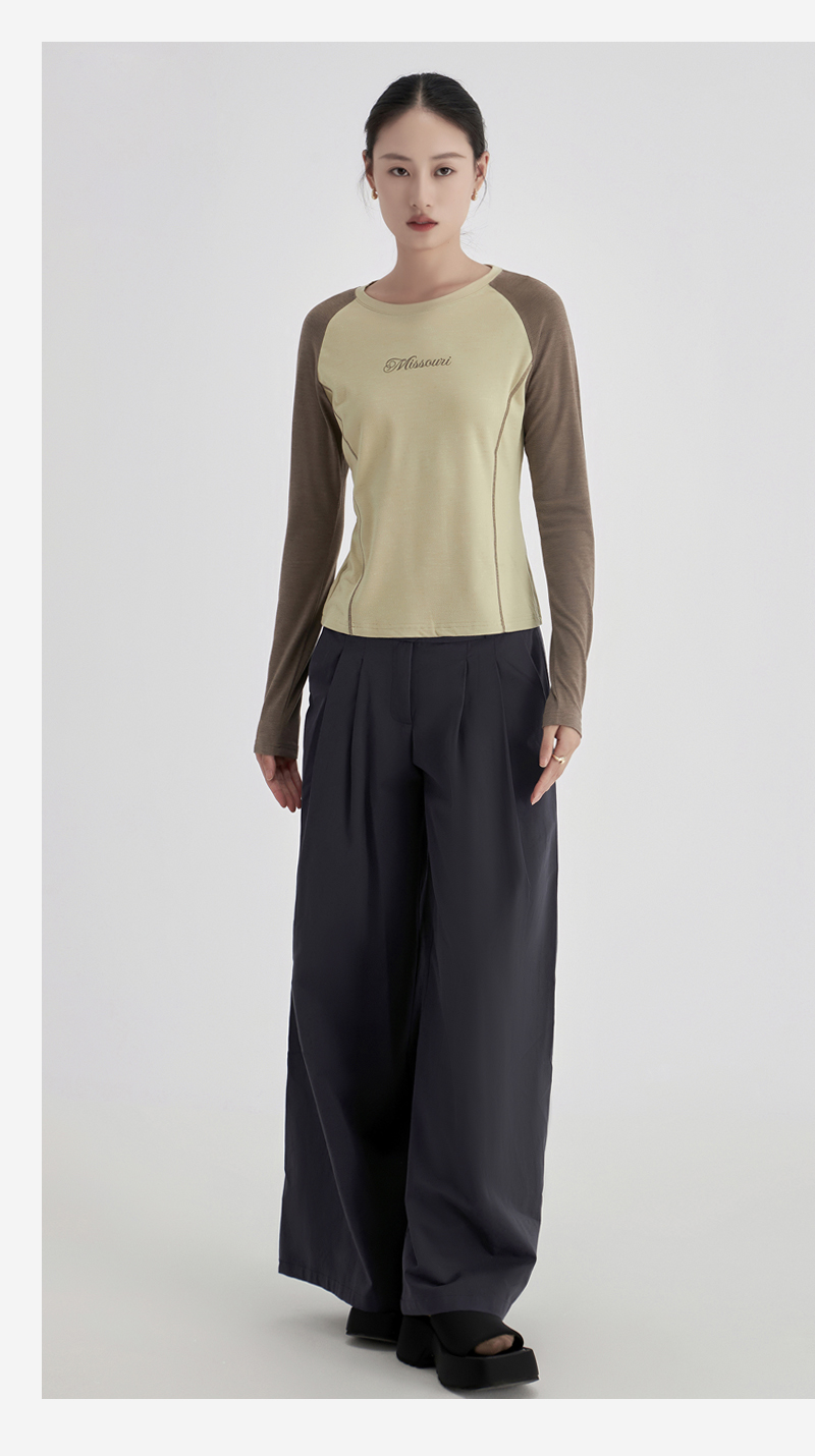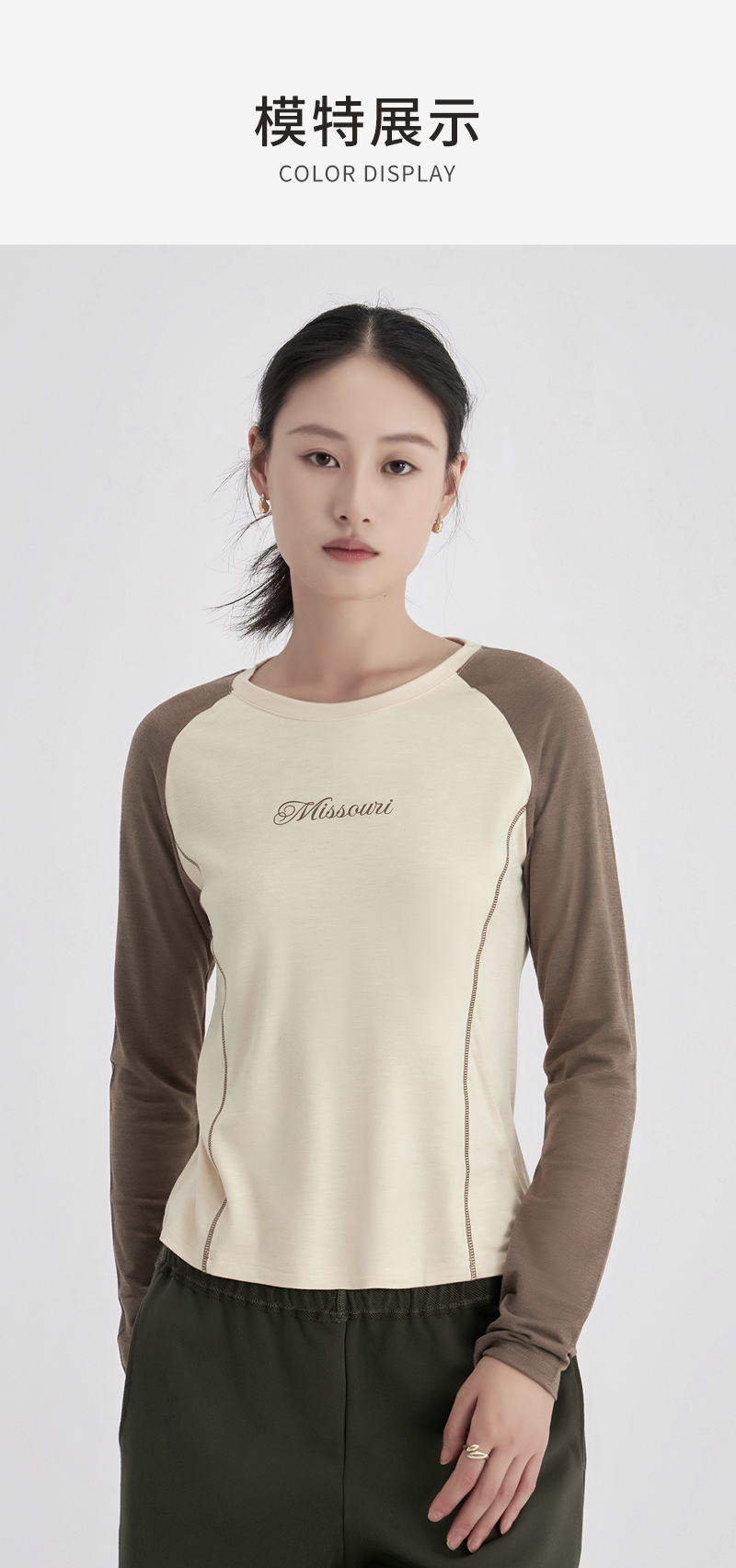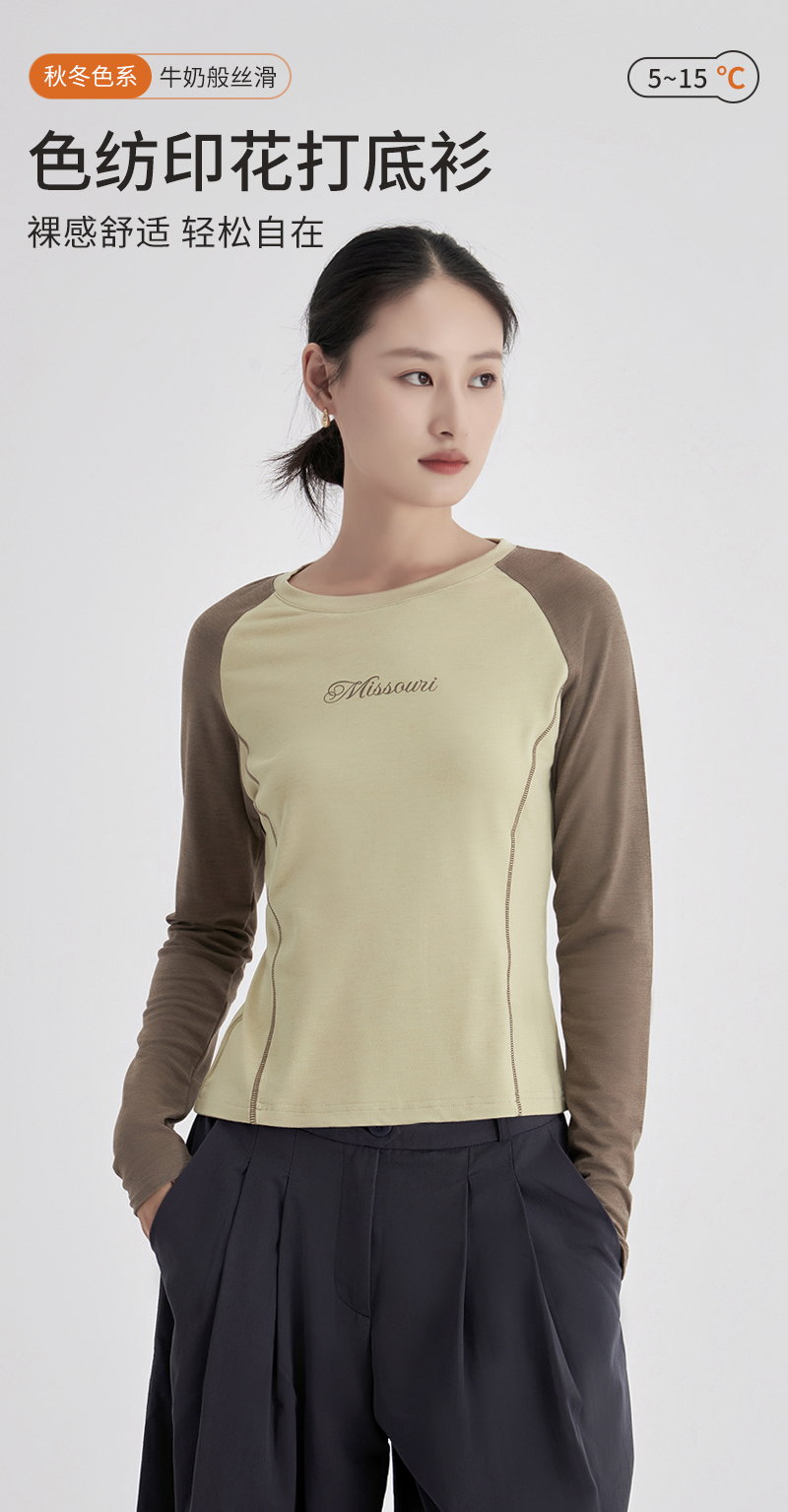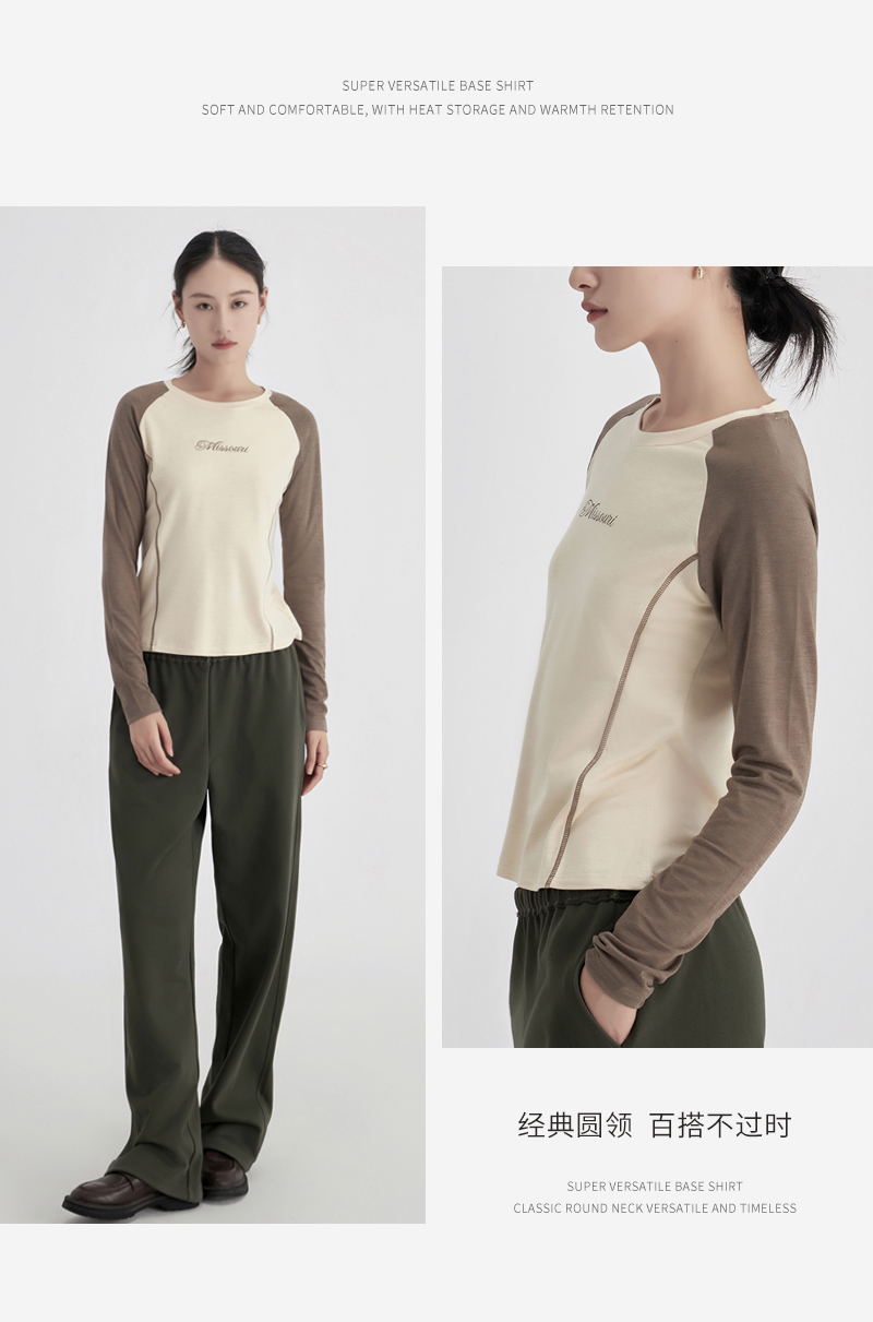 weyo秋冬女修身百搭色纺字母印花撞色打底衫A17306 商品图0