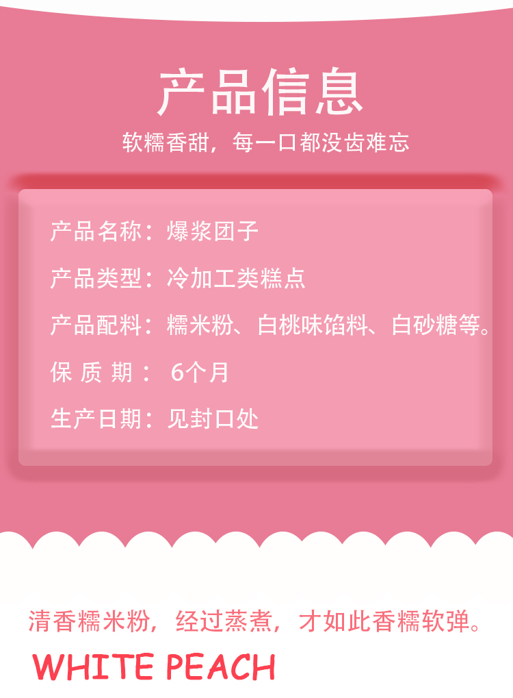 零食铺子 爆浆团子(白桃味) 500g 糯米爆浆夹心点心 软绵Q弹 爆浆夹心