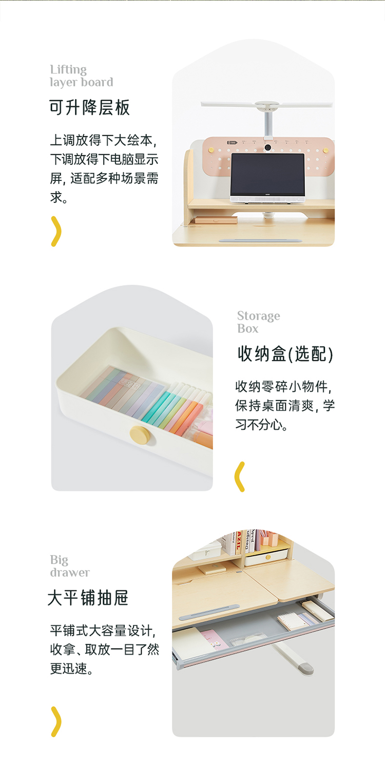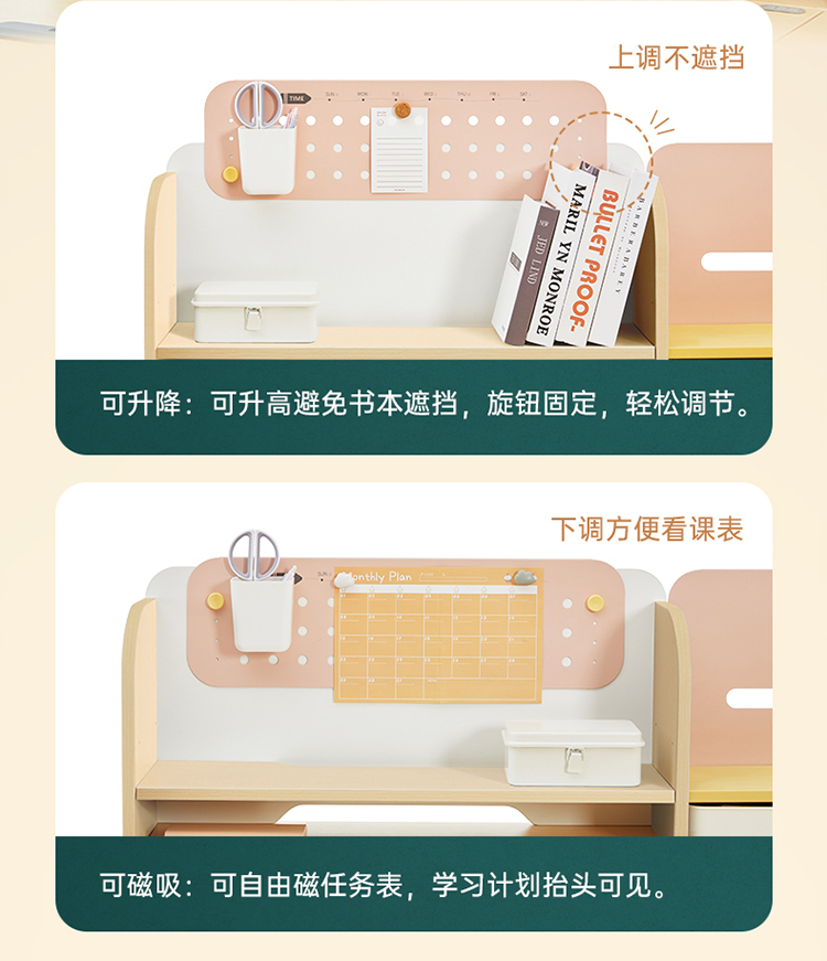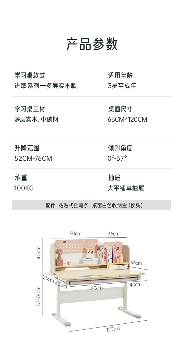 进取枫木纹(含洞洞板)单桌赠品:挡笔条*1,白色抽屉收纳盒*1