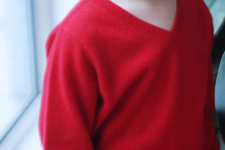 托斯卡纳的艳阳·棉麻丝卷边领镂空插肩长袖针织衫