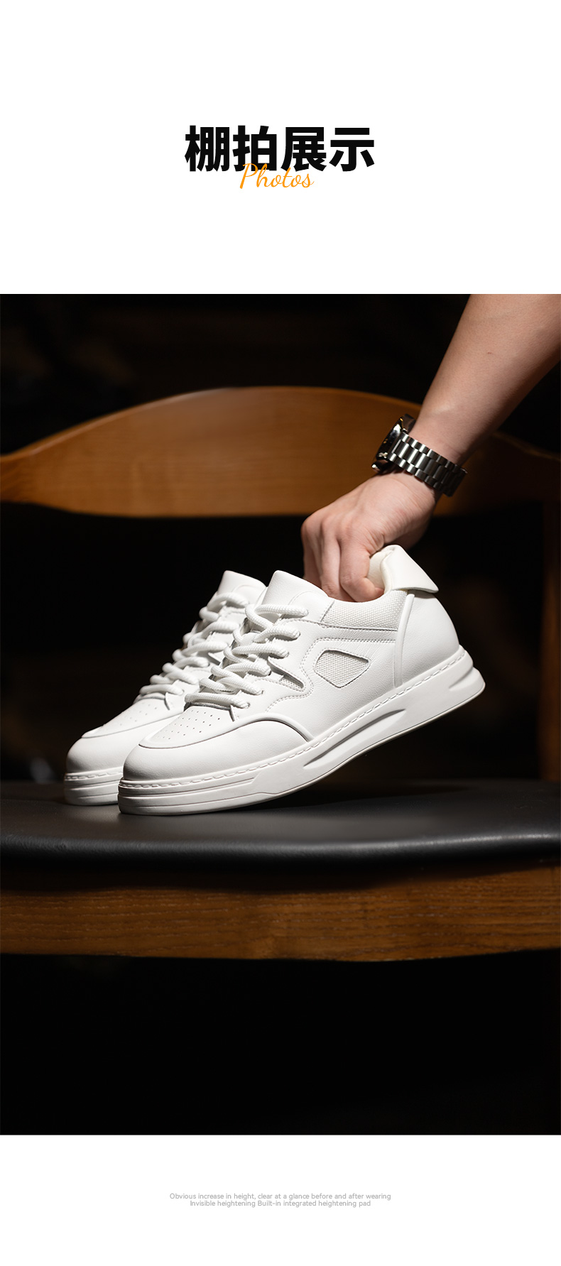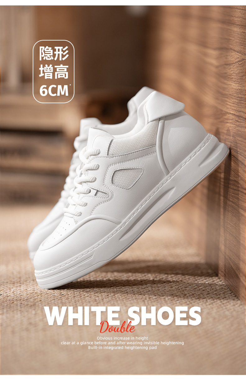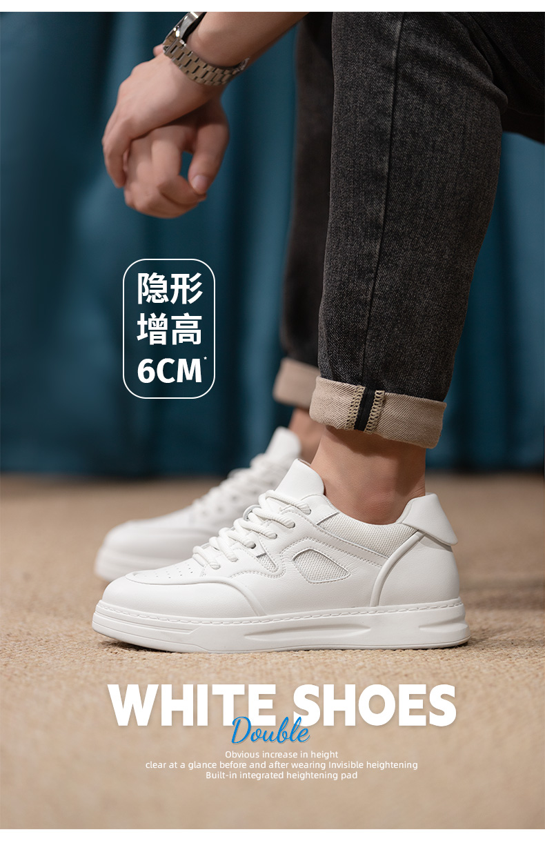增高6厘米男士休闲鞋板鞋小白鞋内增高男鞋百搭透气皮面潮