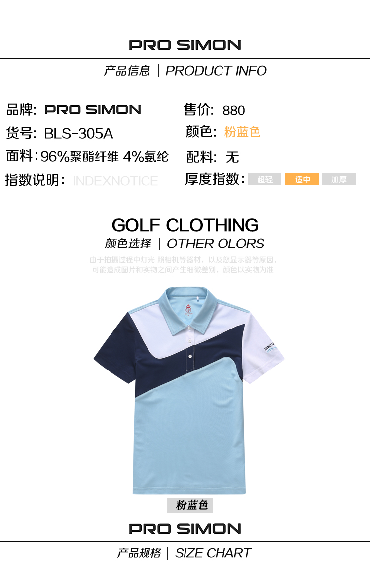 BLS-305A(PROSIMON高尔夫女款春夏短袖拼接翻领Polo衫)
