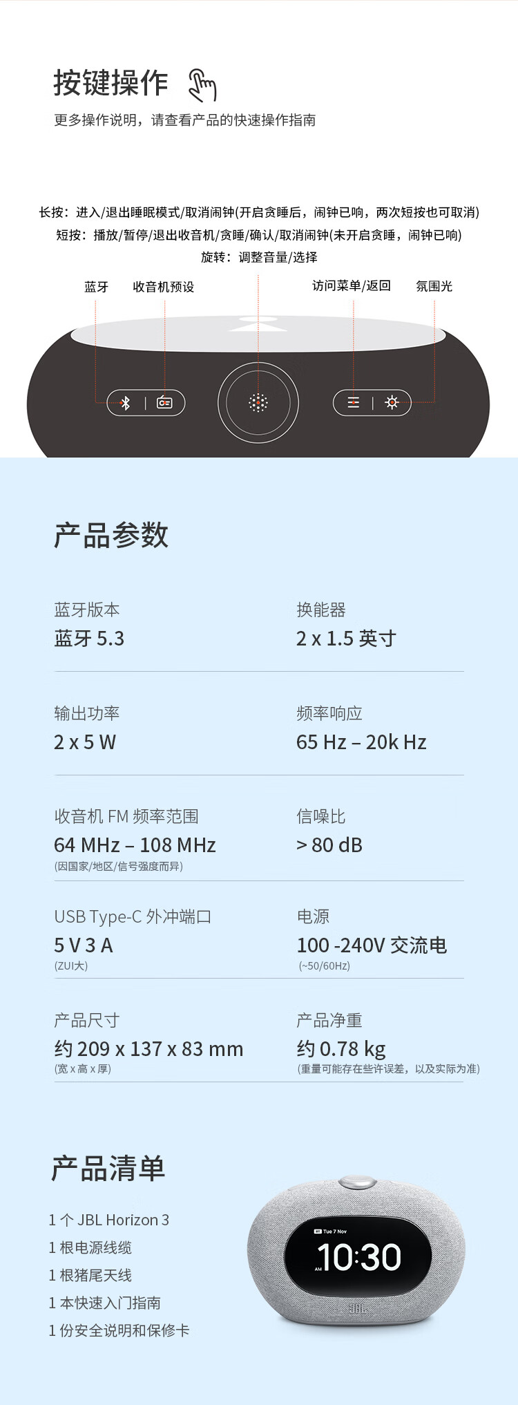 JBL HORIZON 3 音乐地平线三代 蓝牙闹钟音箱