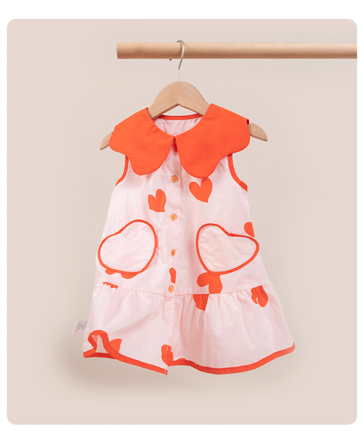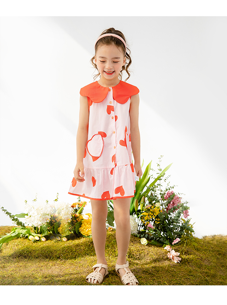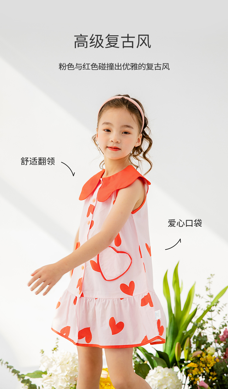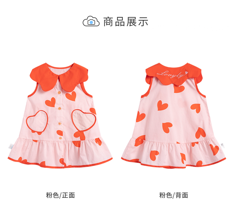 贝贝怡宝宝2022年新款女春夏装裙女童爱心满印连衣裙儿童短款裙子