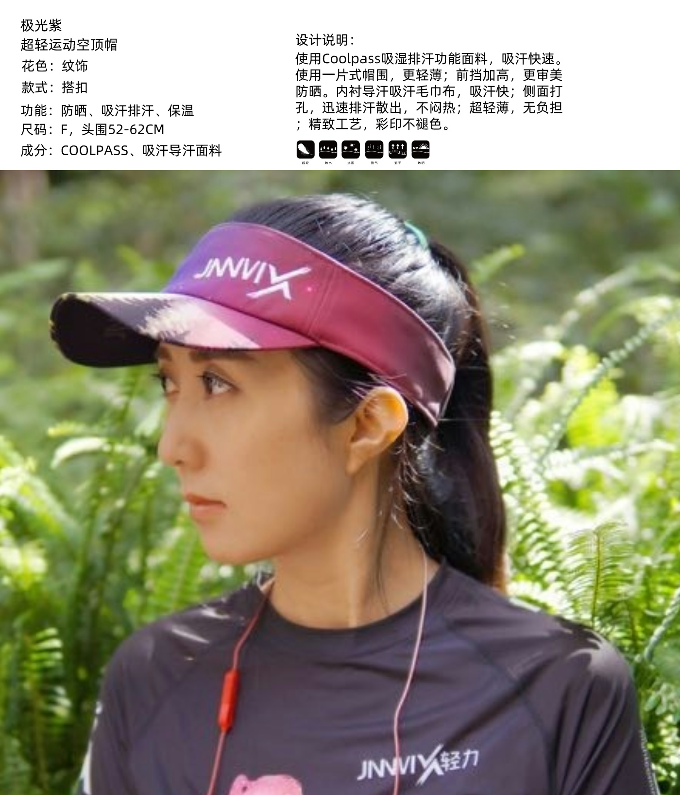 【功能级】JINNMIX轻力极光紫轻量排汗跑步空顶帽