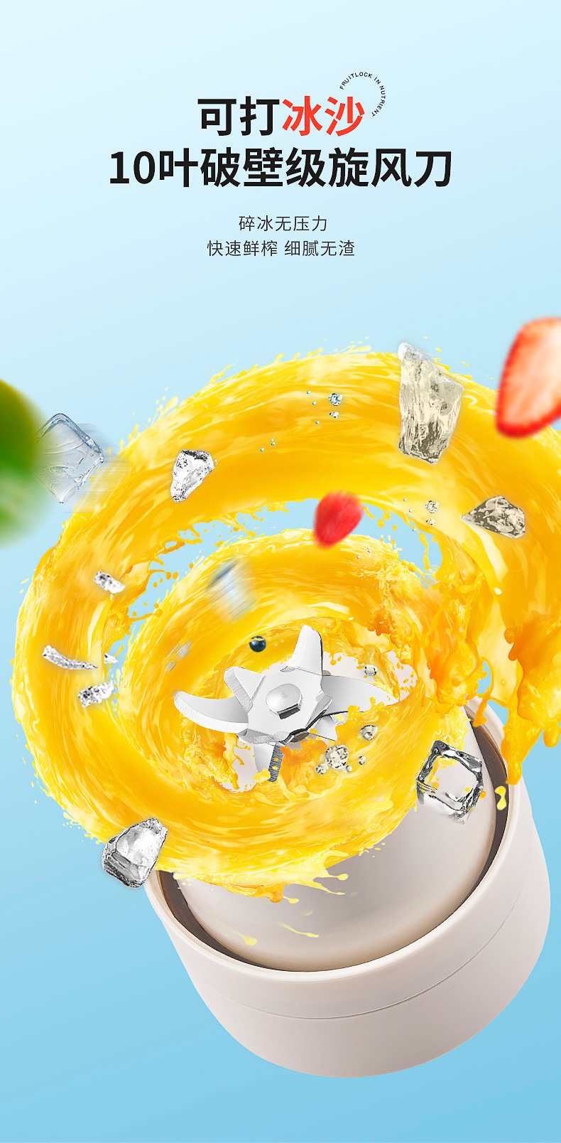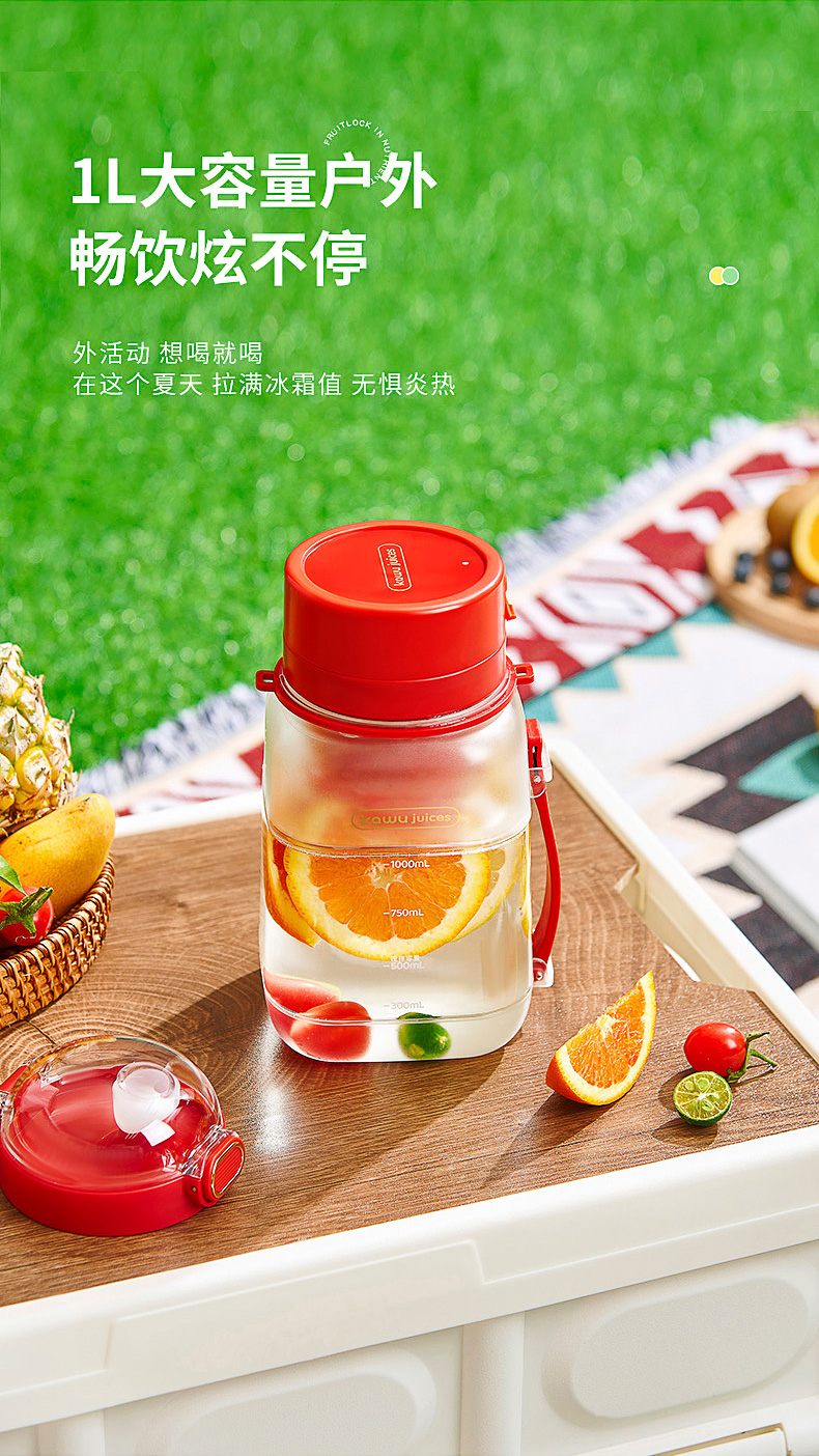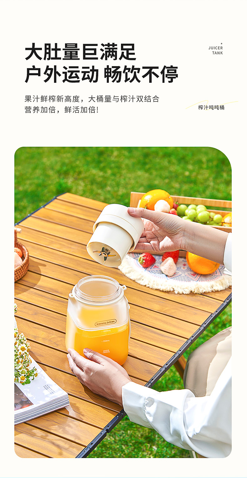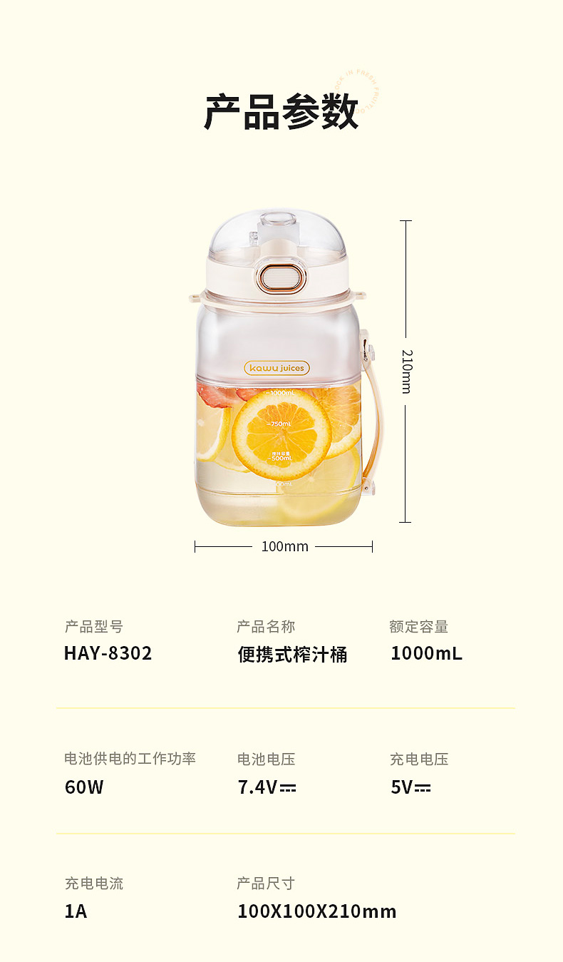 「1年质保 赠肩带」卡屋 便携式吨吨榨汁桶 可碎冰 一机双盖 便携出行 1L大容量 HAY-8302