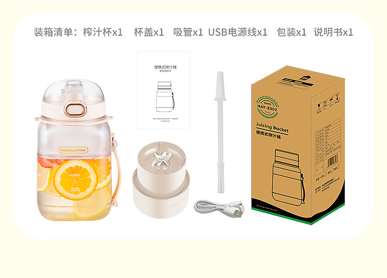 【品名】「1年质保」卡屋 便携式吨吨榨汁桶 可碎冰 一机双盖 便携出行 1L大容量 HAY-8302 【规格】奶昔白、红色、蓝色 (包含:榨汁杯*1 、吸管*1 、杯盖*1 、USB电源线*1 、包装*1、说明书*1) 【容量】1L 【产地】国内 【发货包装】独立包装 【发货地】广东 【发货快递】申通、极兔、韵达、邮政随机发 【不发货区域】新疆、西藏、港澳台 【补邮费地区】内蒙古+10元/单 【发货时效】48-72小时,周末节假日顺延 【电子产品质保期】1年 |